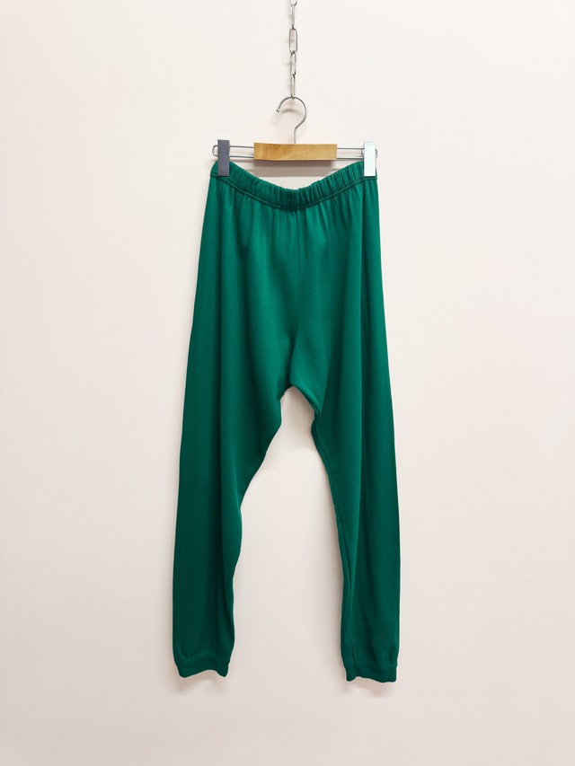 size : L ウエスト 48〜73cm 総丈 95.5cm 股上 33cm 股下 62.5cm ※平置き採寸 material : cotton 50% / polyester 50% made in USA condition USEDの為使用感有り 透け感 : 無し 伸縮性 : 有り . サイズ表記はLですが 実際はコンパクトなサイズ感が本当に良い1本です。 色合い・コンディション・タグの背景まで含めて とても嬉しいバランスだと思います。 ミントグリーンの色合いは コーデの中に入れるだけで空気が少し変わる色。 差し色としても なじませ色としても使えるのが良いところです。 丈感も扱いやすく身長問わず取り入れやすい印象で コンパクトですらっと見えるラインなので 着用したときに生地がもたつきにくく 足元のバランスがとてもきれいにまとまります。 パンツとしてしっかり主役にしても良いですし スカートやワンピースの下に重ねて 裾を少しだけ見せるような着方も とても可愛いと思います。 重ねたときの見える分量がちょうどよく 主張しすぎないのにちゃんと効いてくれるタイプです。 生産は Made in USA。 古着としてこの条件が揃っていること自体が珍しく 気になる方にとっては 大きなポイントになるかと思います。 コンディションについては 古着特有の毛羽立ちは全体に見られますが 目立つ汚れや大きなダメージは見受けられず 比較的きれいな状態です。 すごくすごく頼れて いつもの服にプラスするだけで 可愛さが深まるアイテム。 少しでもビビッと来てくださった方には ぜひ前向きにご検討いただけたら嬉しいです。 ご購入前に必ずご利用規約をお読みください。 https://monne.theshop.jp/p/00001 .