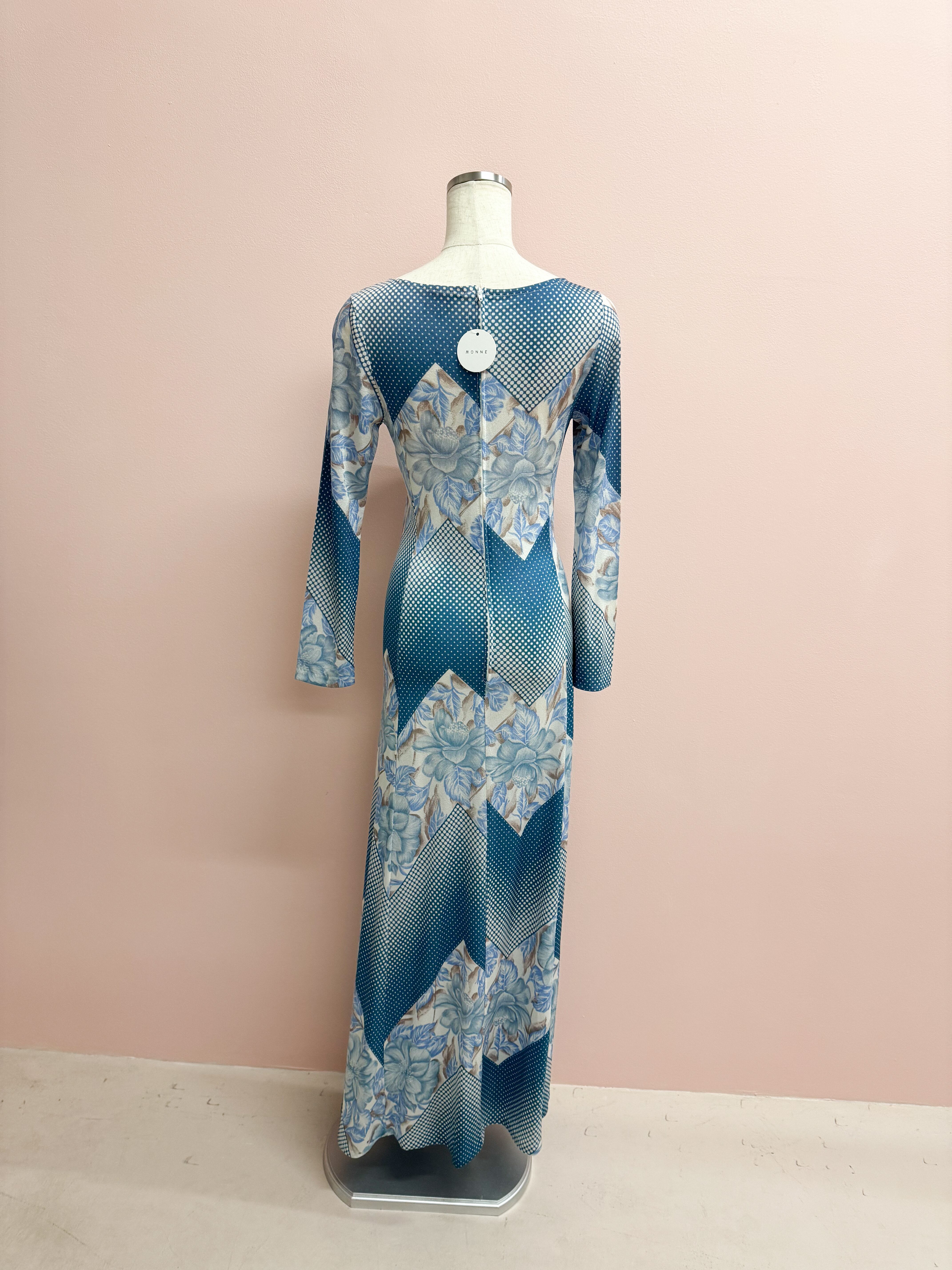 後ろ姿の写真については、トルソーが少し傾いているために歪んで見えますが、実物のシルエットには影響ございませんのでご安心ください。