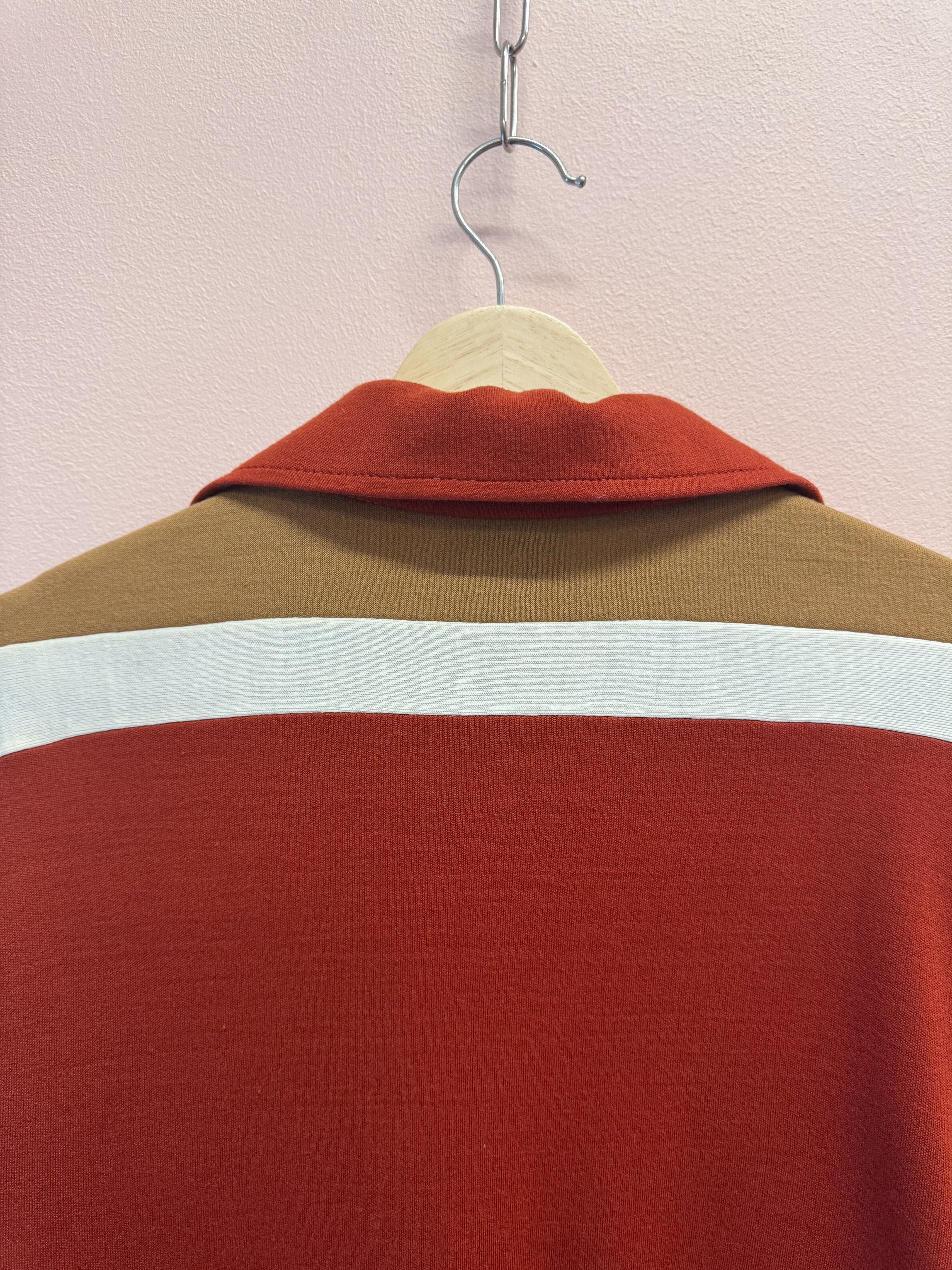 襟が長めなので肌寒い季節は首元まで暖かく、さらに上からアウターを重ねても雰囲気良く着られます。