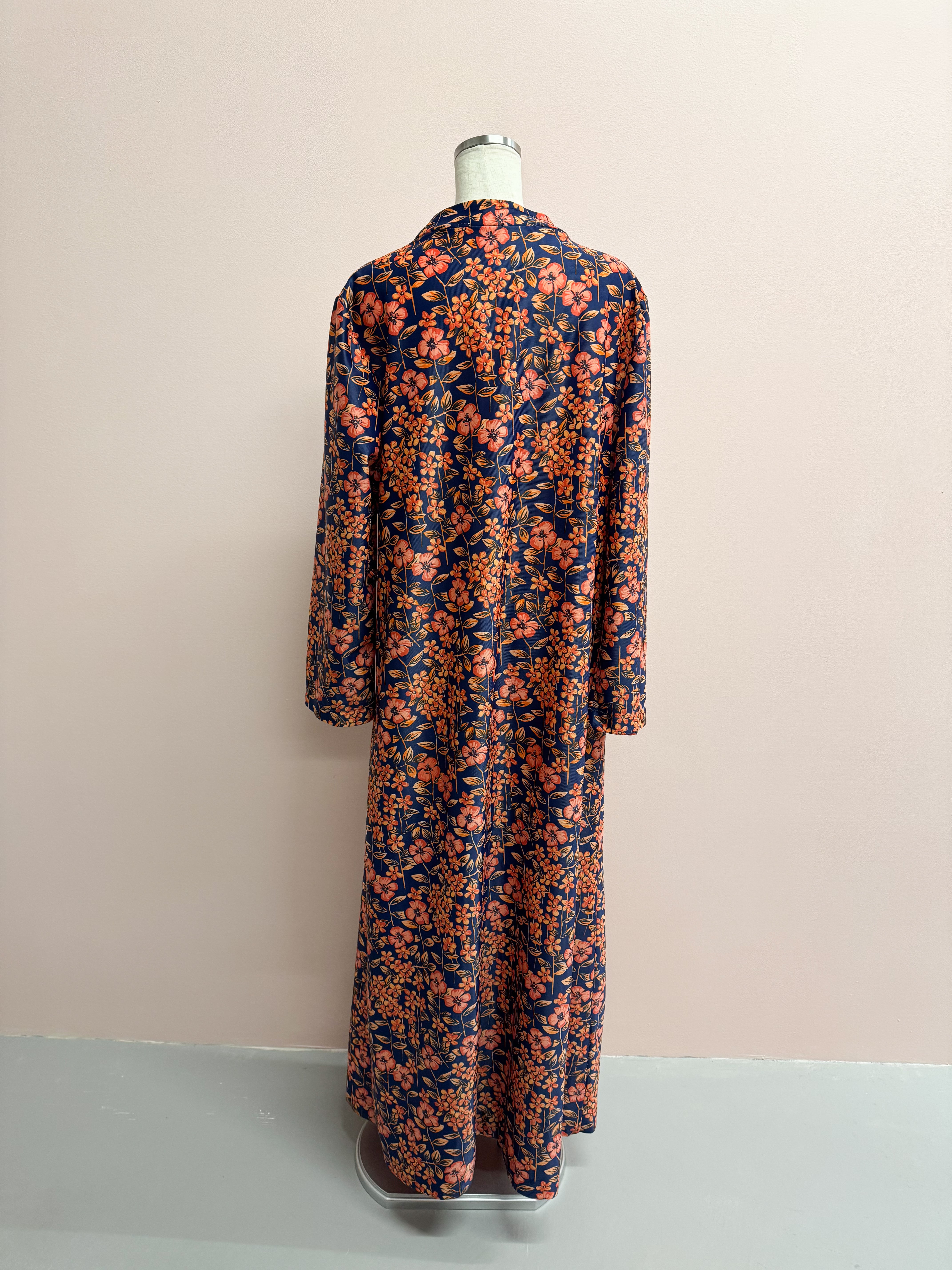 前開きタイプのため、すべて留めればワンピース風にも、前を開けて羽織としても楽しめる万能な1枚です。