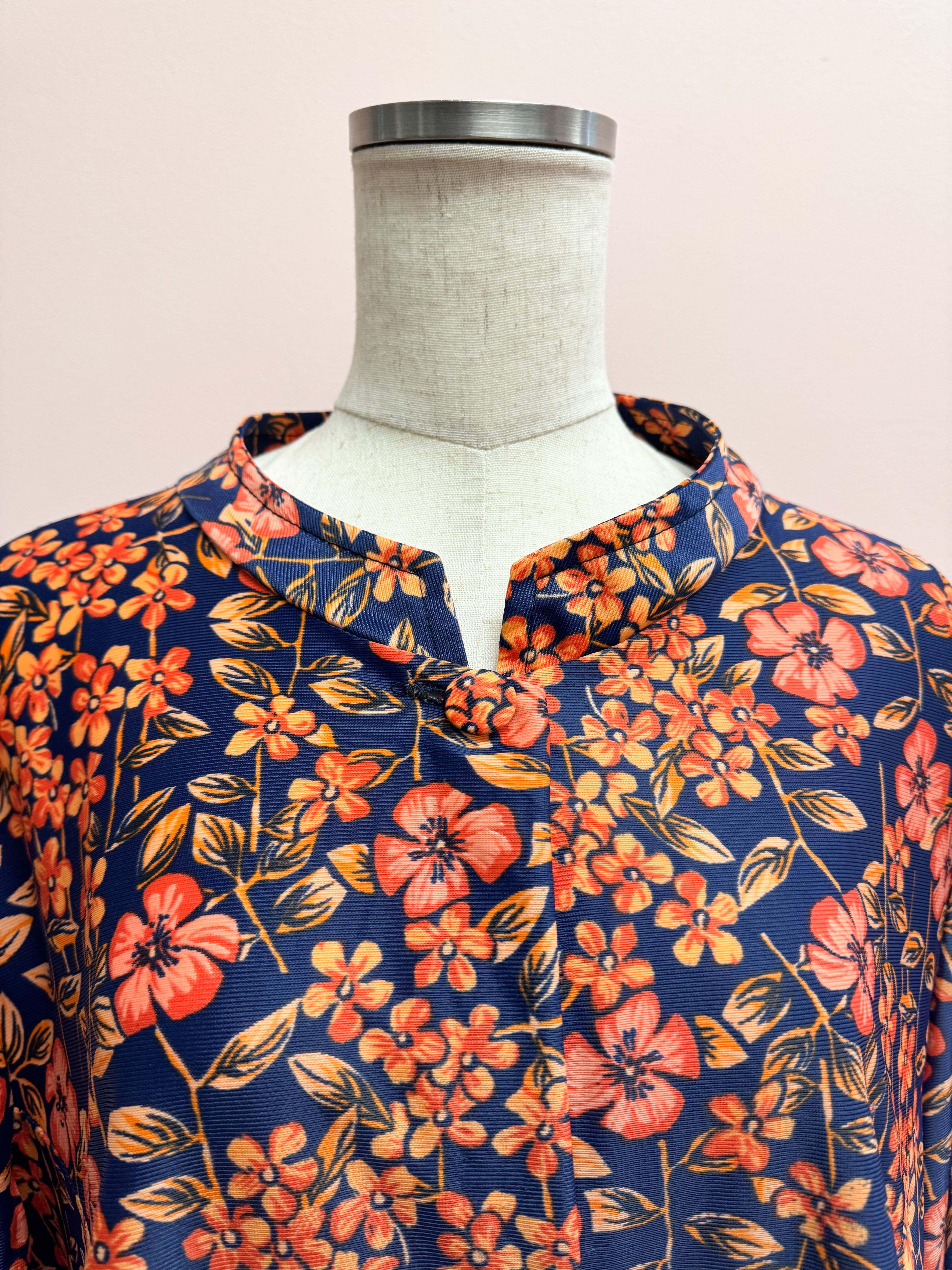 花柄ながらも、ネイビーをベースにしていることで甘くなりすぎず、落ち着いた上品さと可愛らしさが共存する印象に。