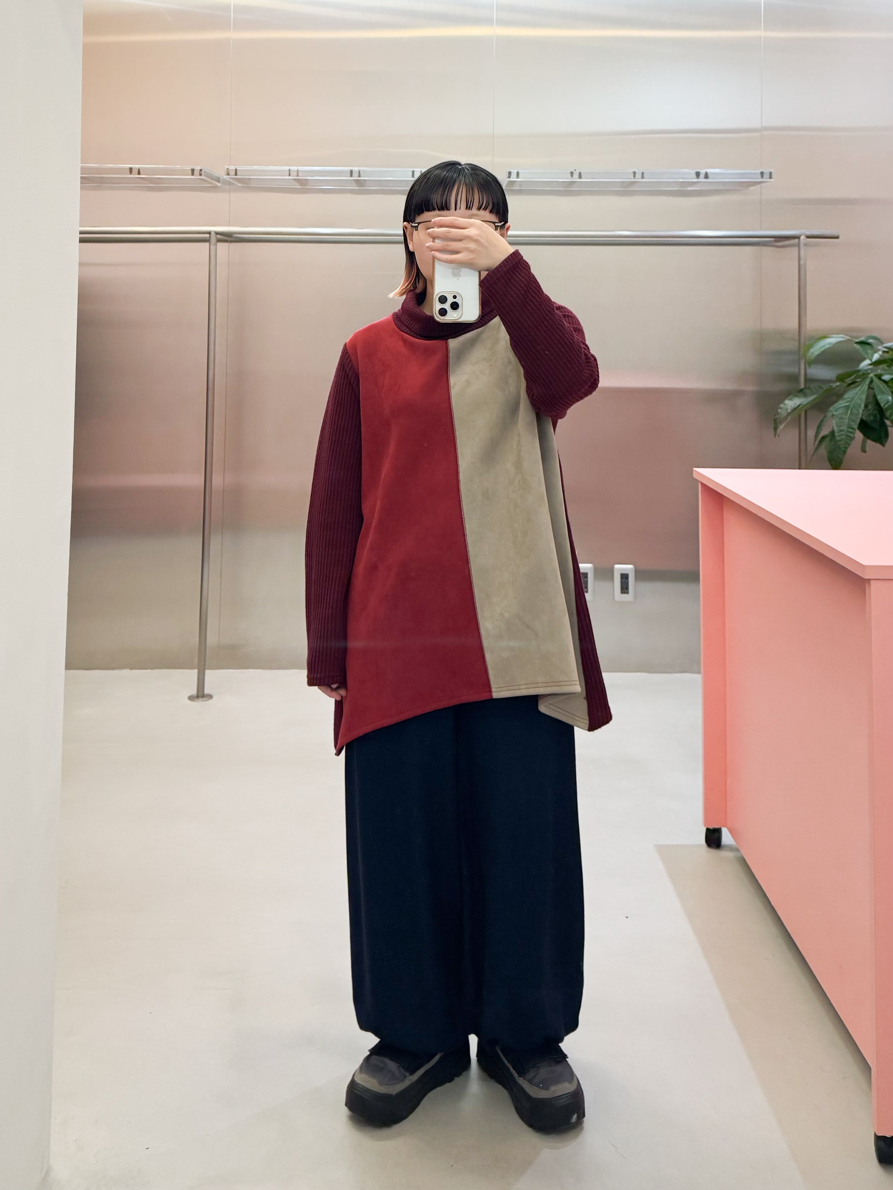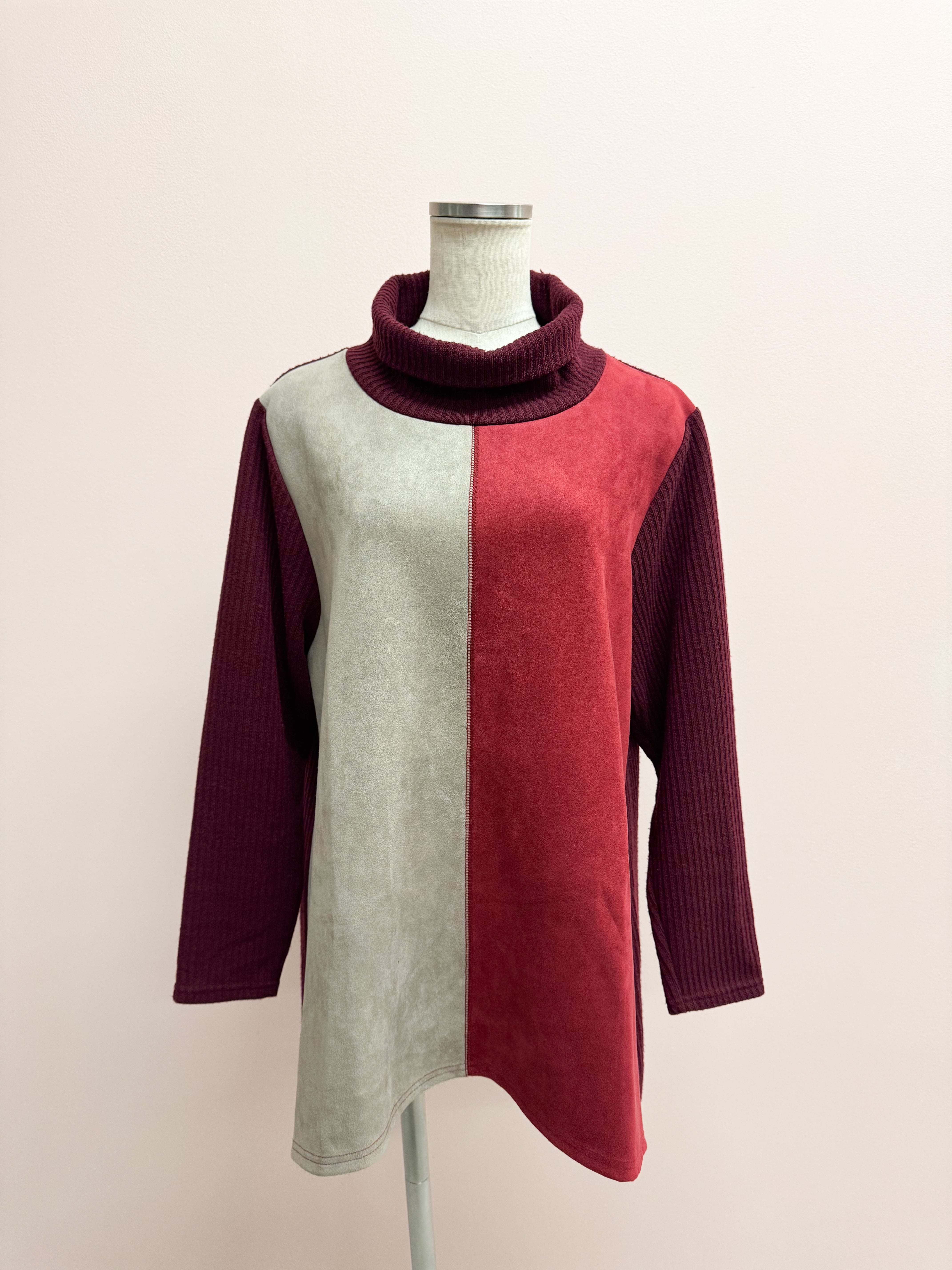 vintage colorblocking suede turtleneck knit tops