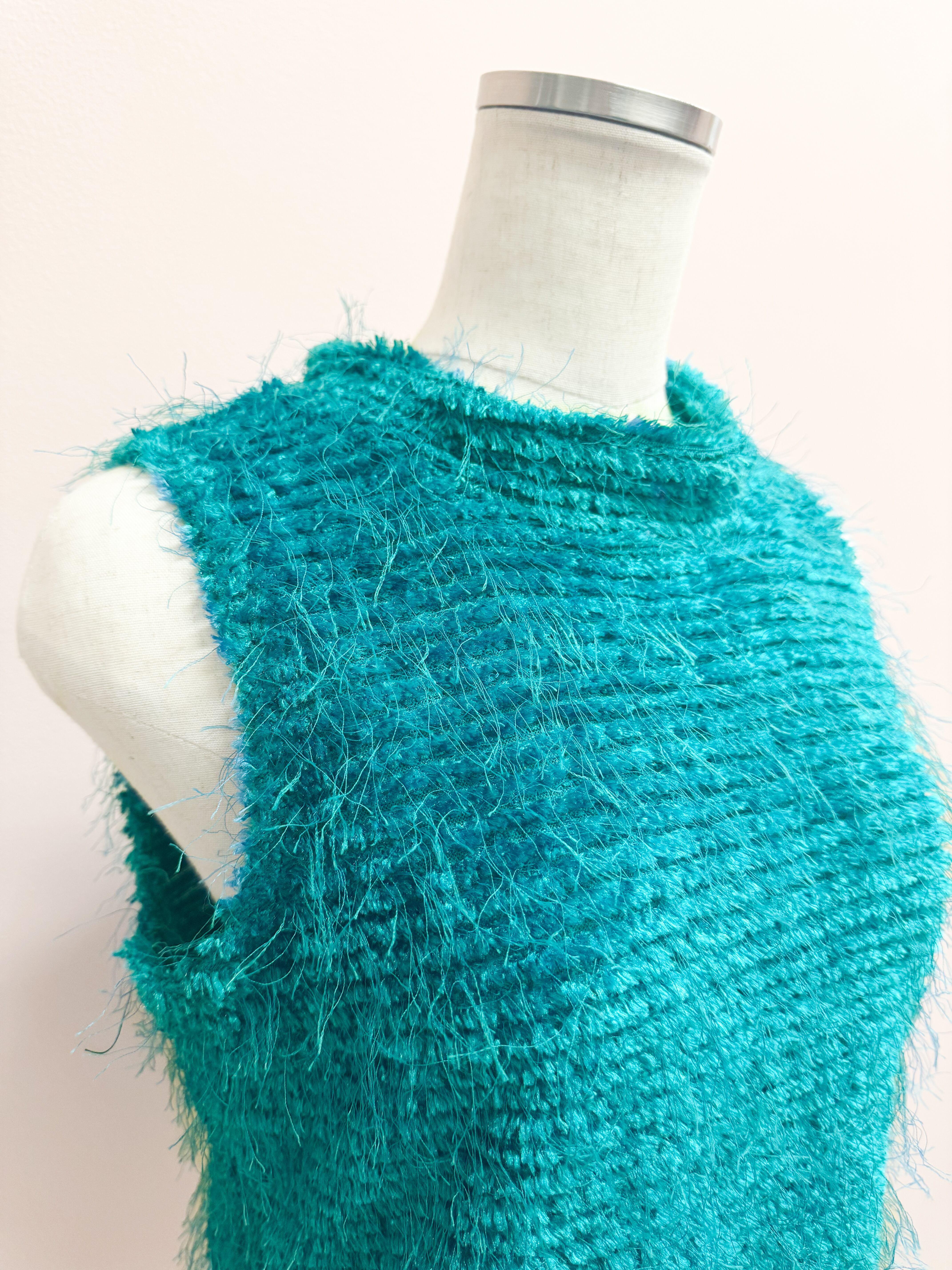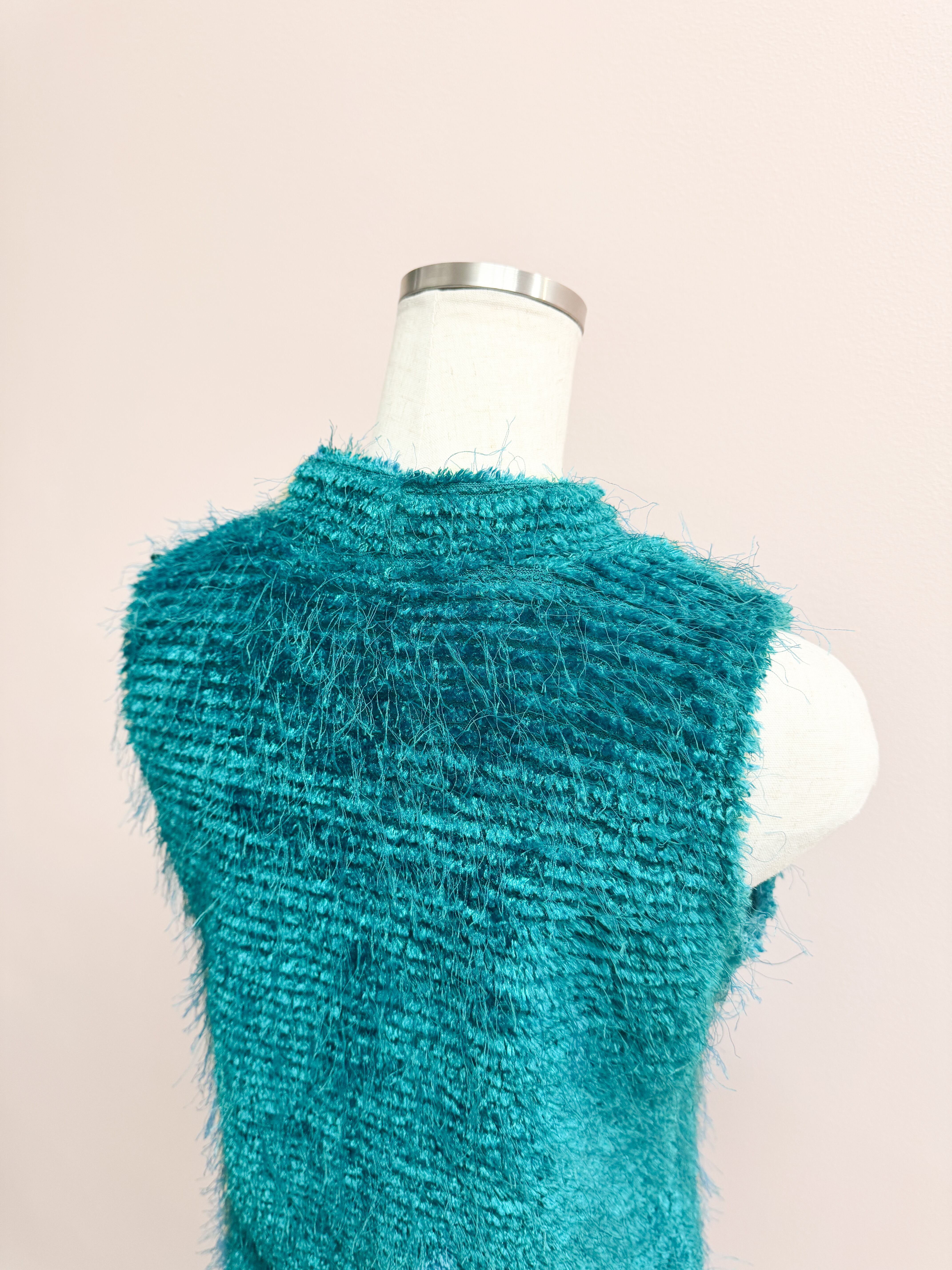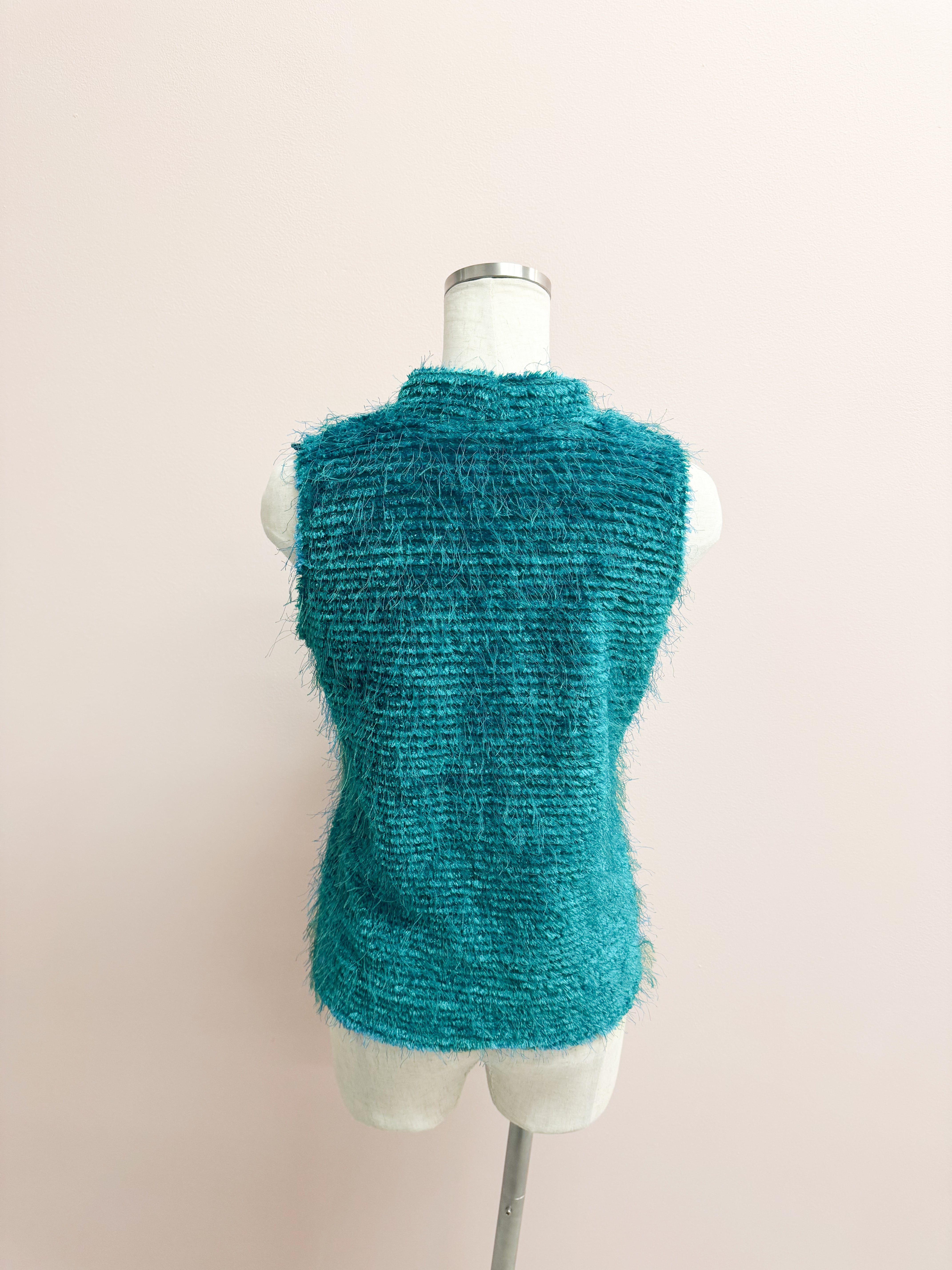 blue fuzzy airy vest
