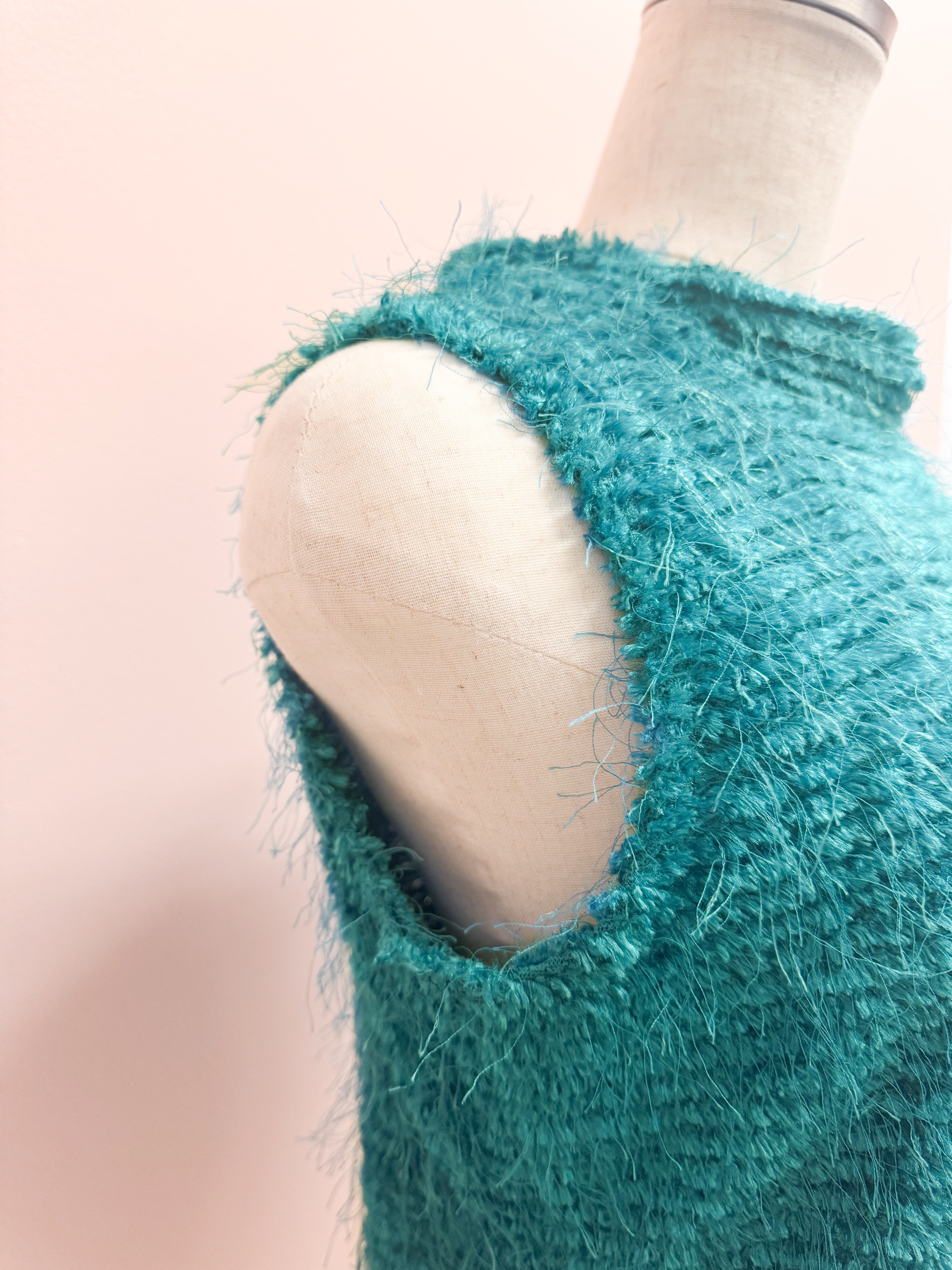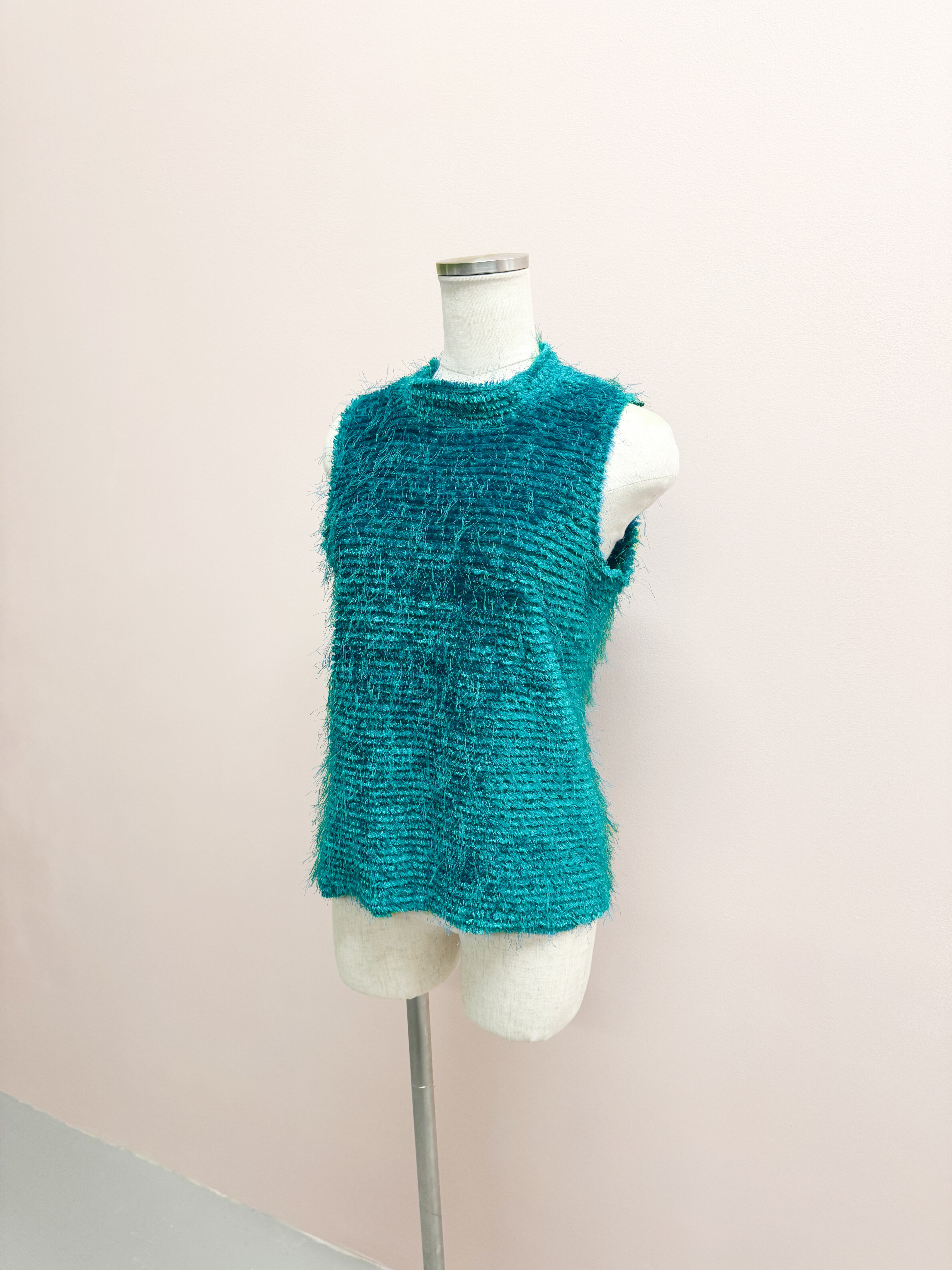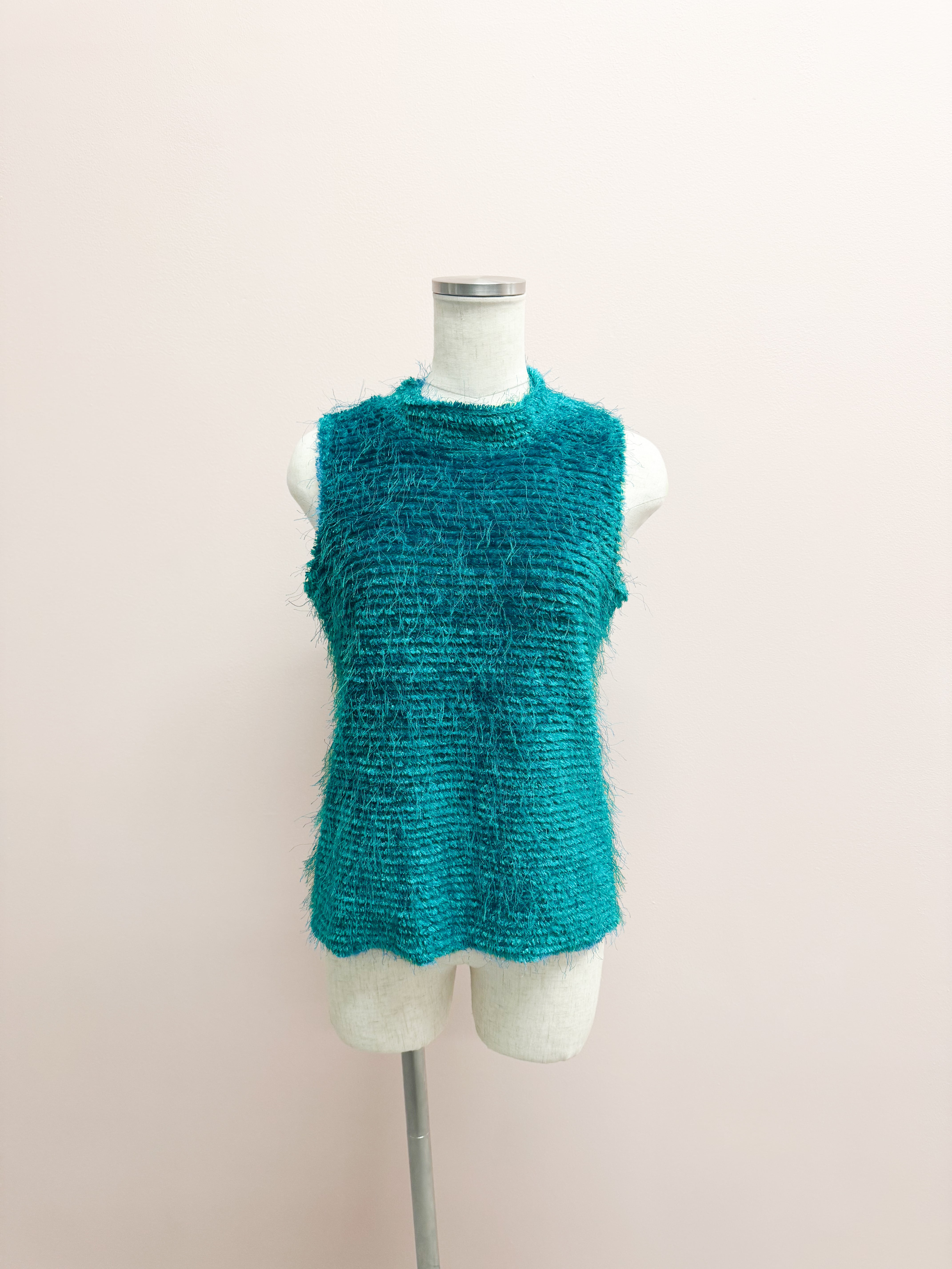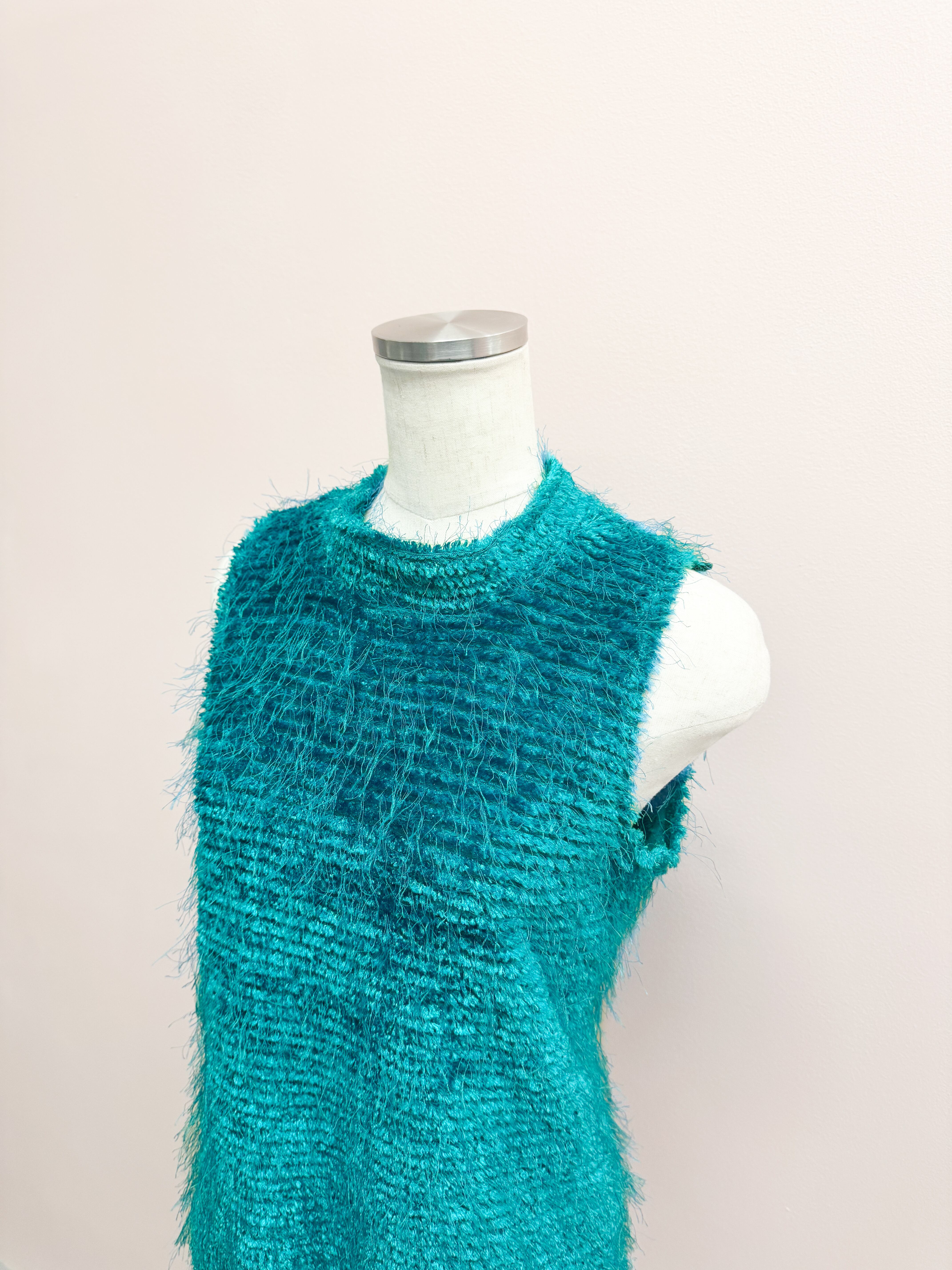 blue fuzzy airy vest