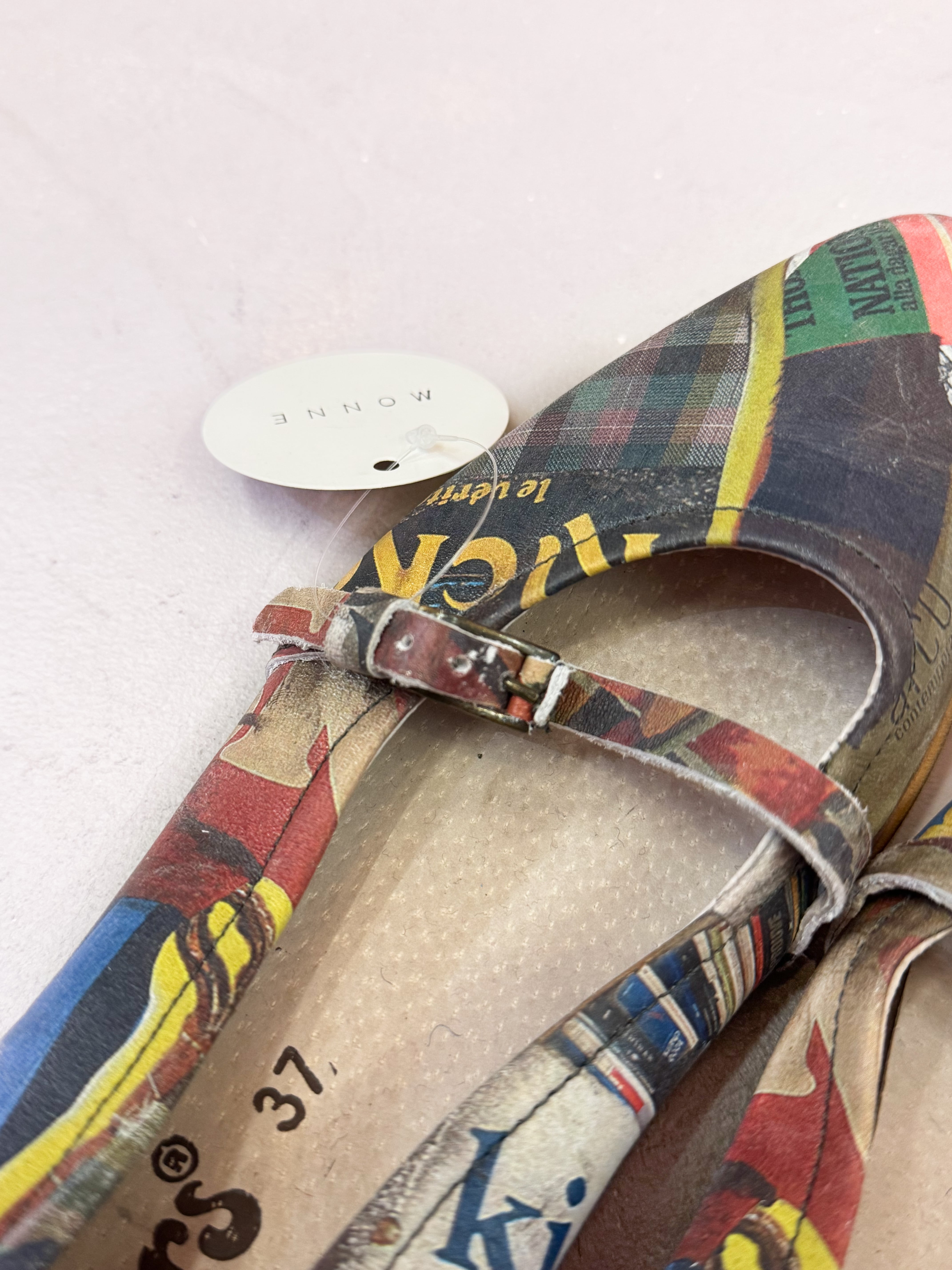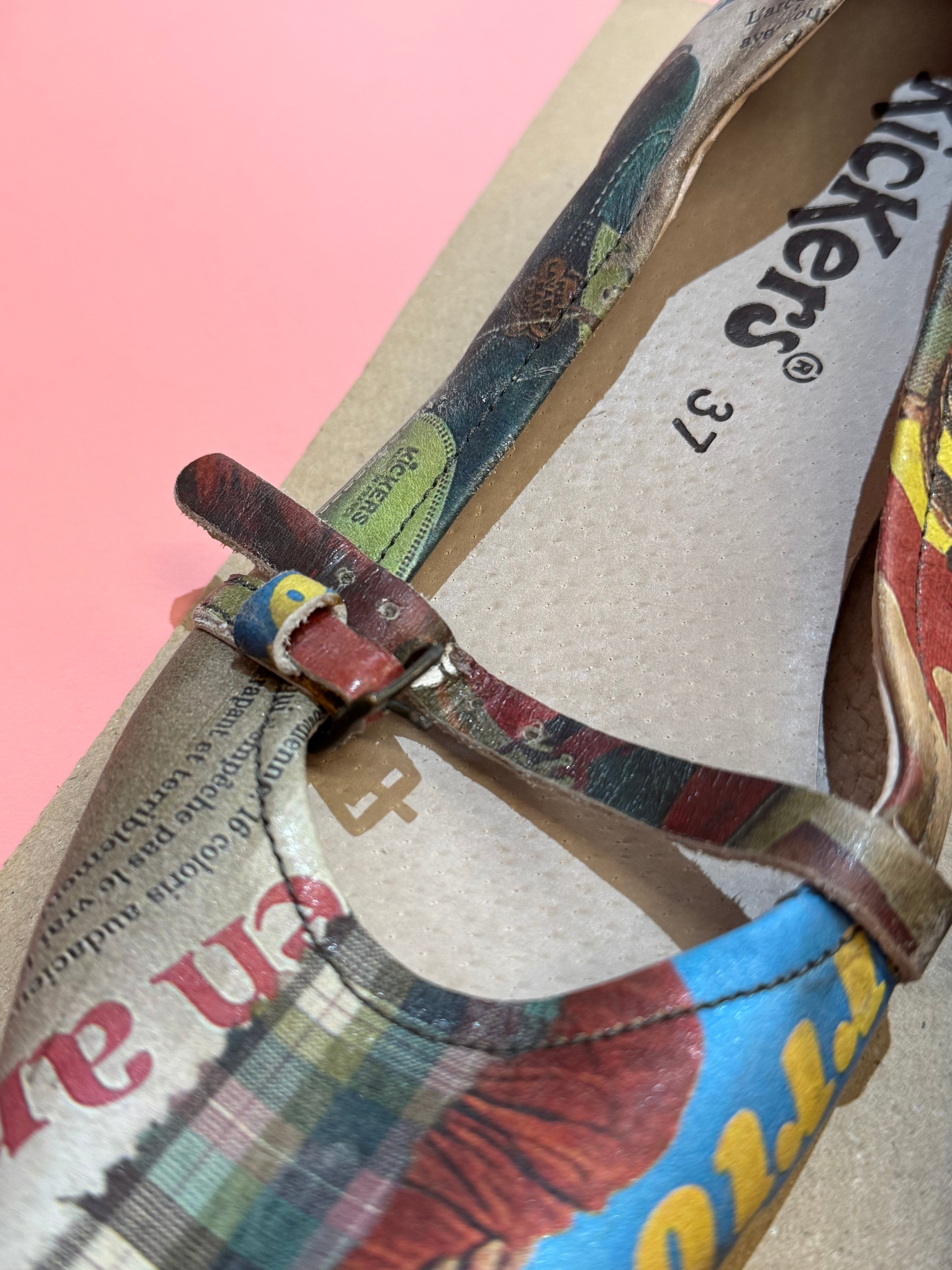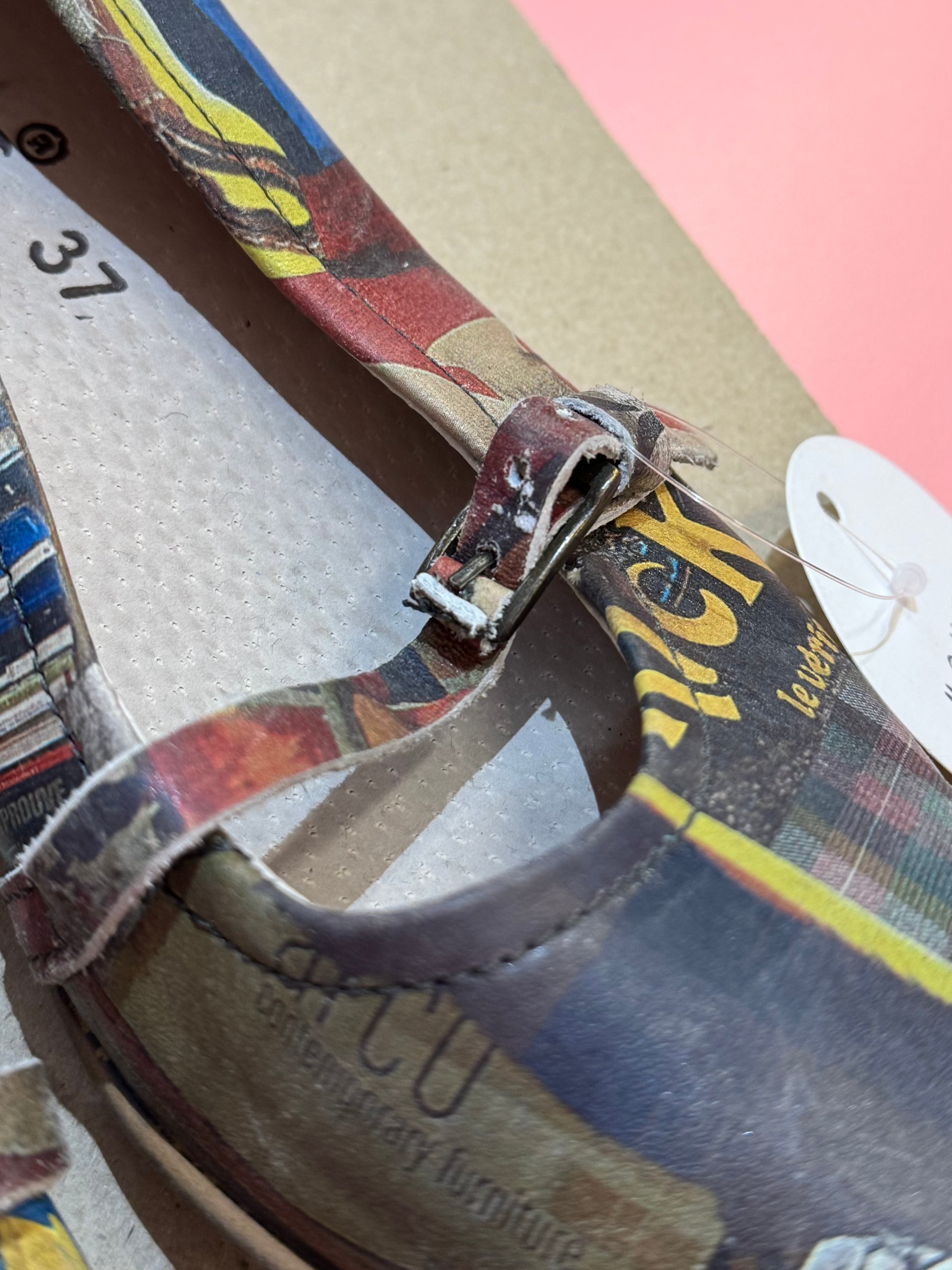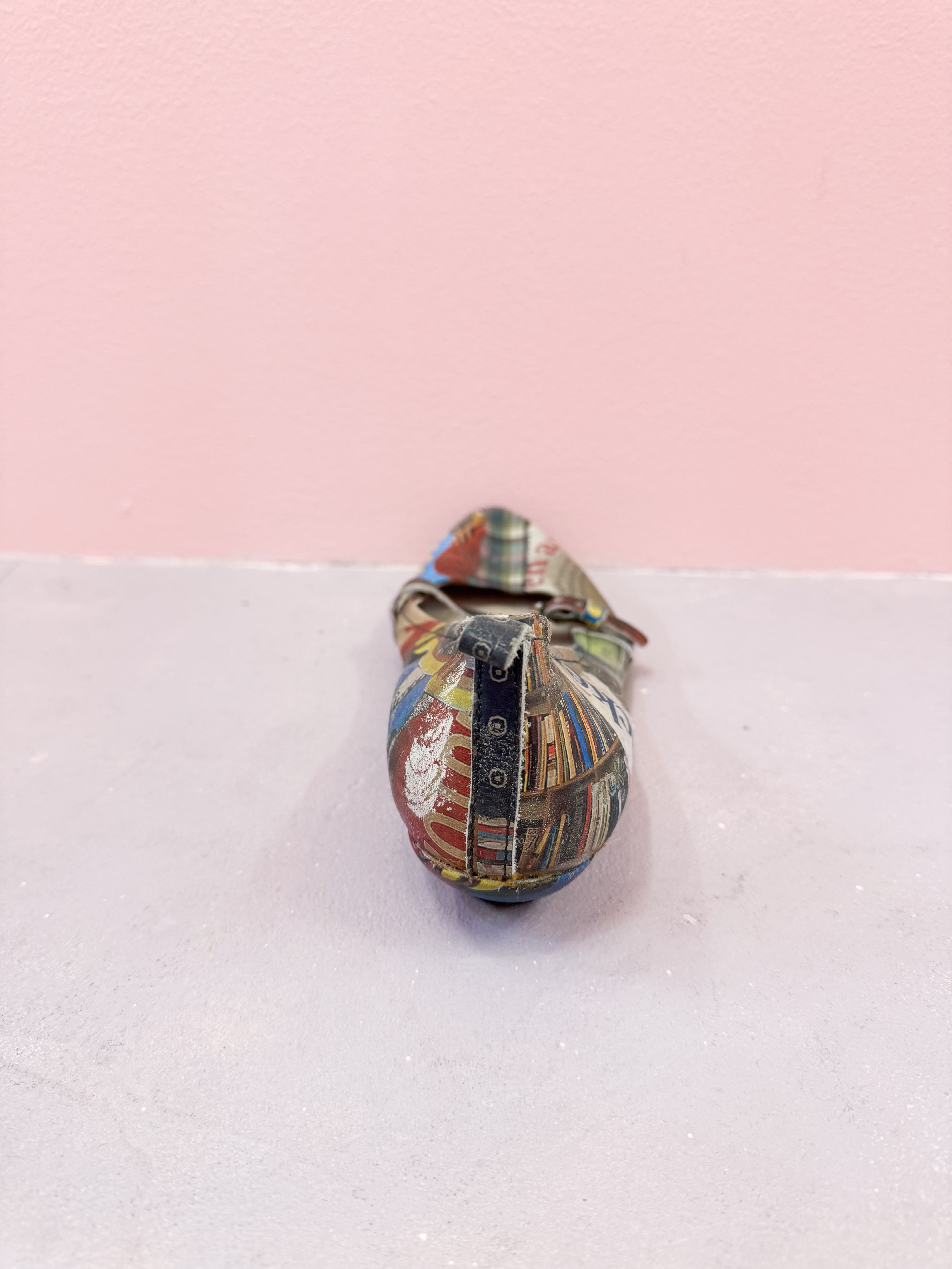 vintage graphic collage strap shoes
