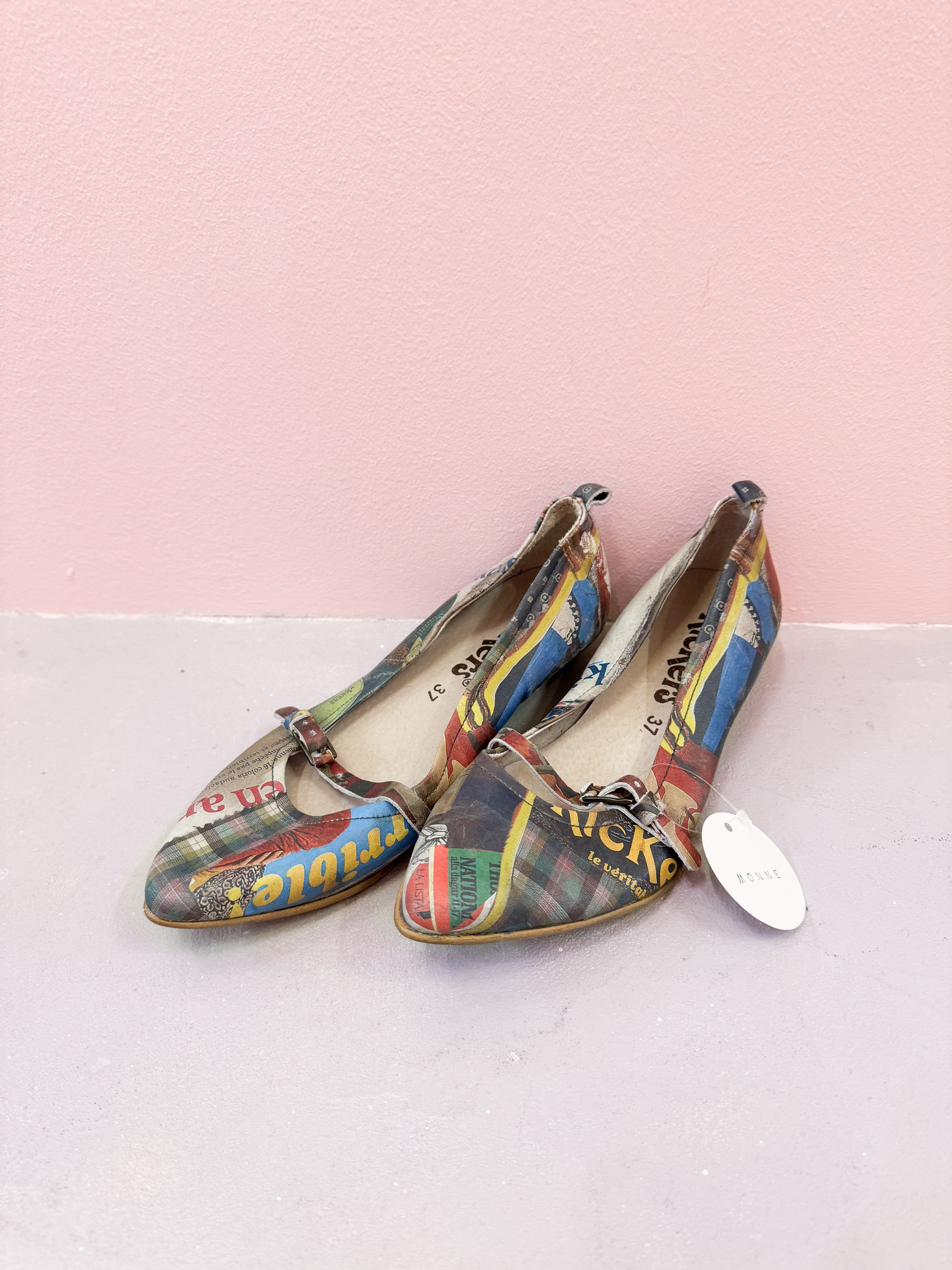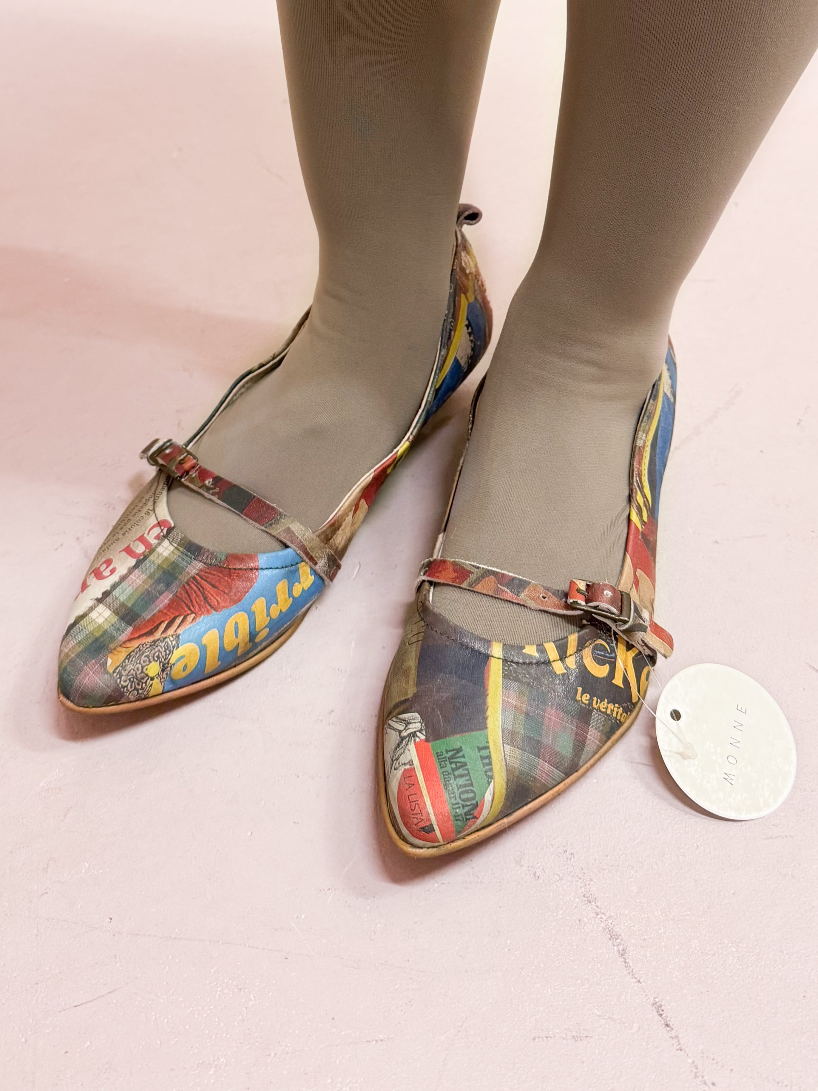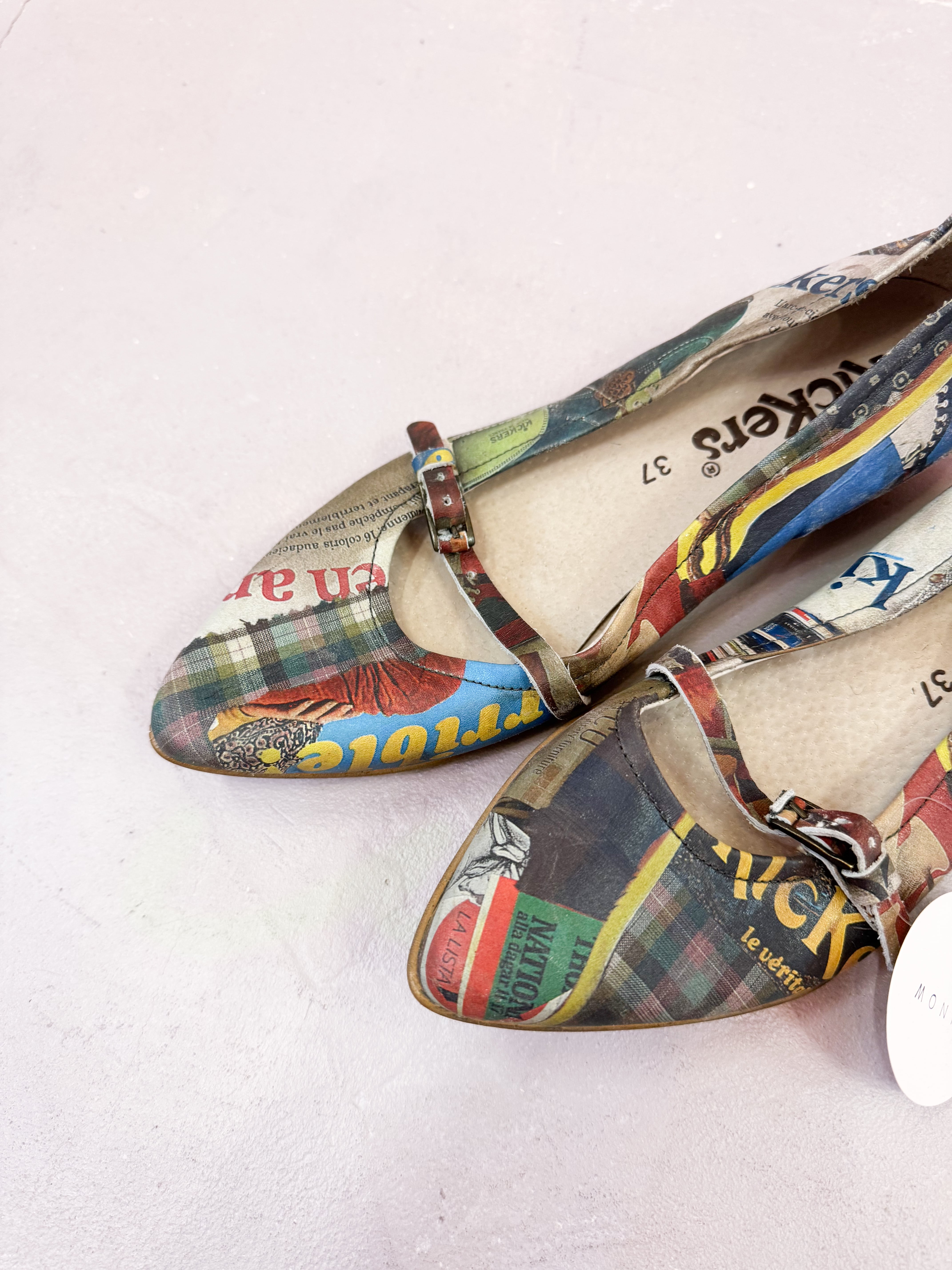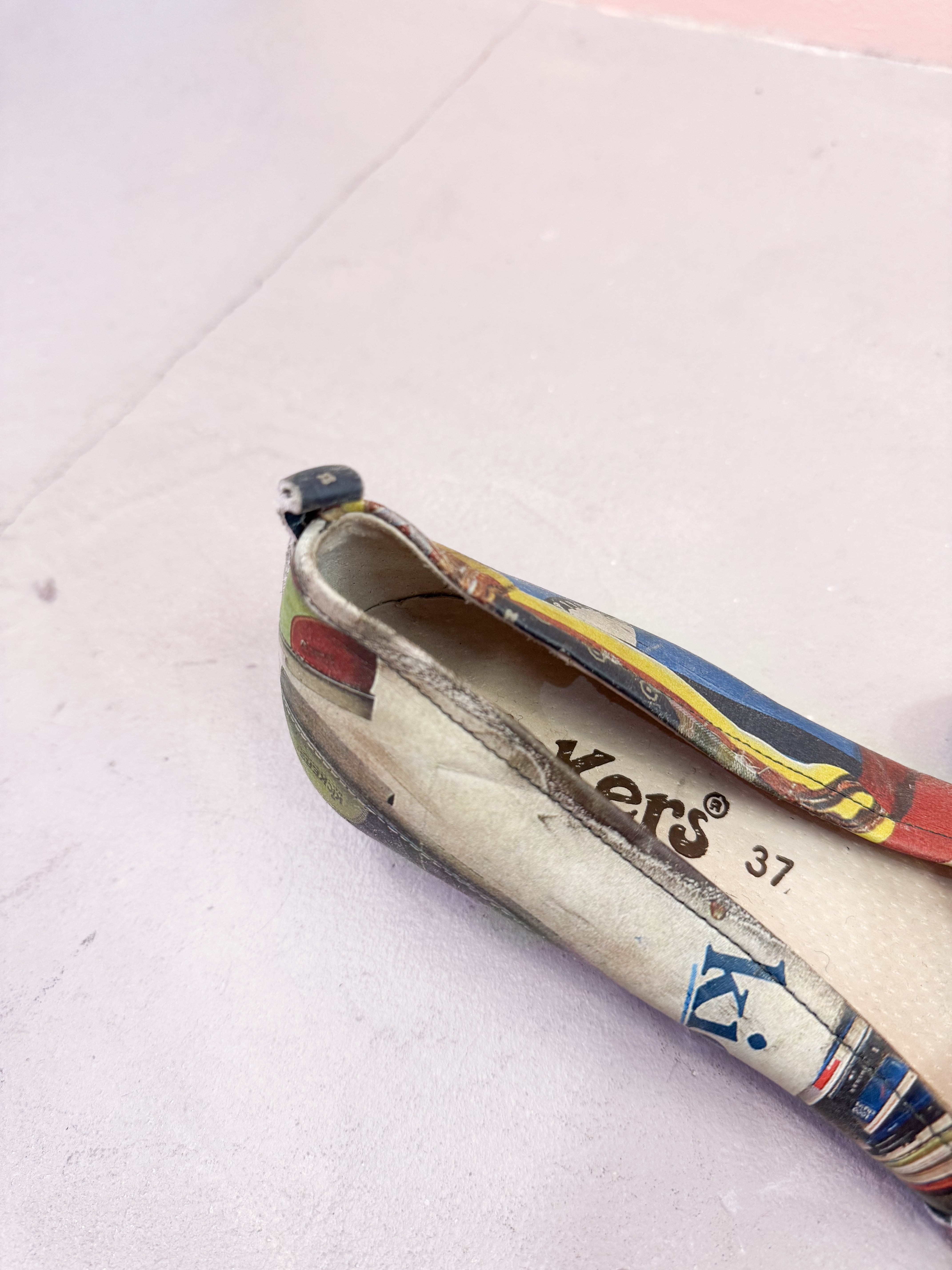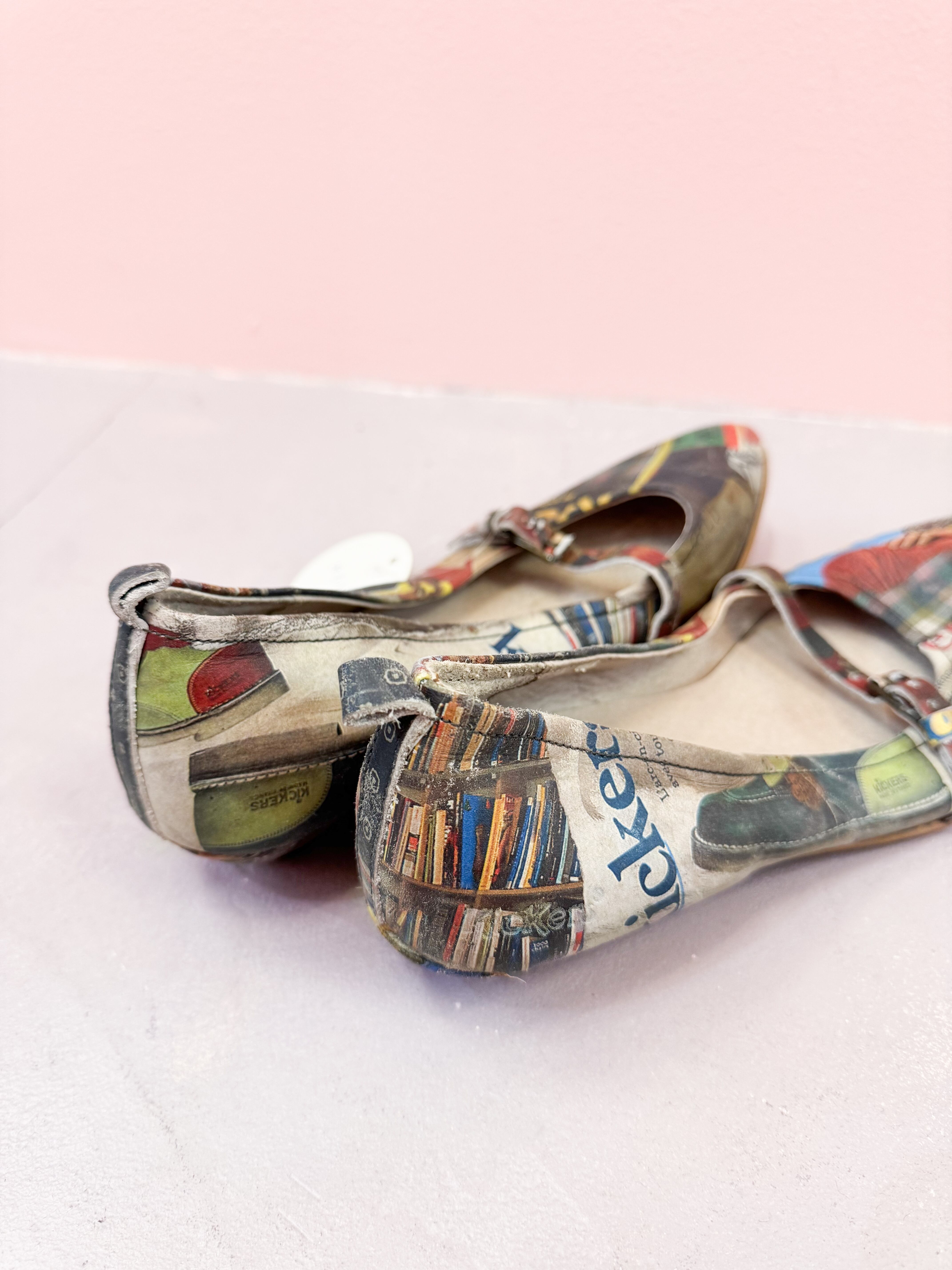 vintage graphic collage strap shoes