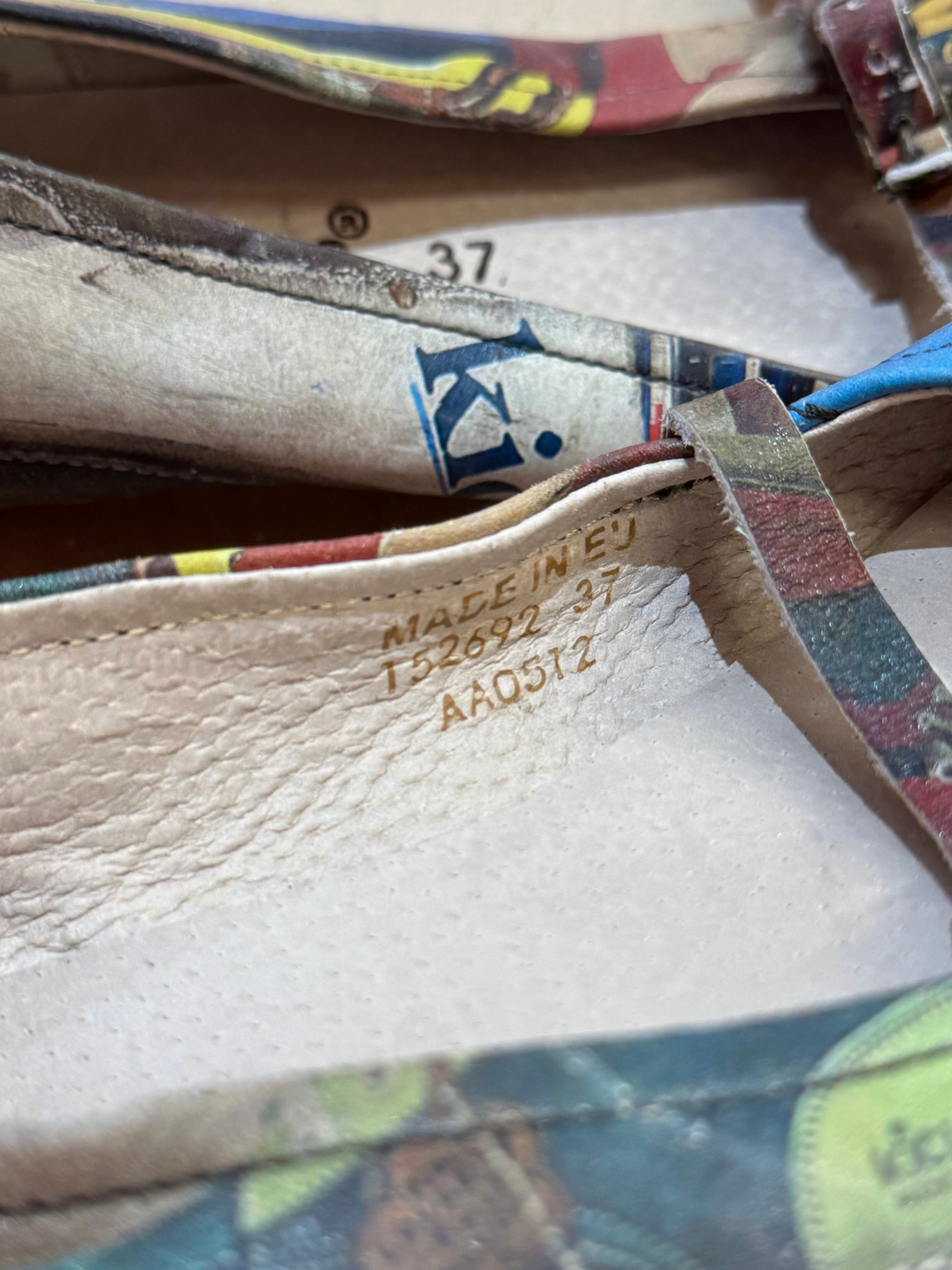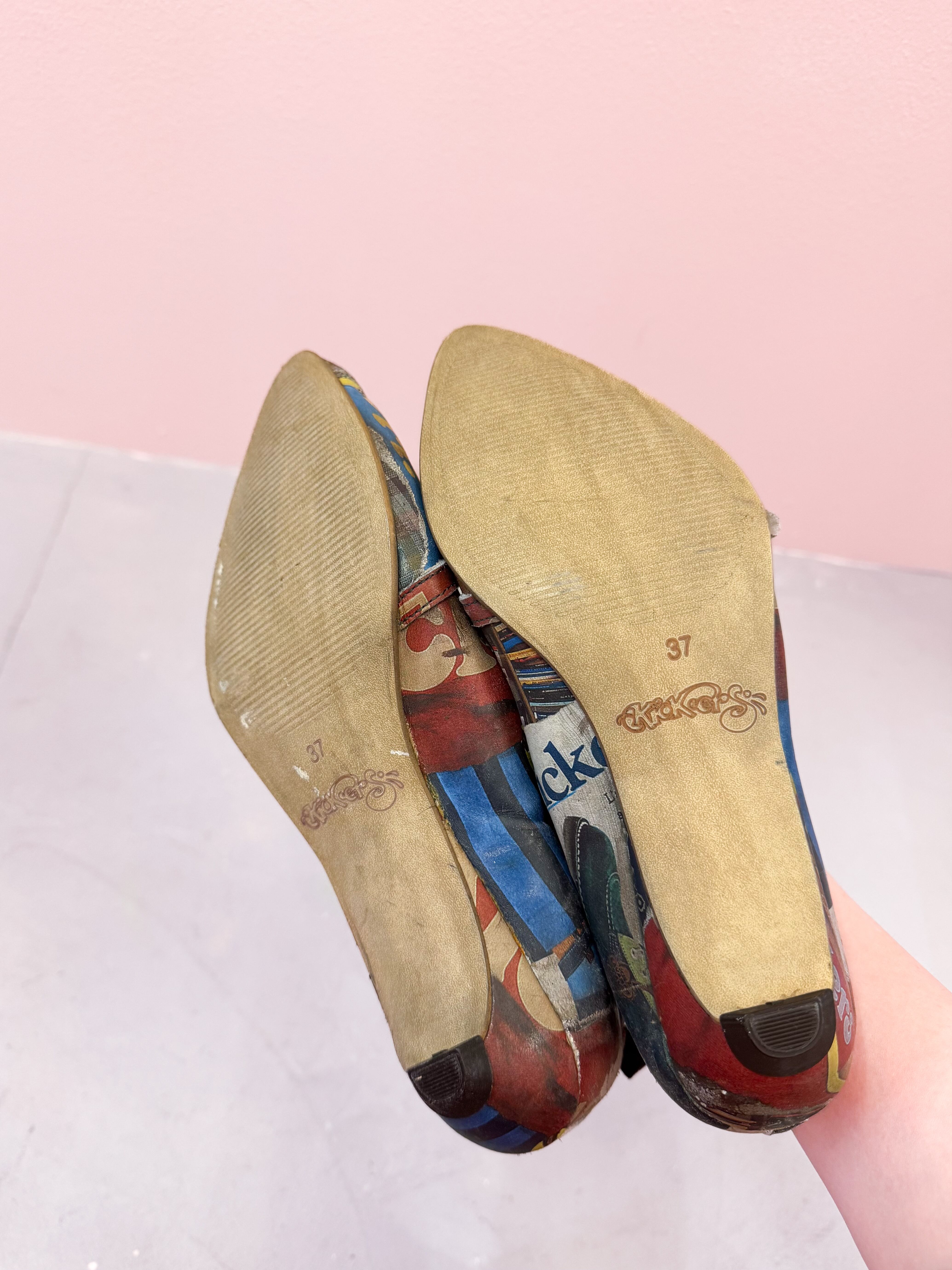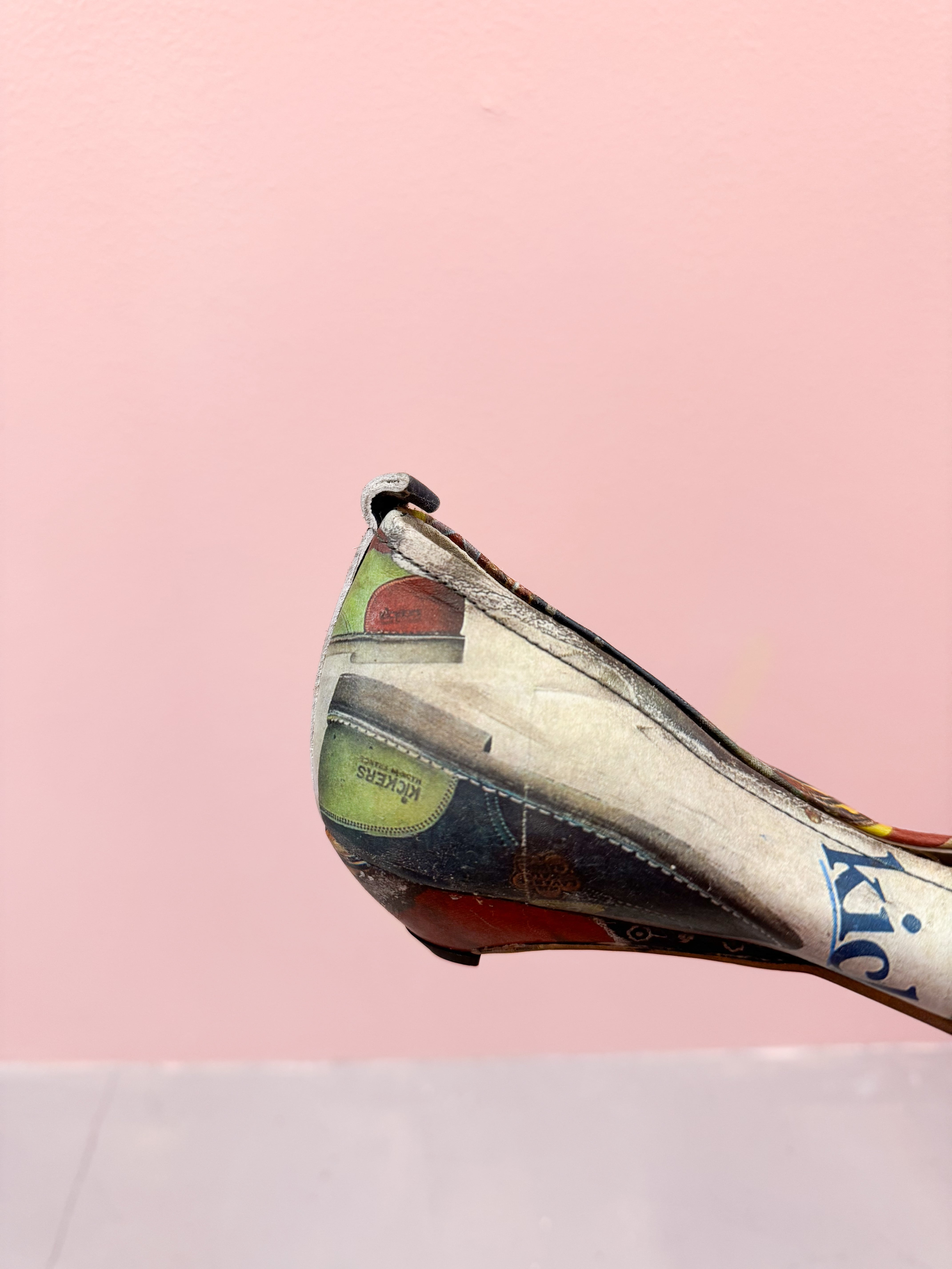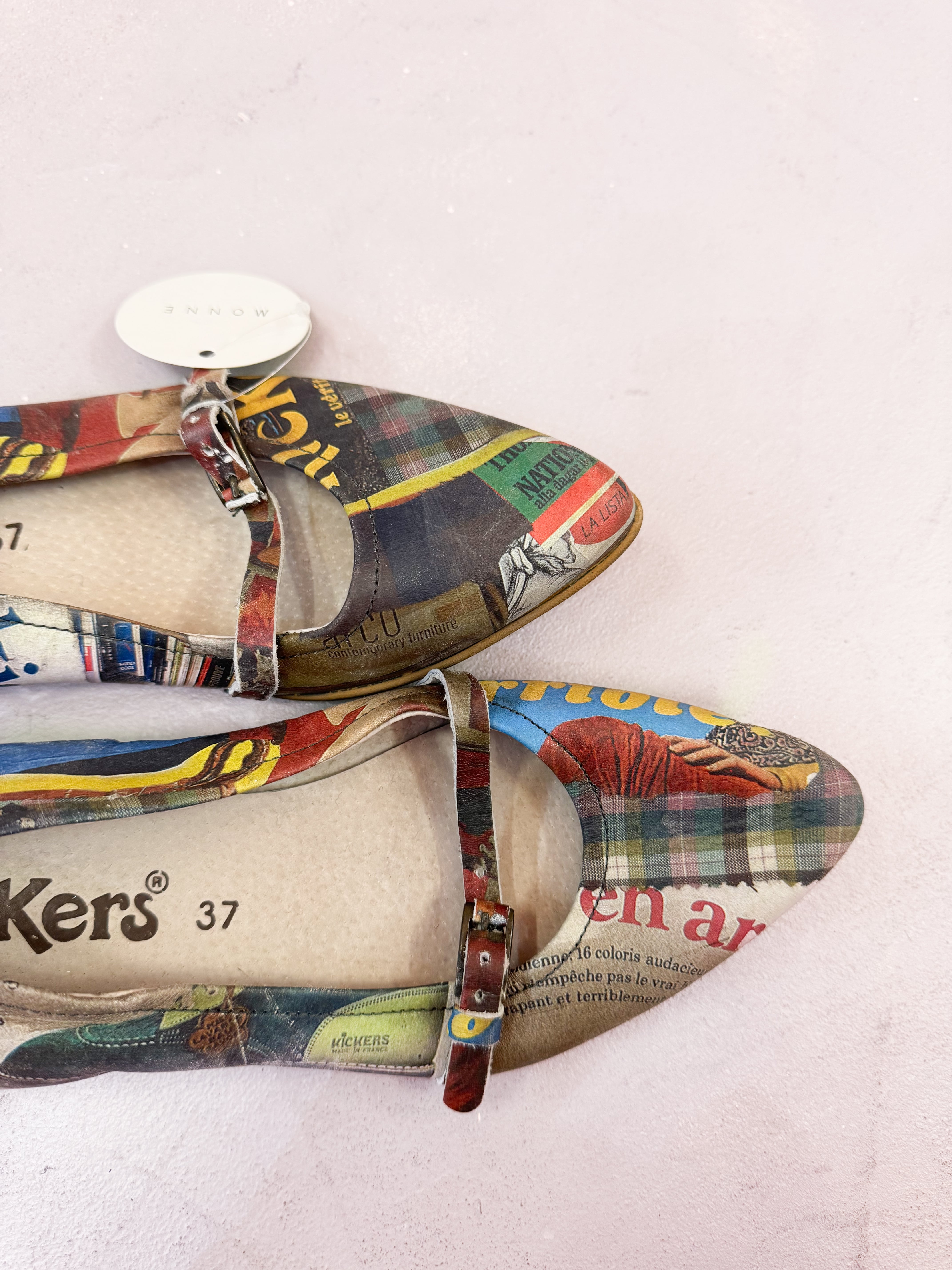 vintage graphic collage strap shoes