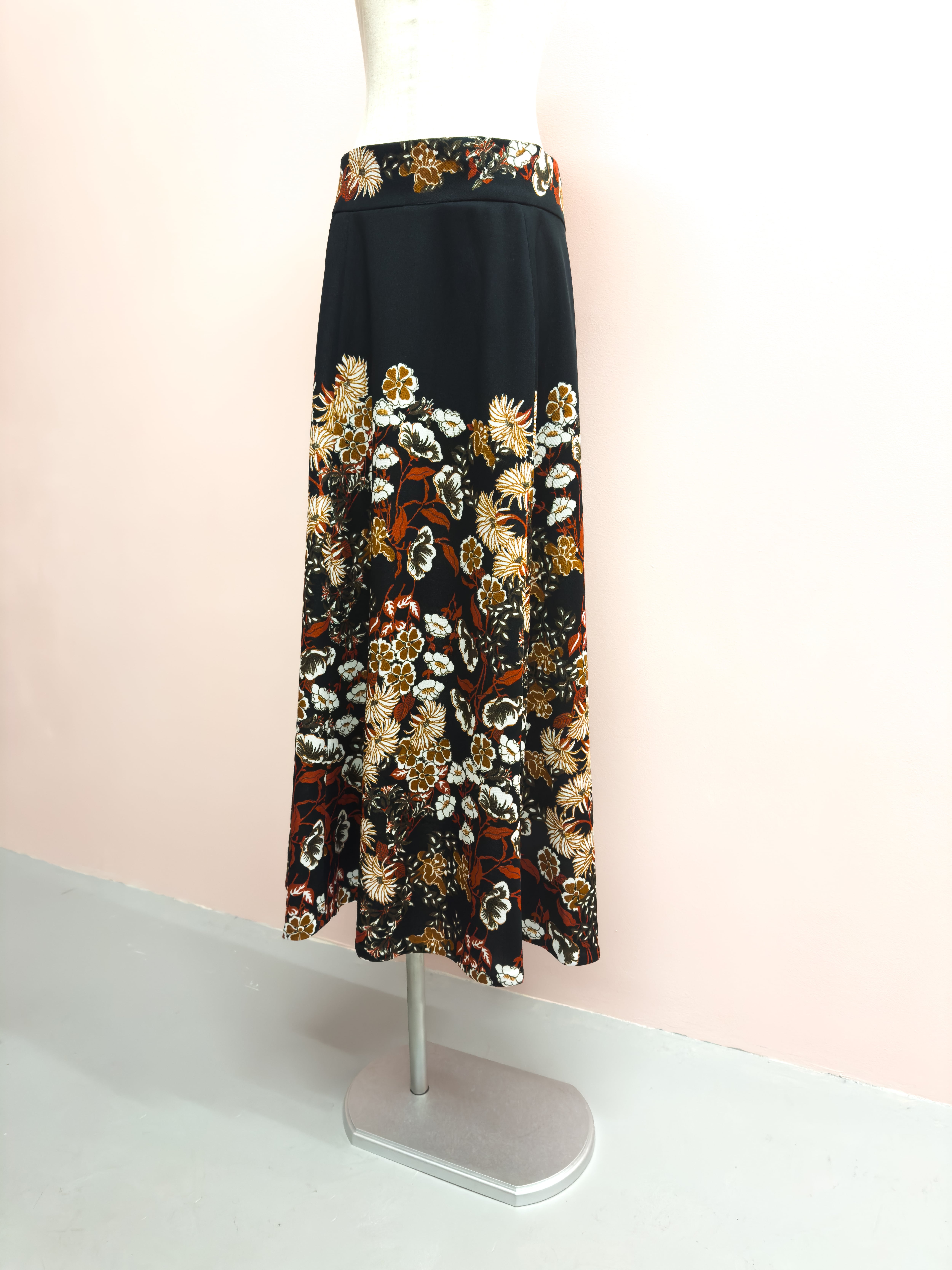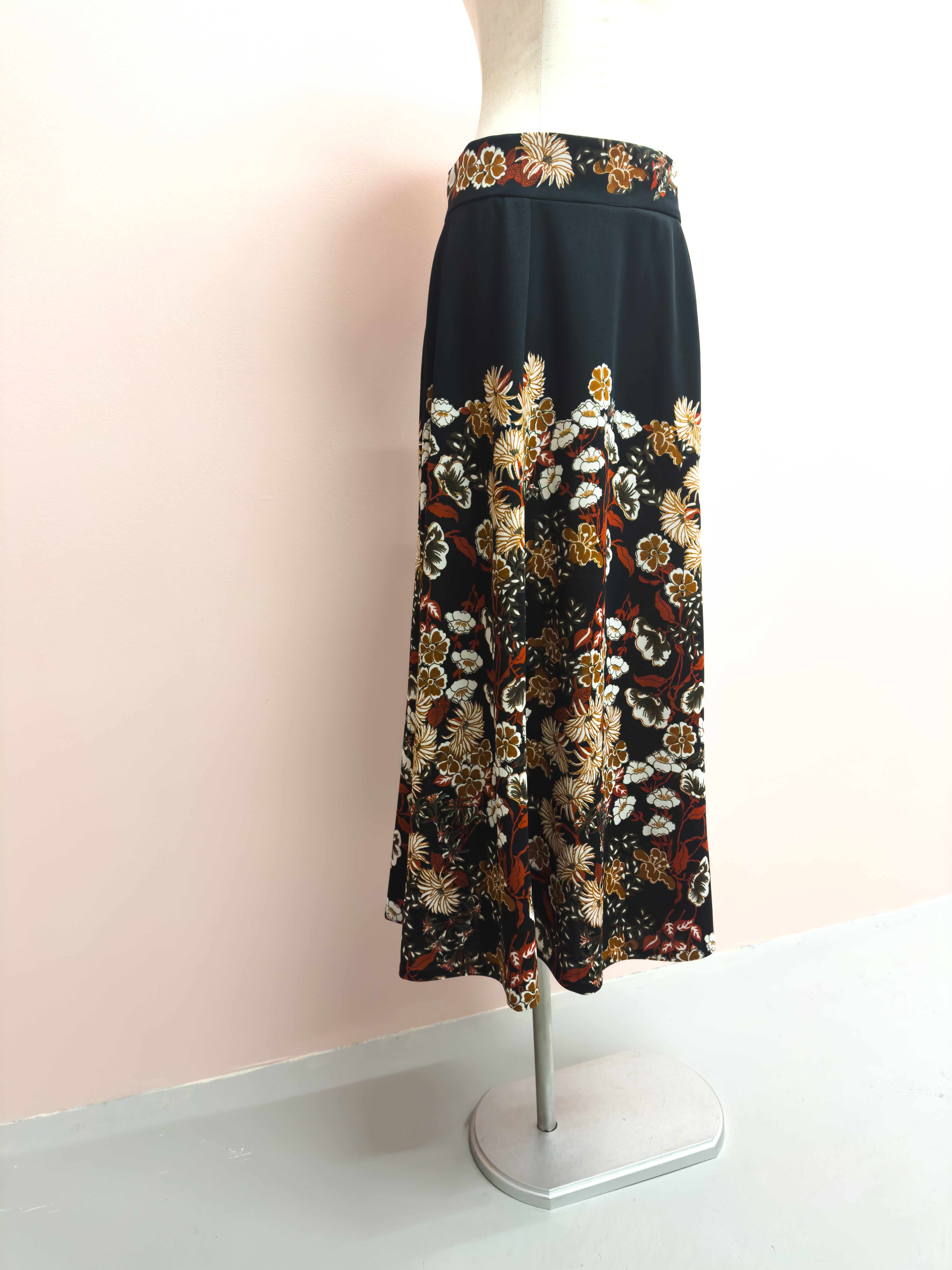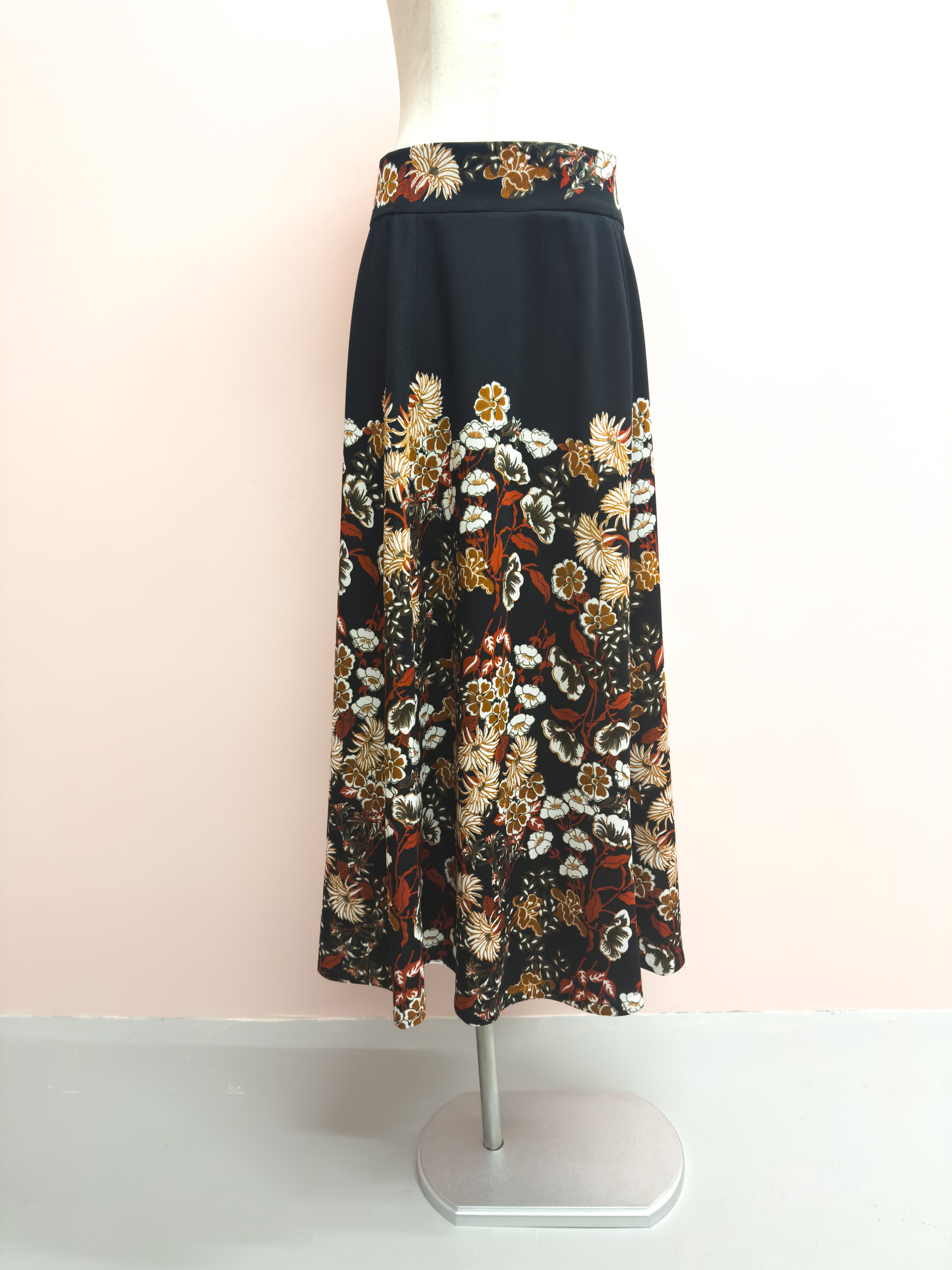 vintage brown garden flare skirt