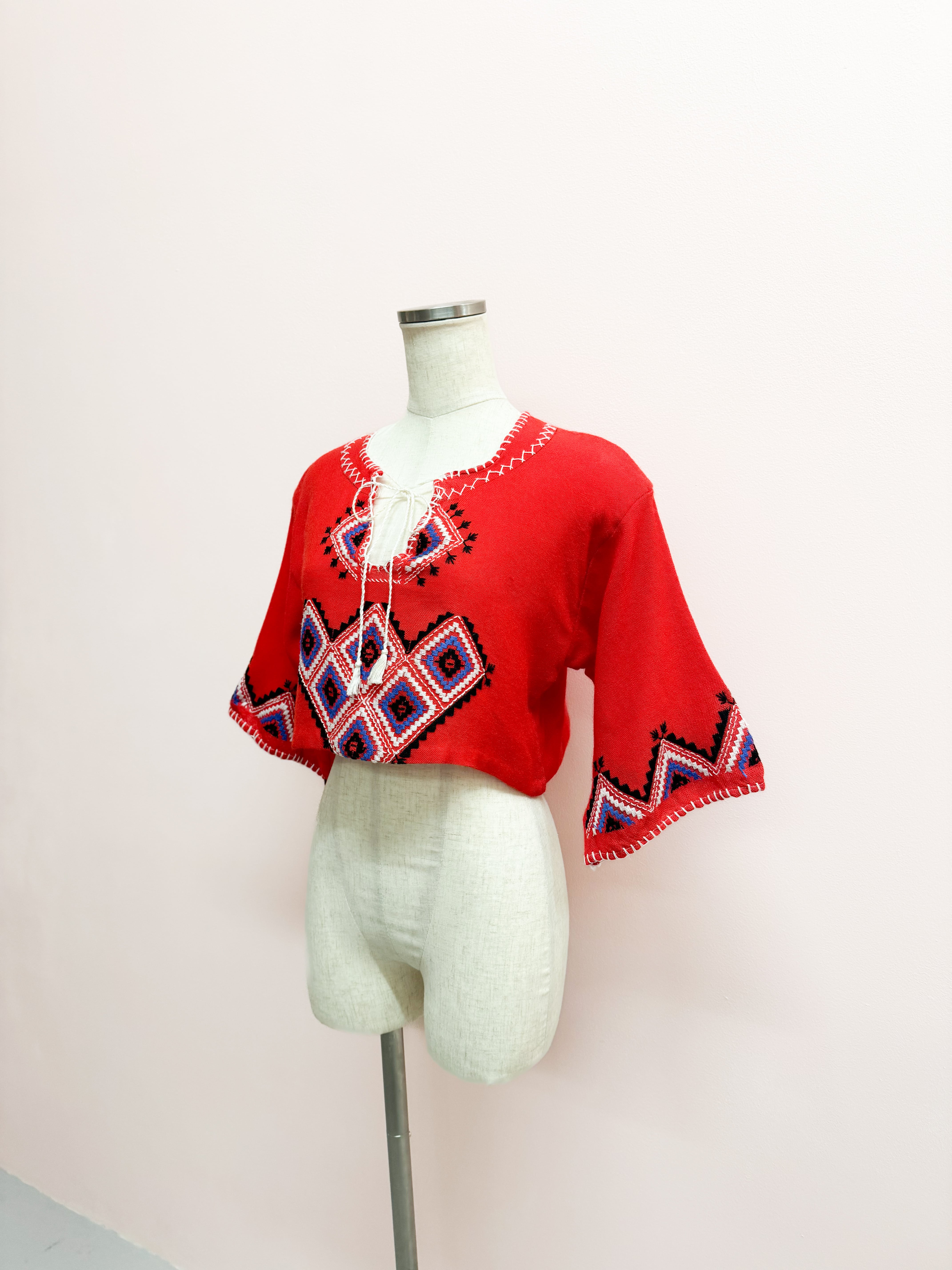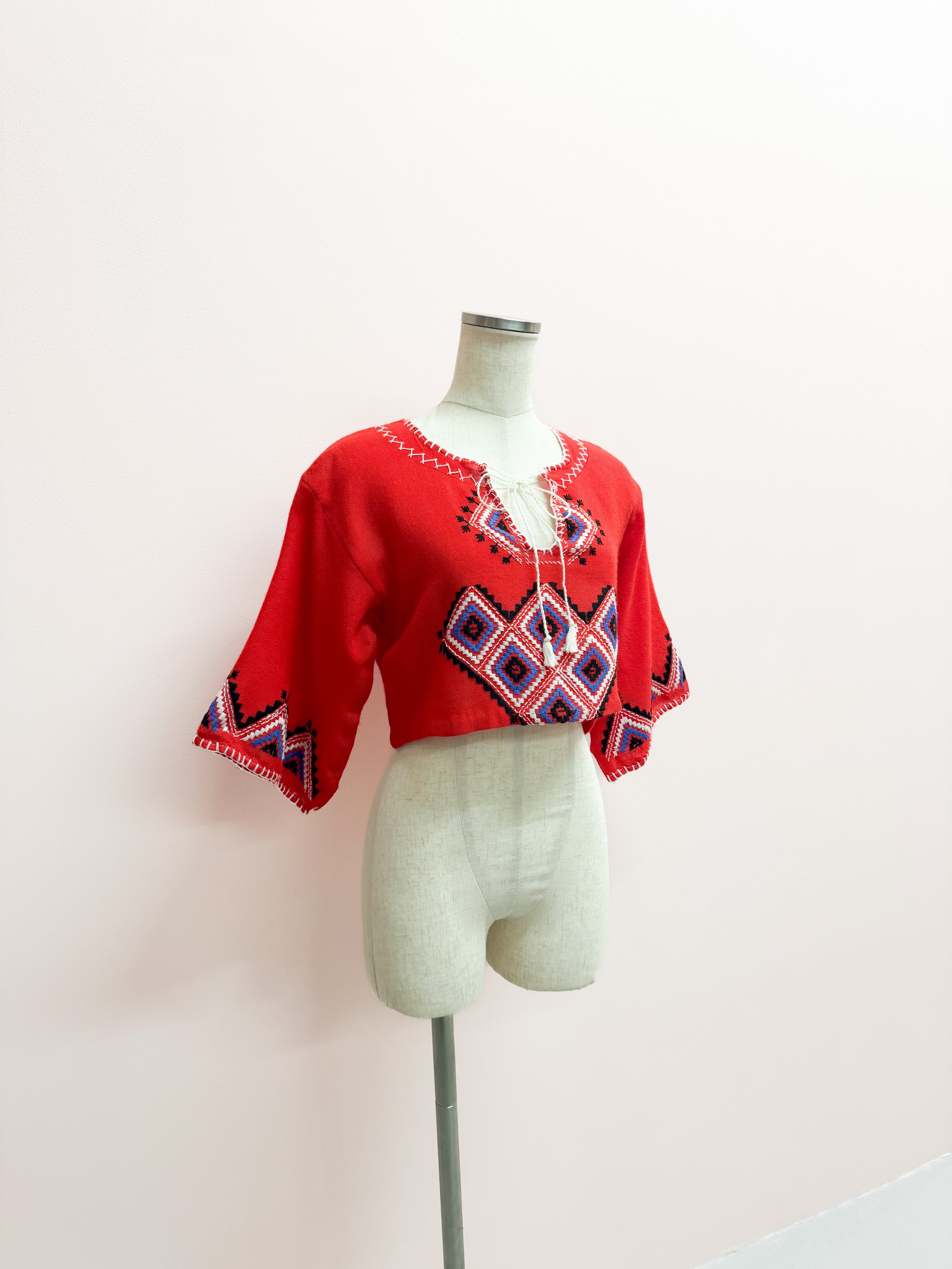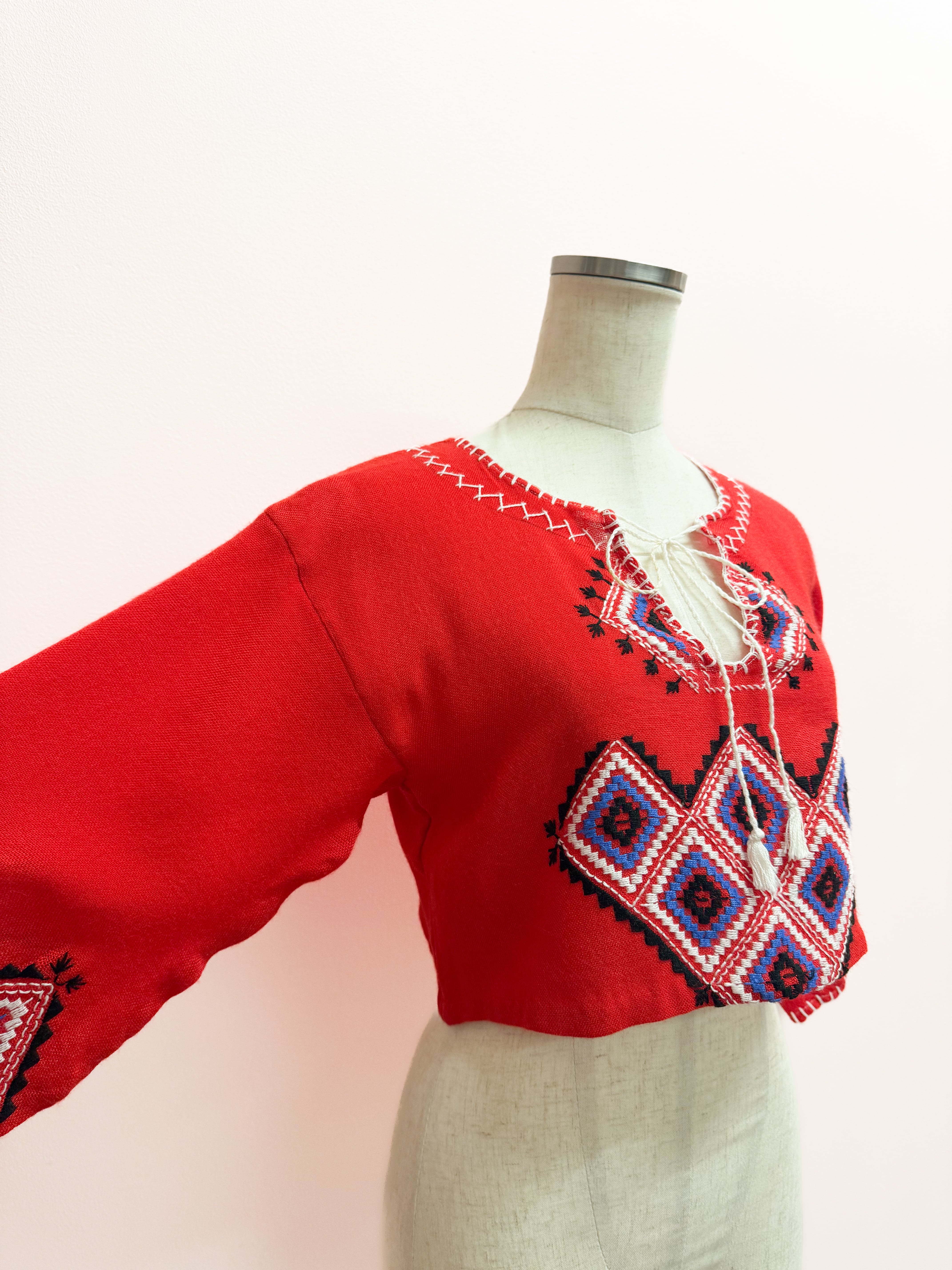 vintage embroidered folk crop blouse