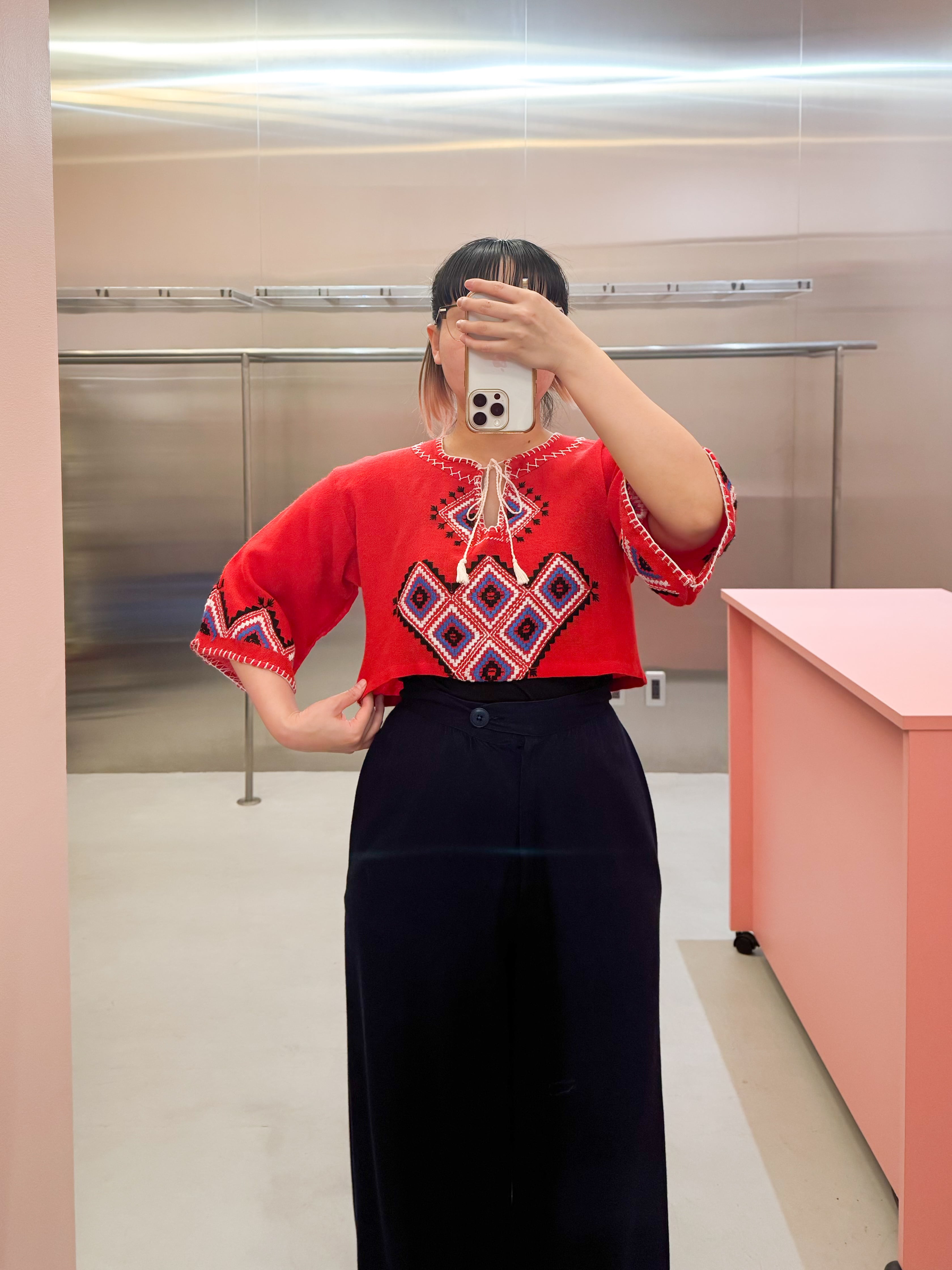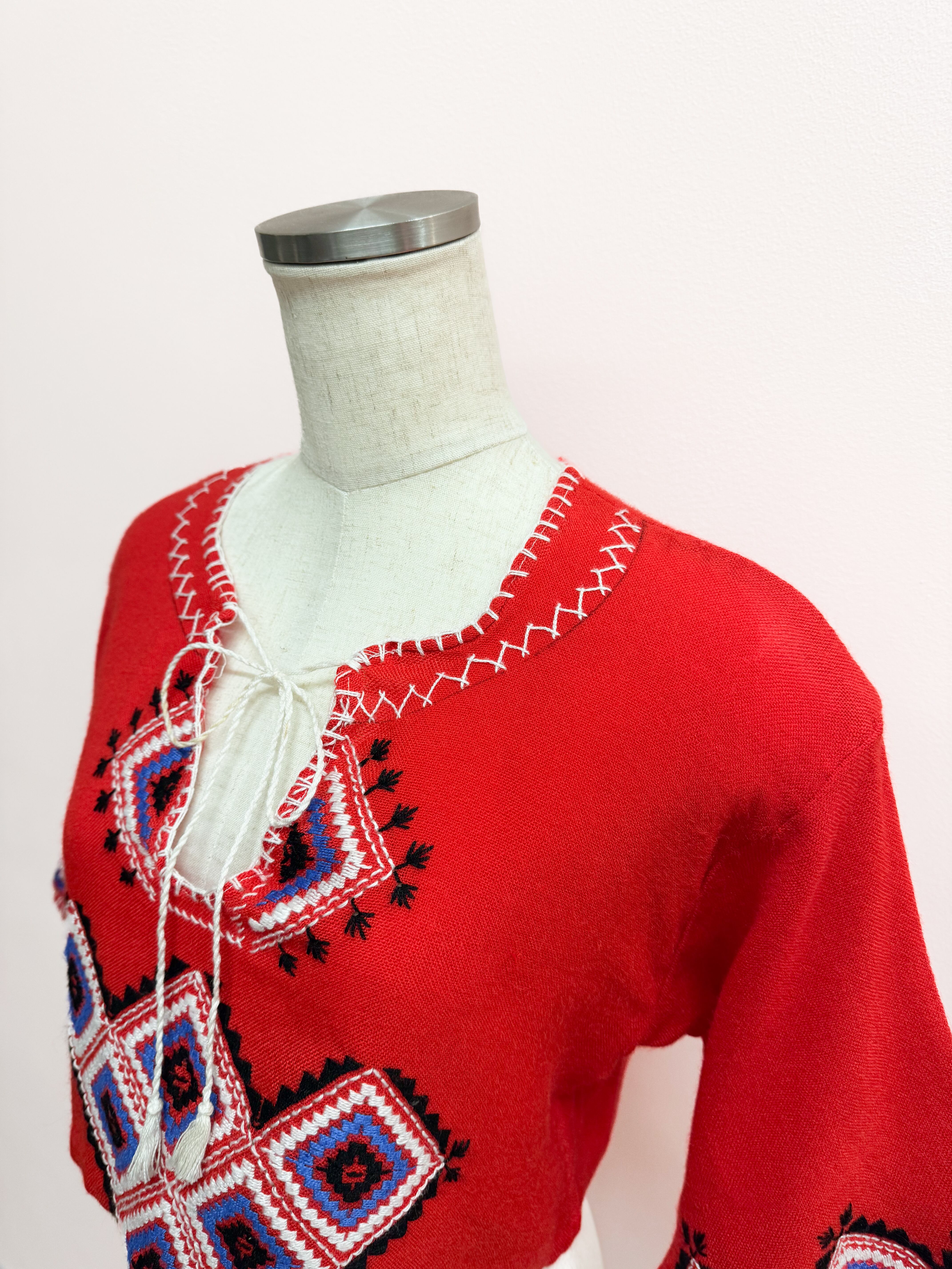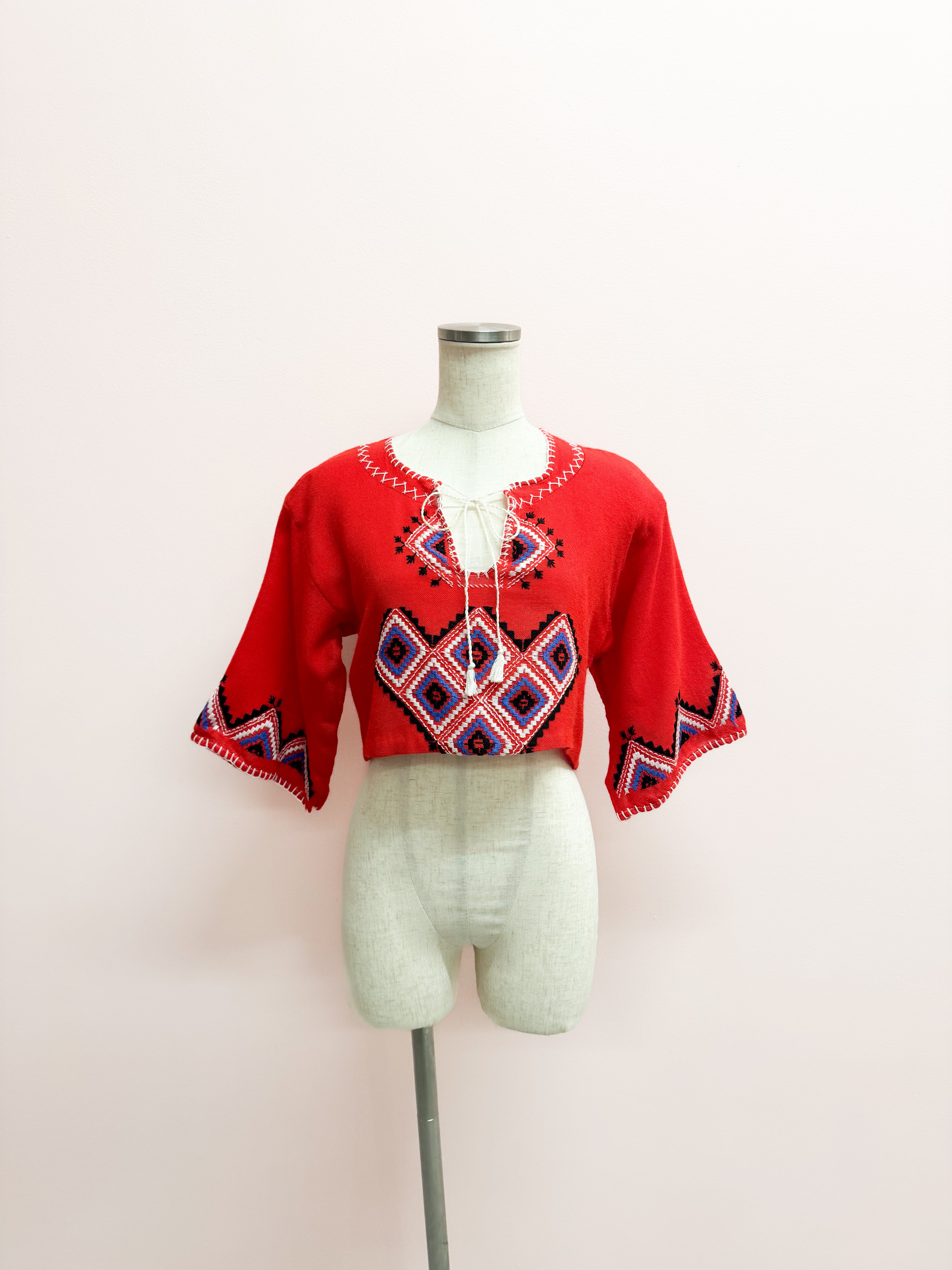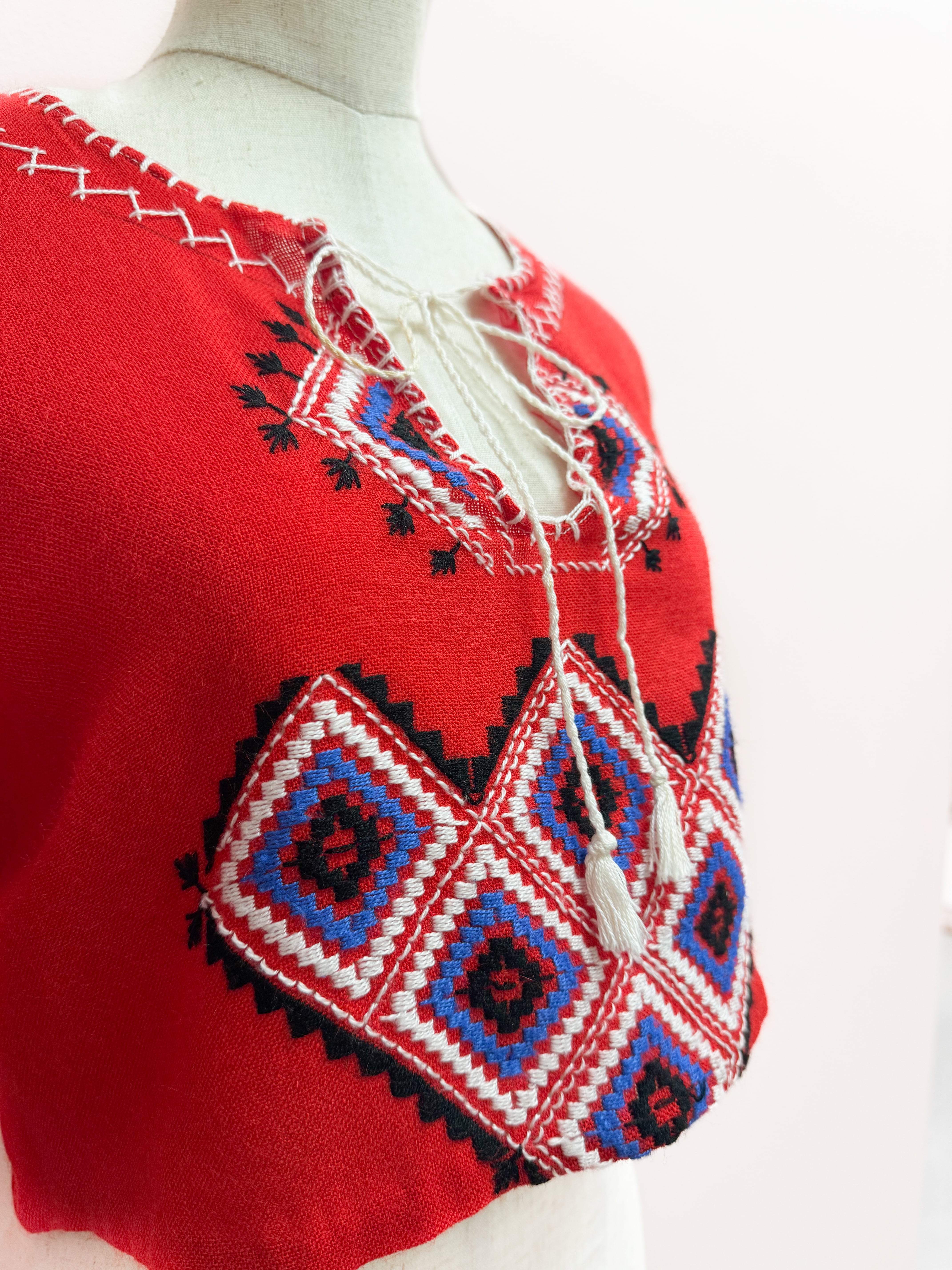 vintage embroidered folk crop blouse