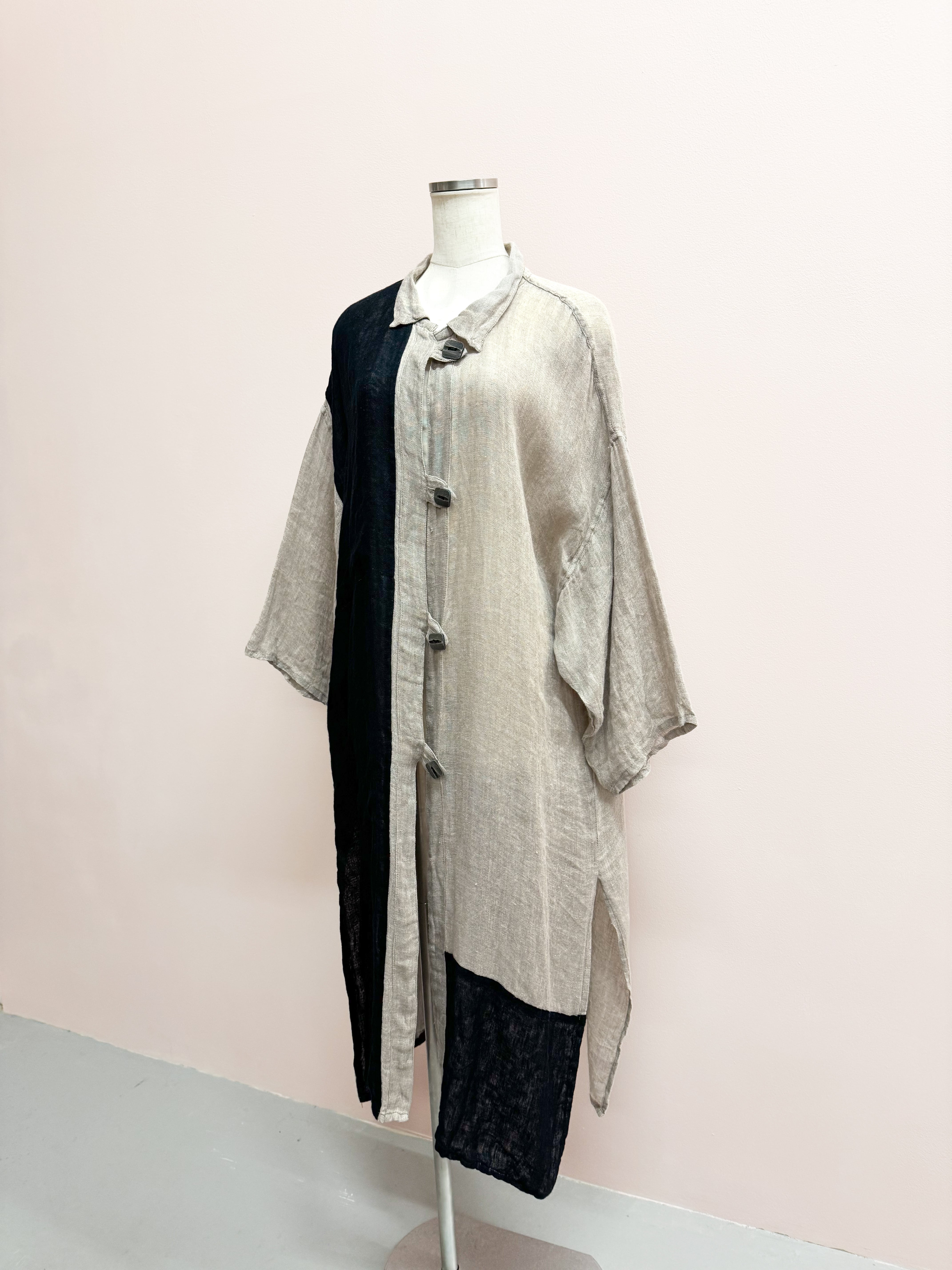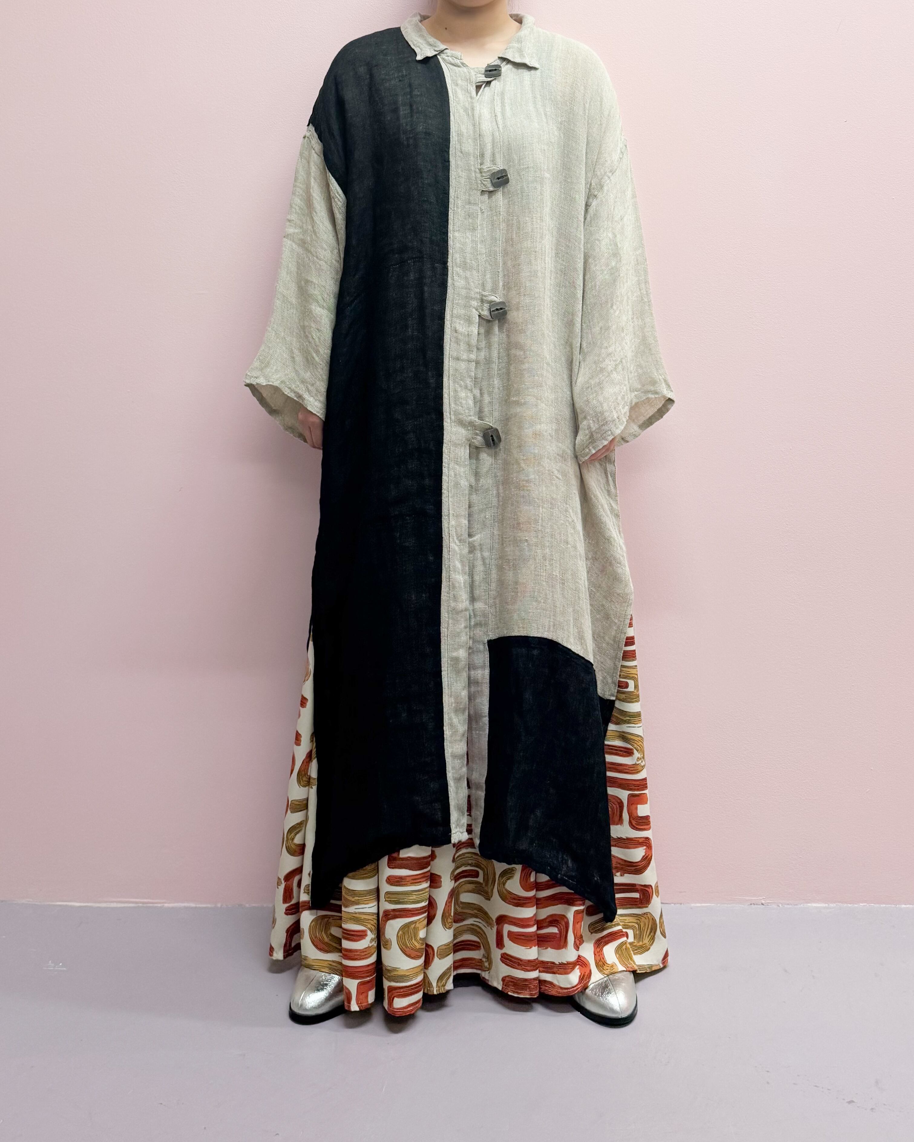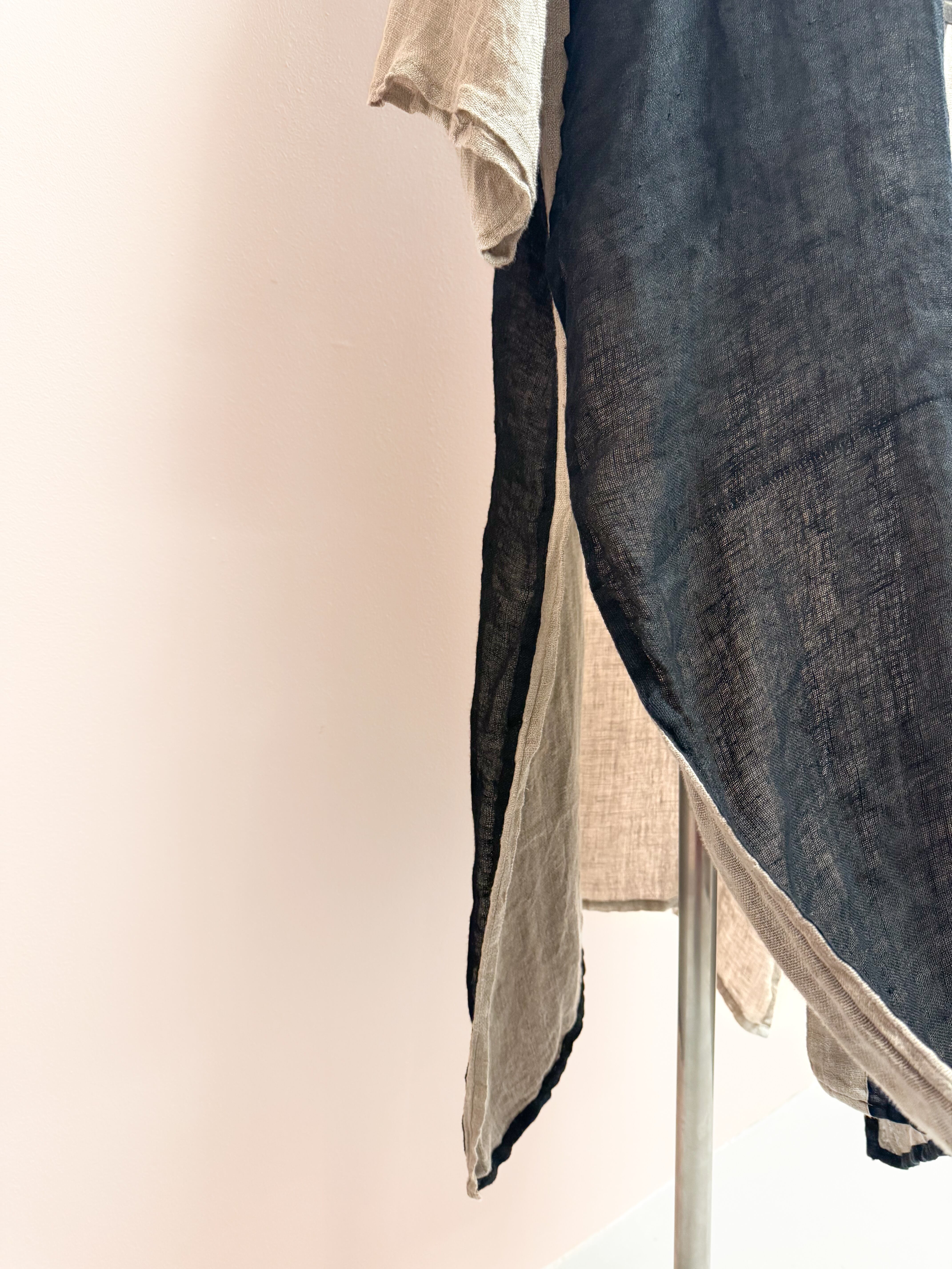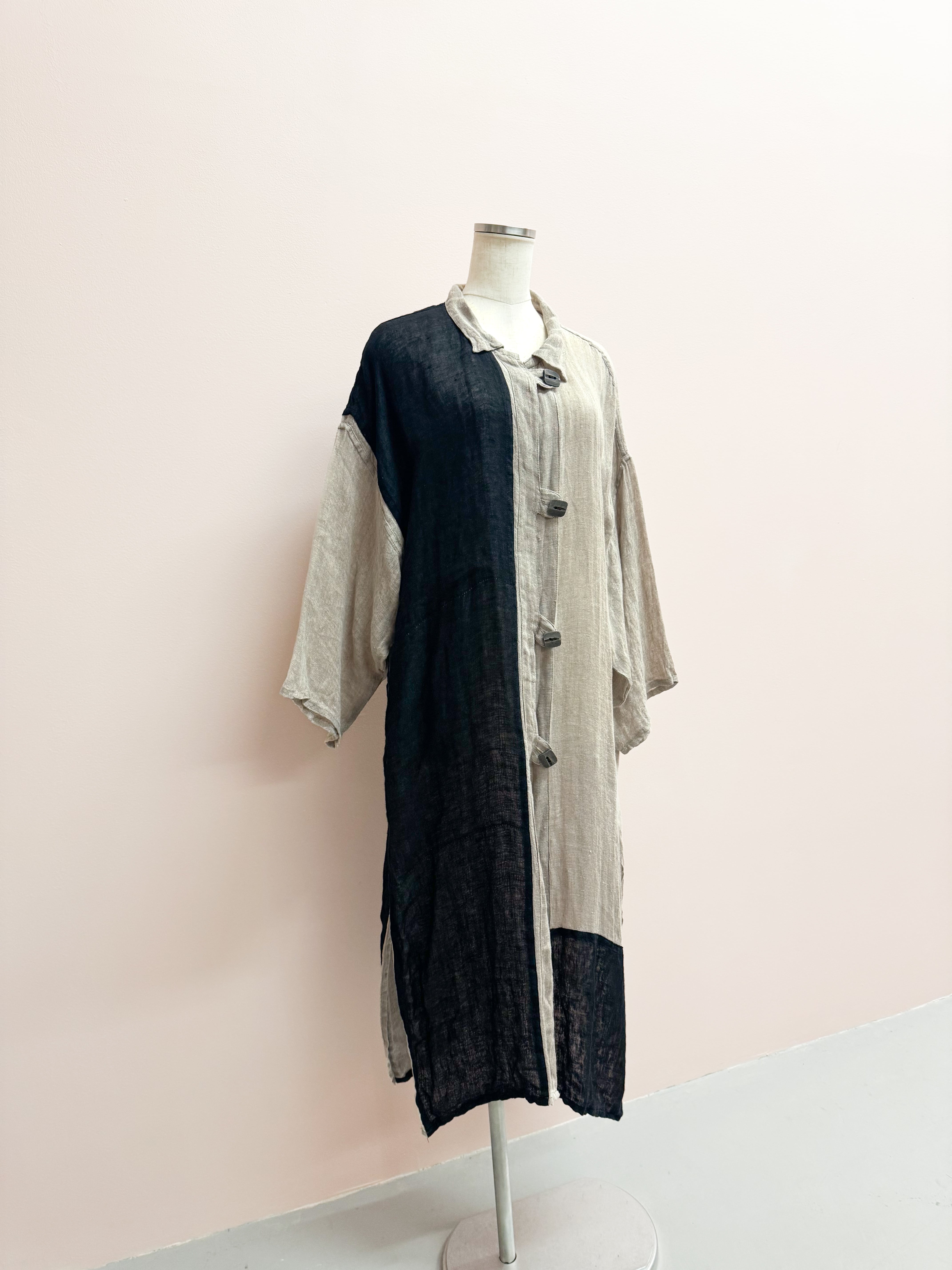 vintage linen color block long cardigan