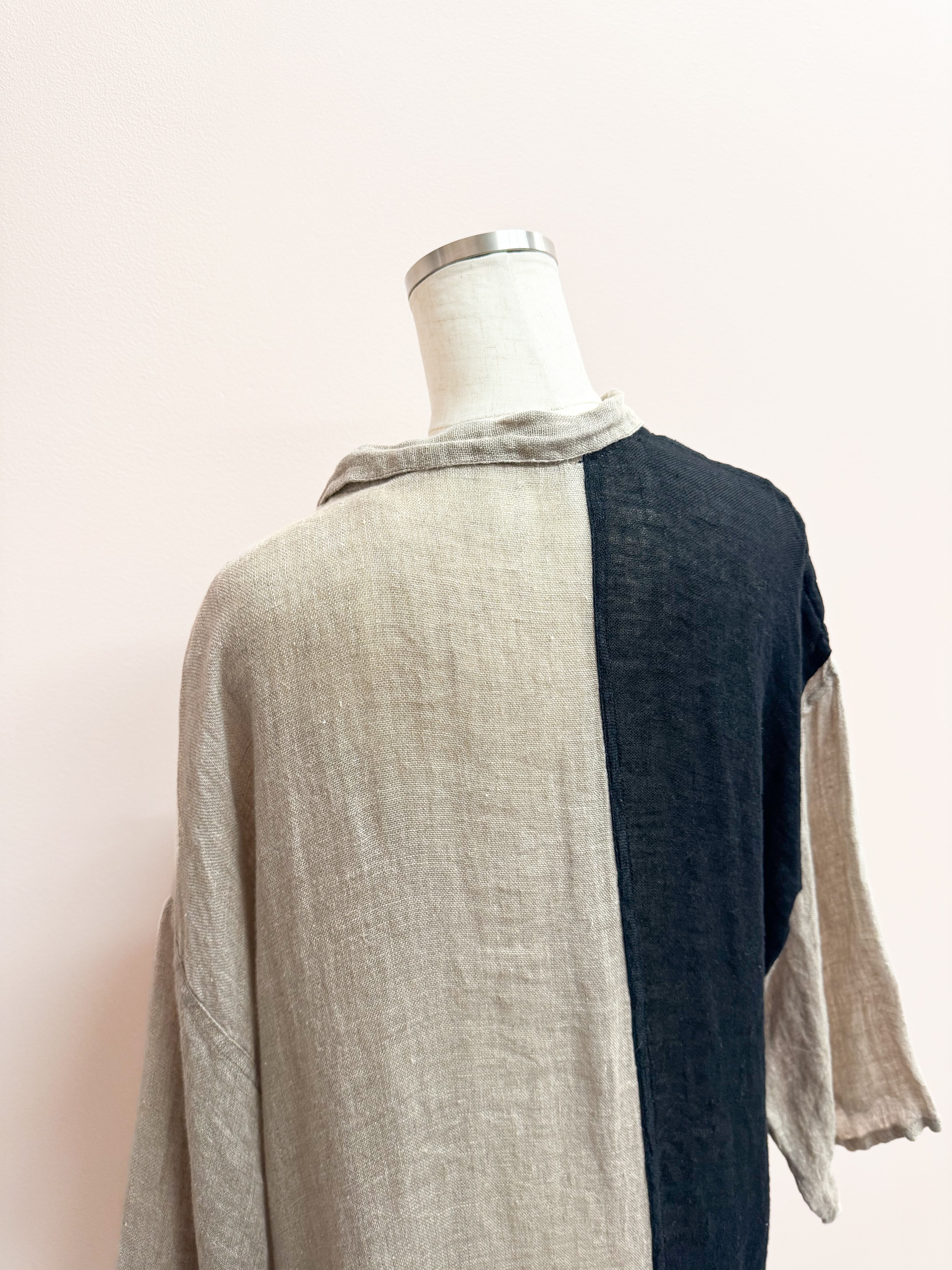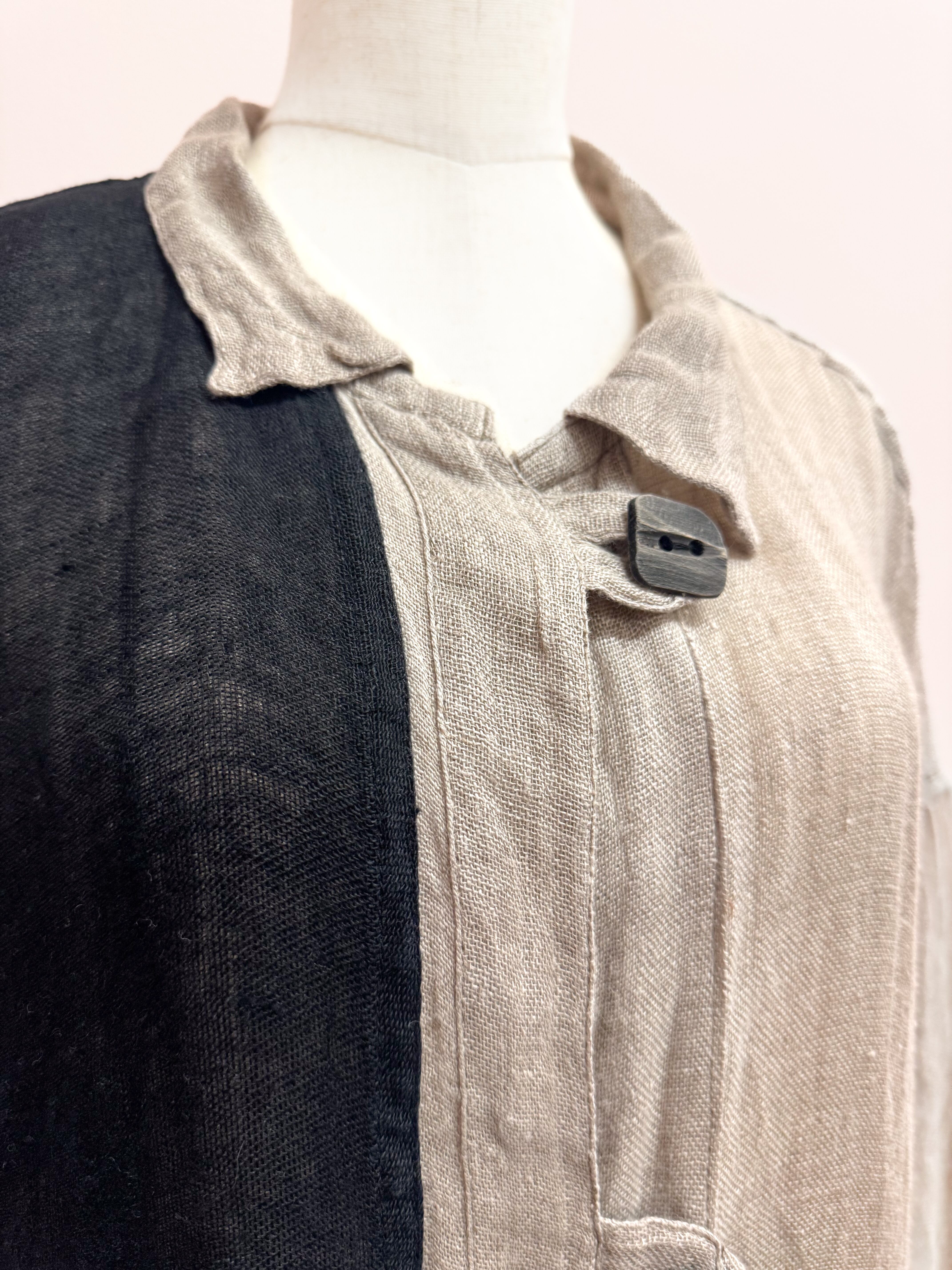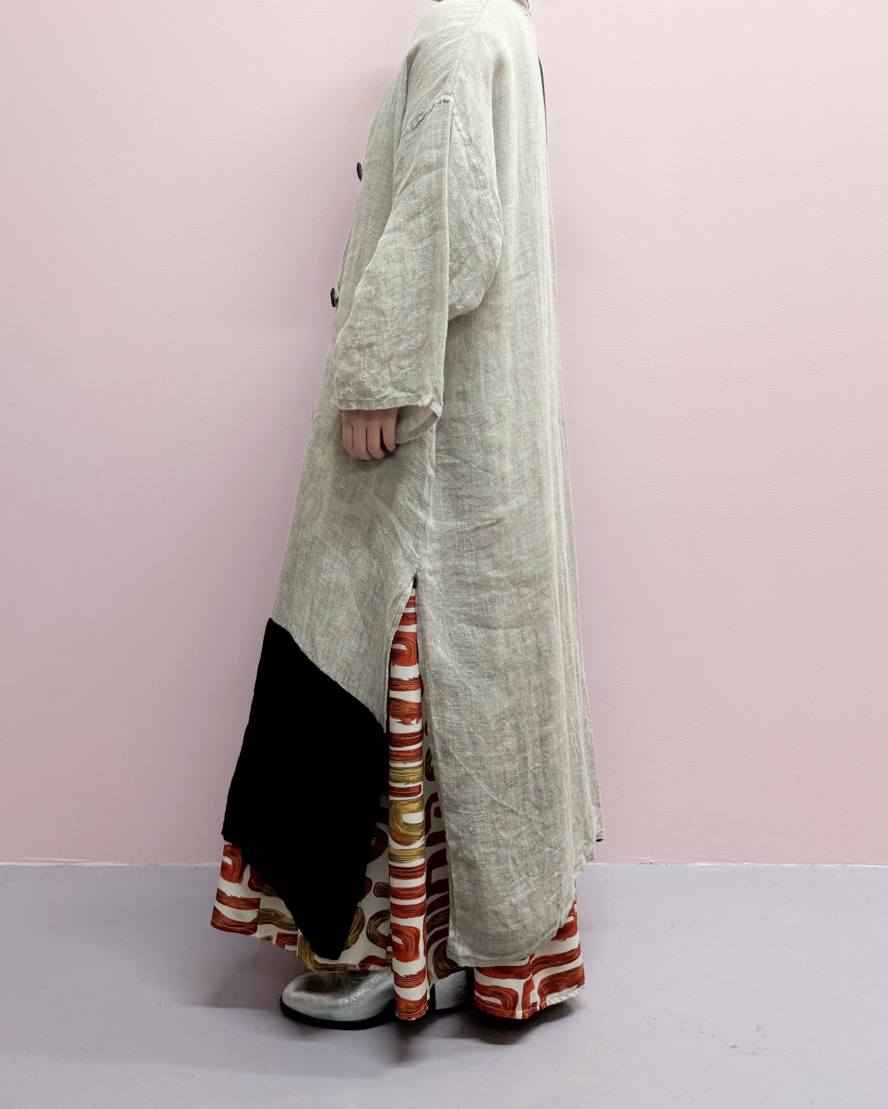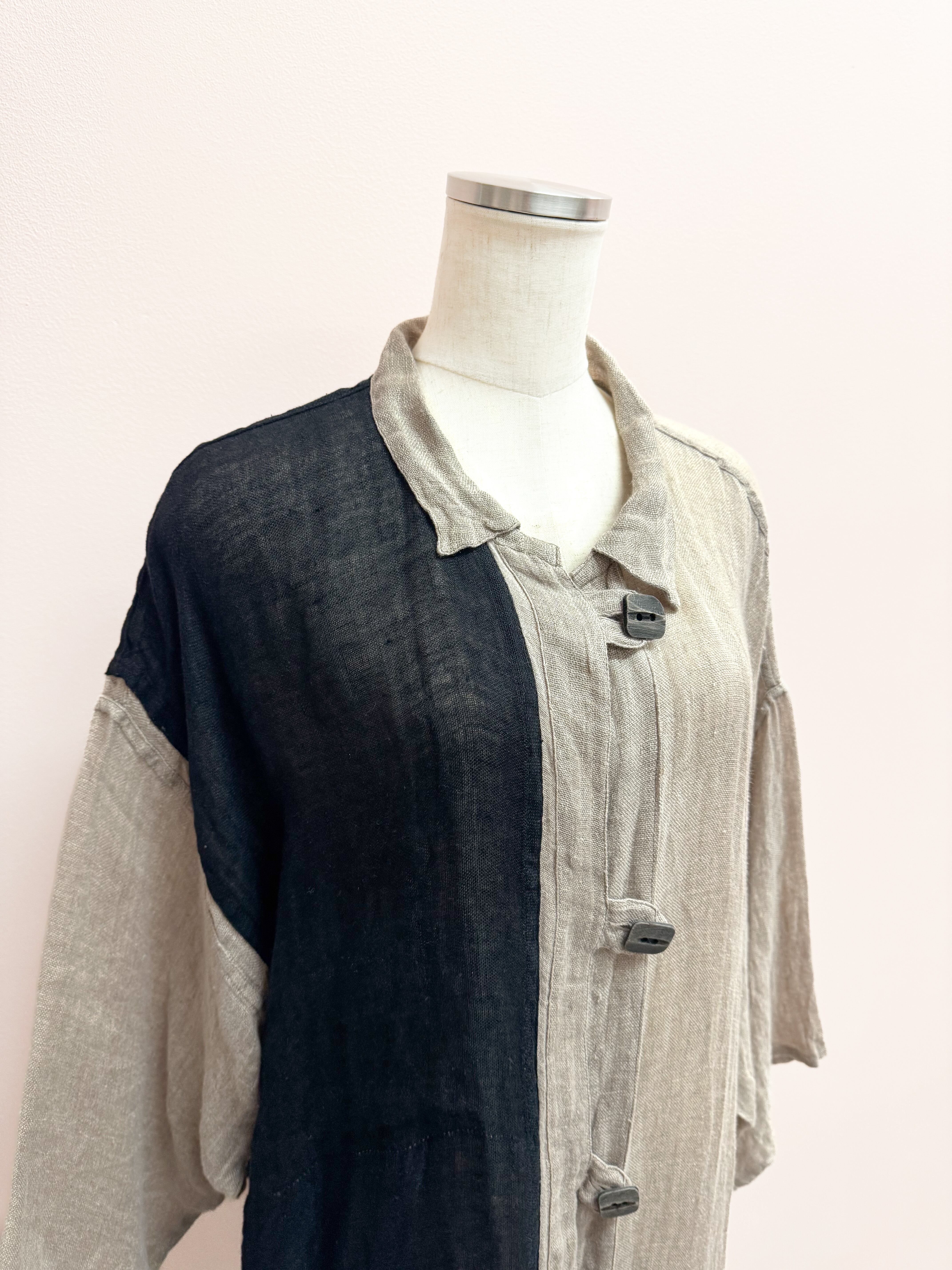 vintage linen color block long cardigan