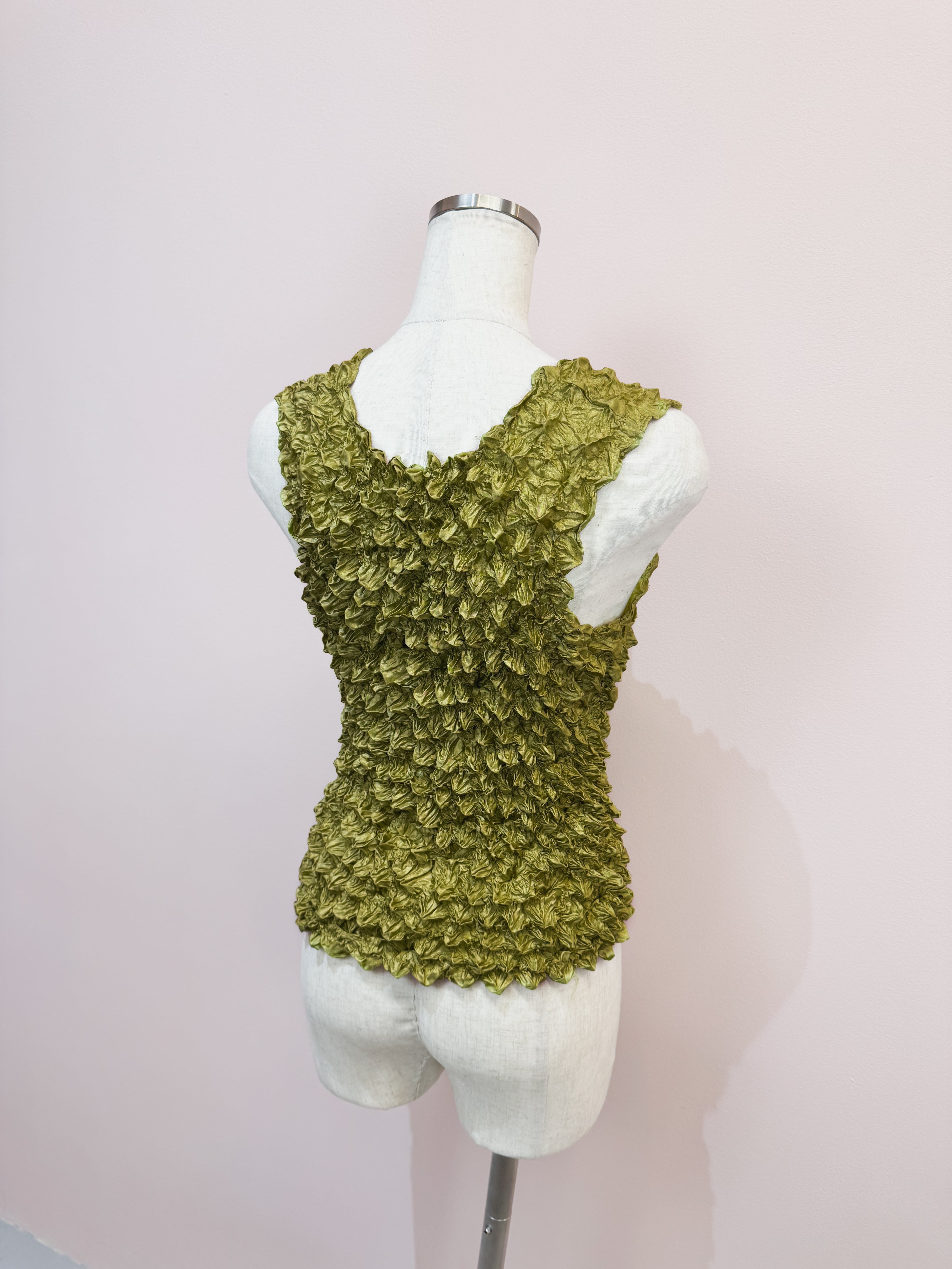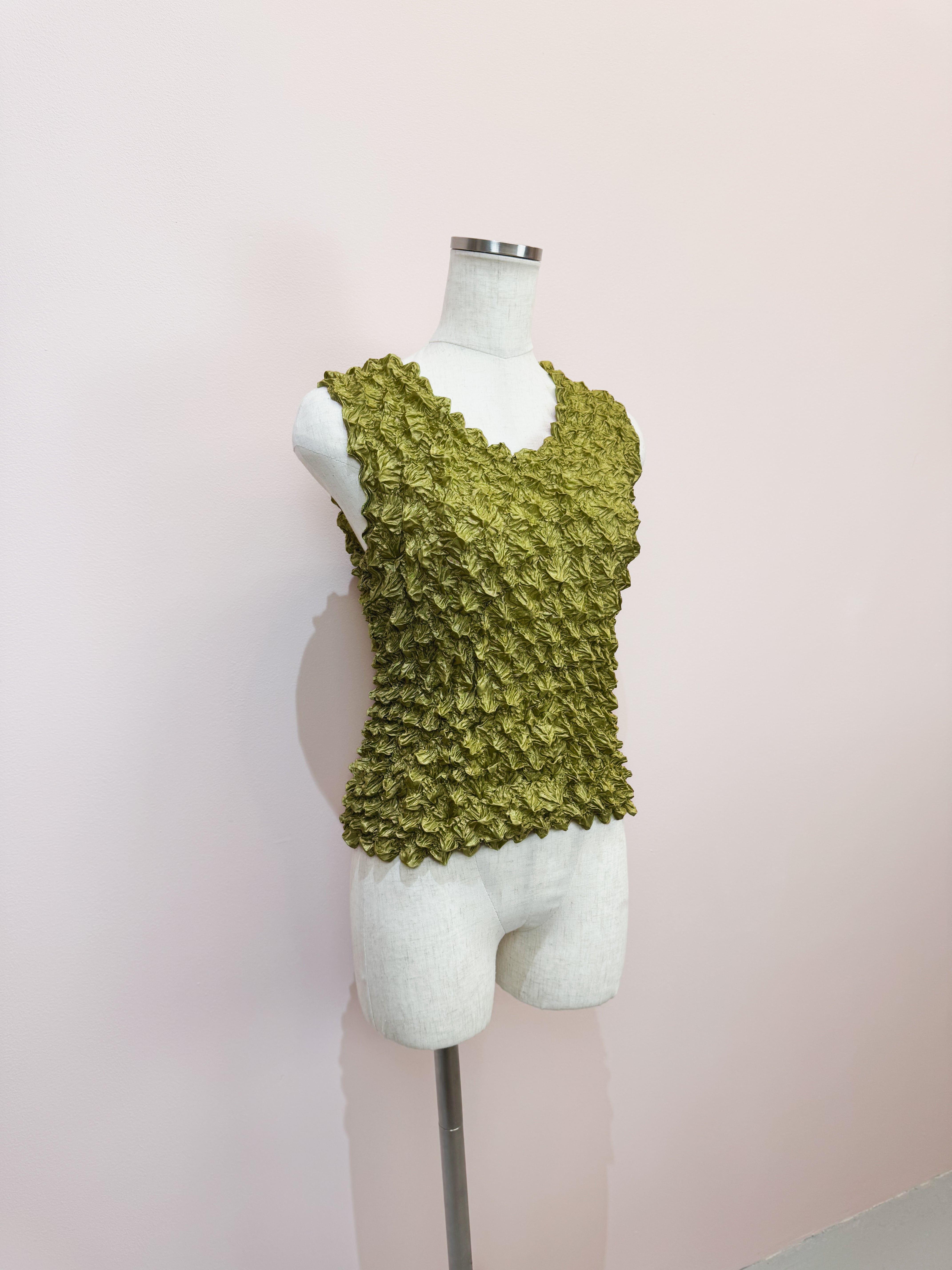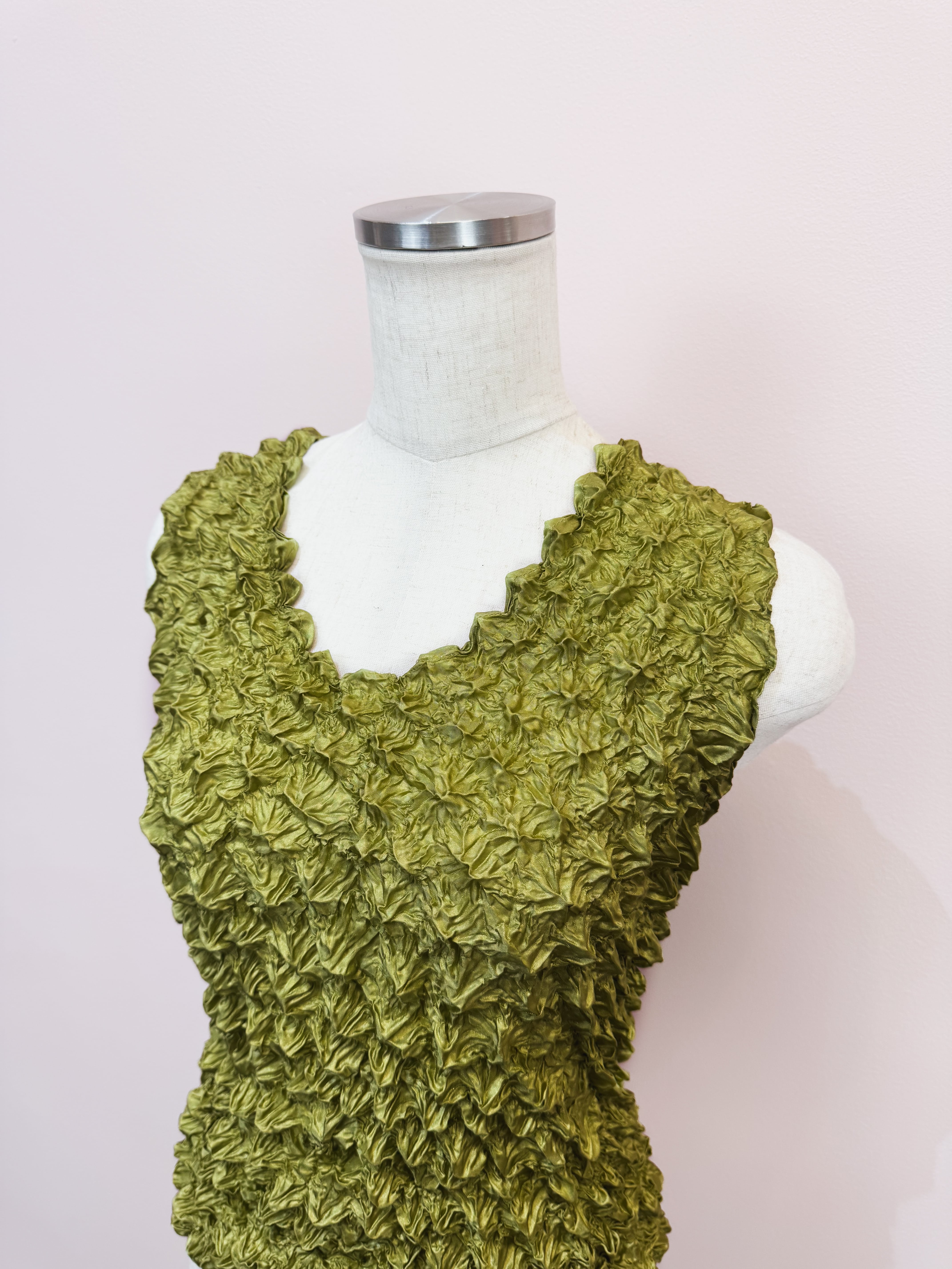 vintage olive crinkle popcorn tank top
