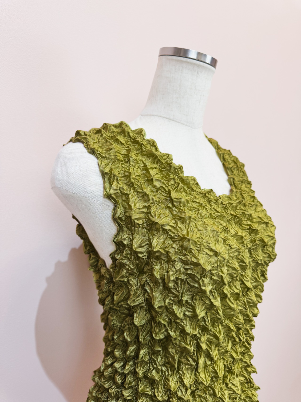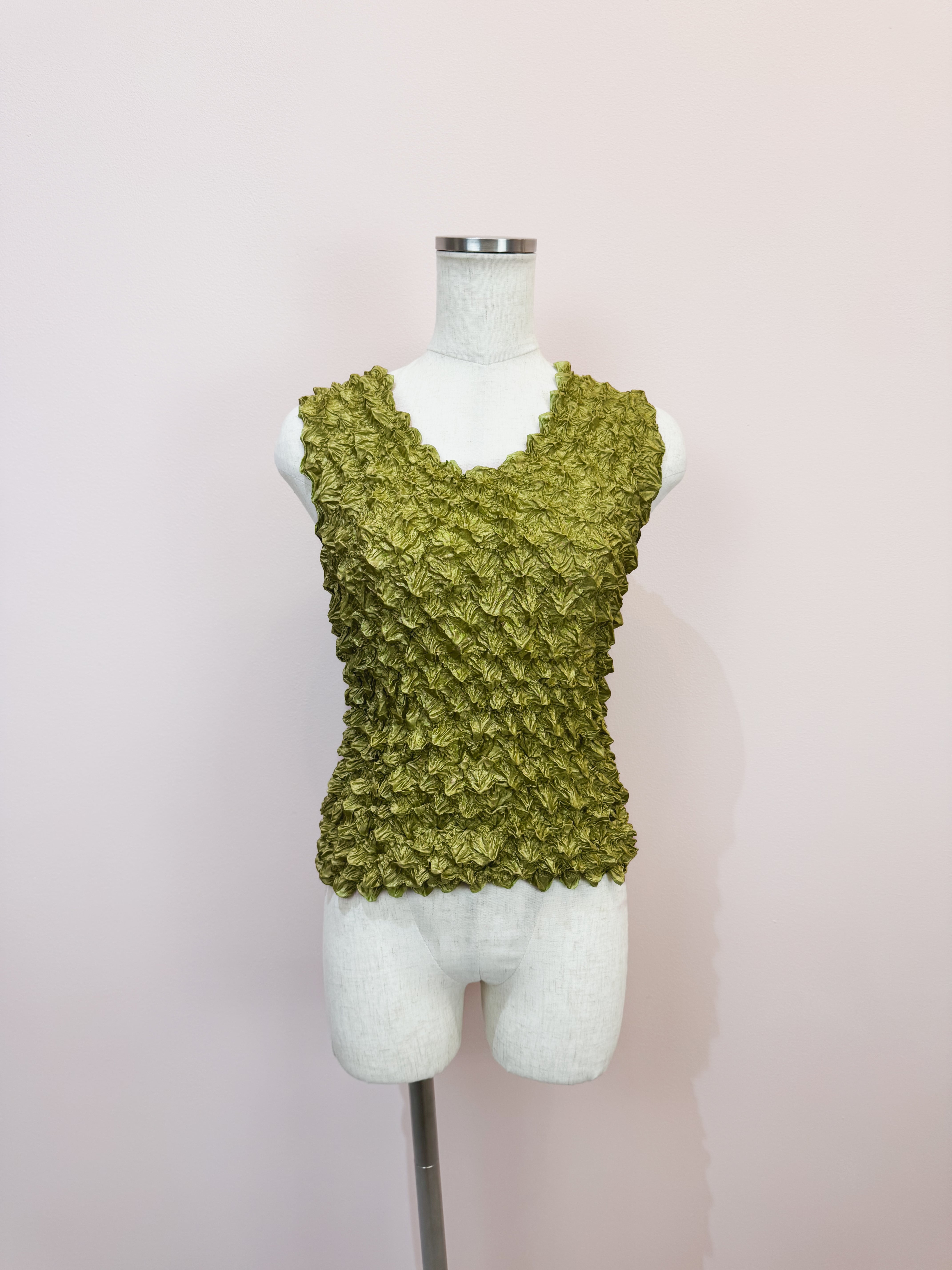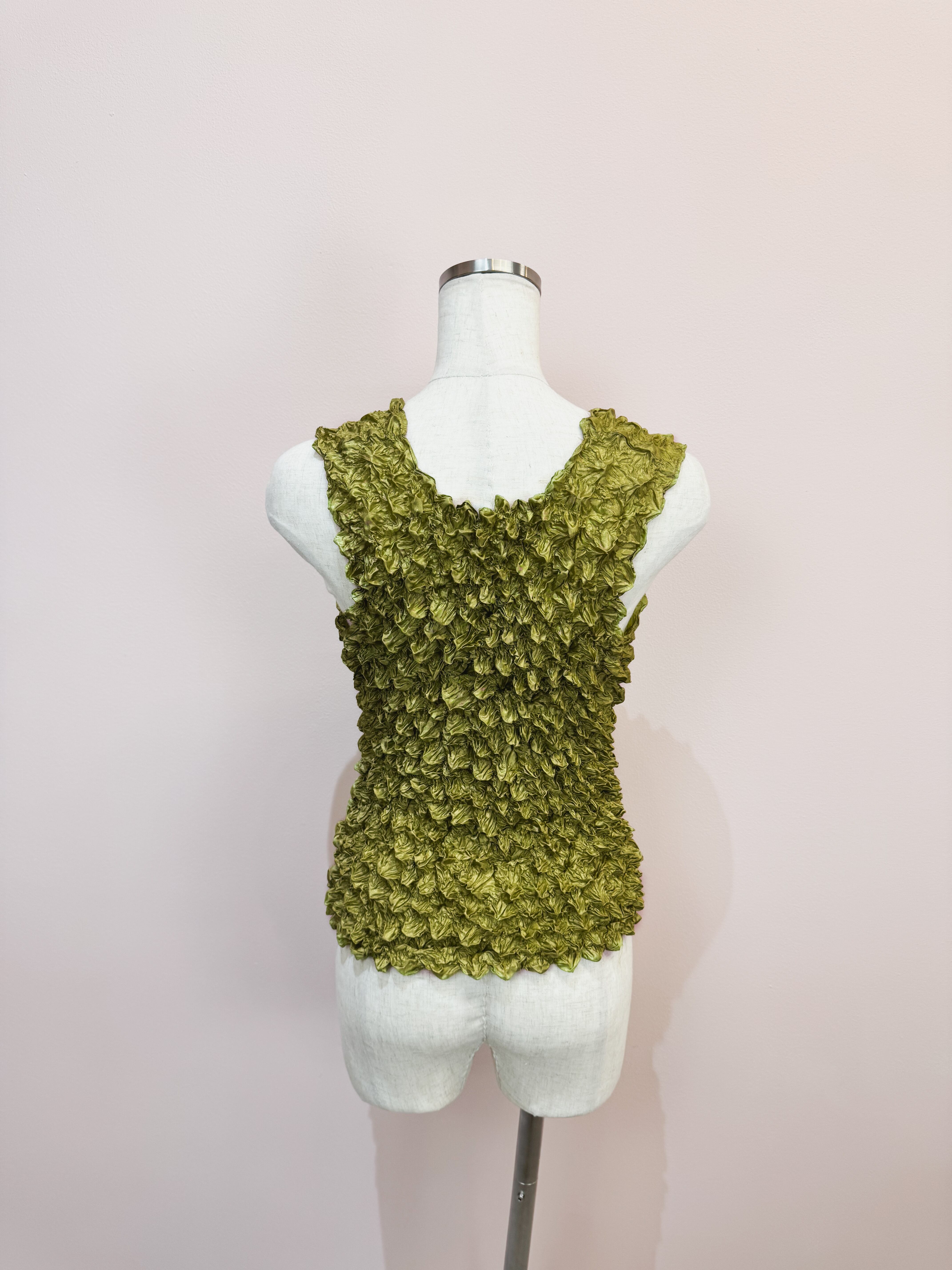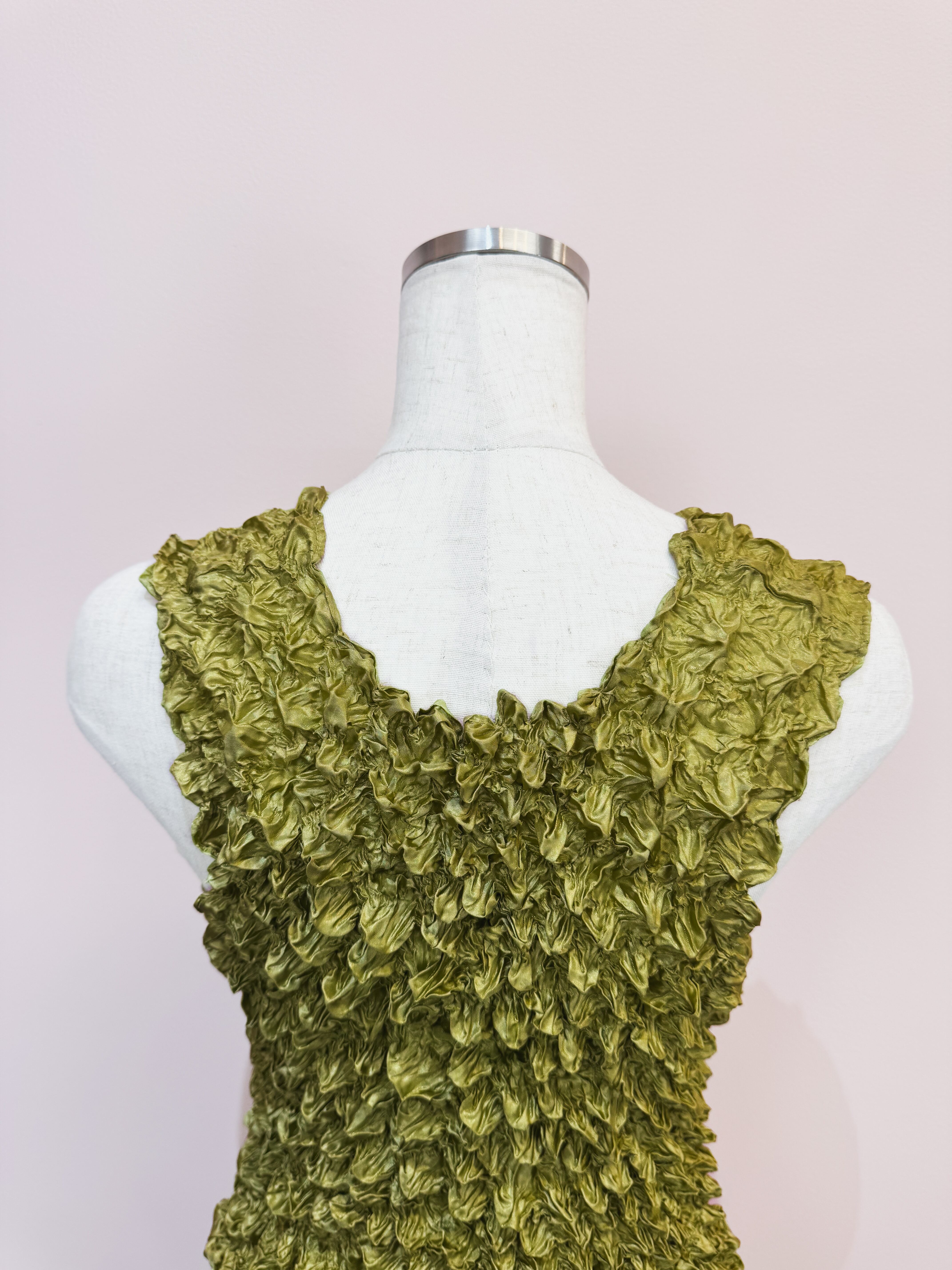 vintage olive crinkle popcorn tank top