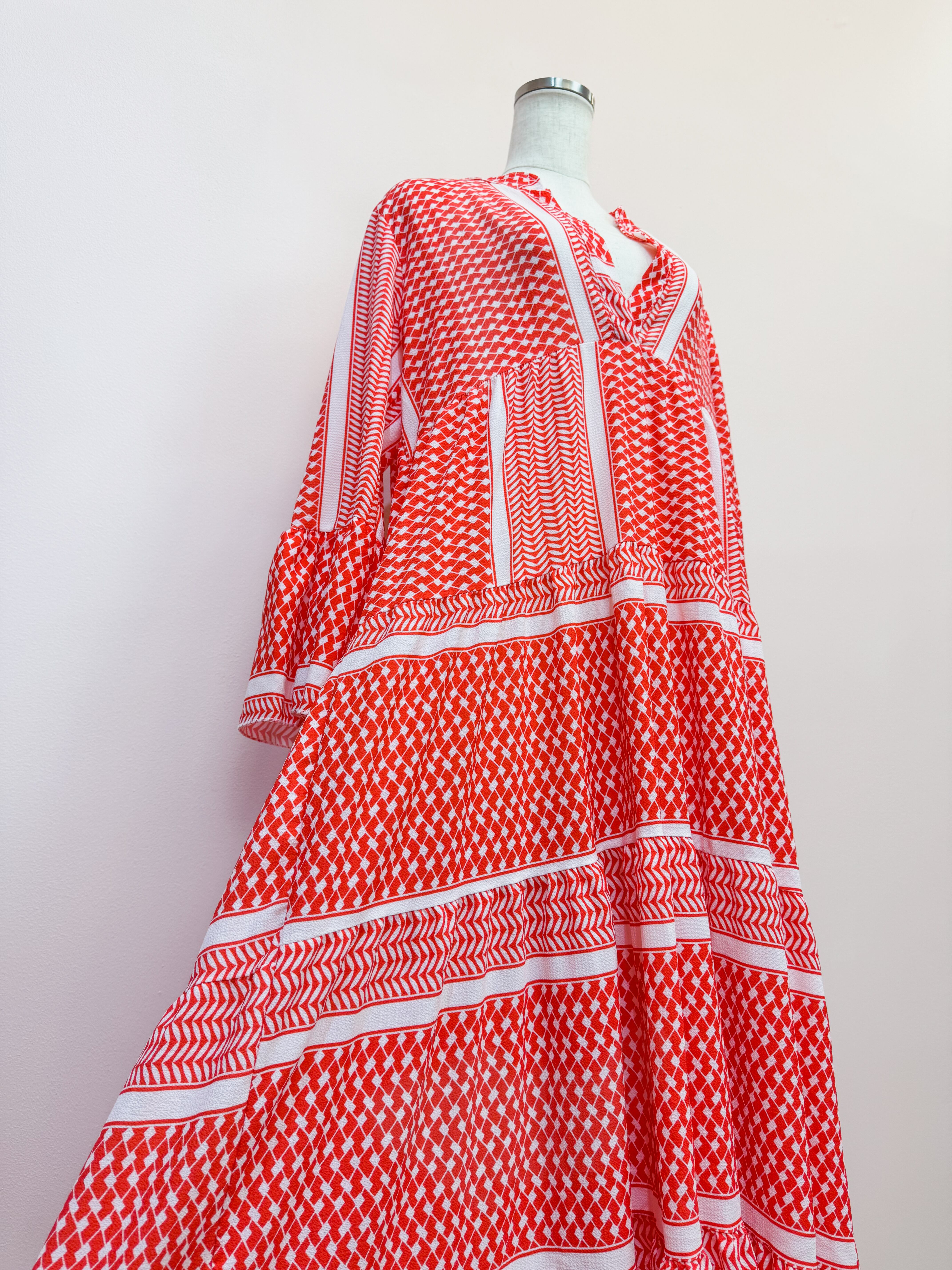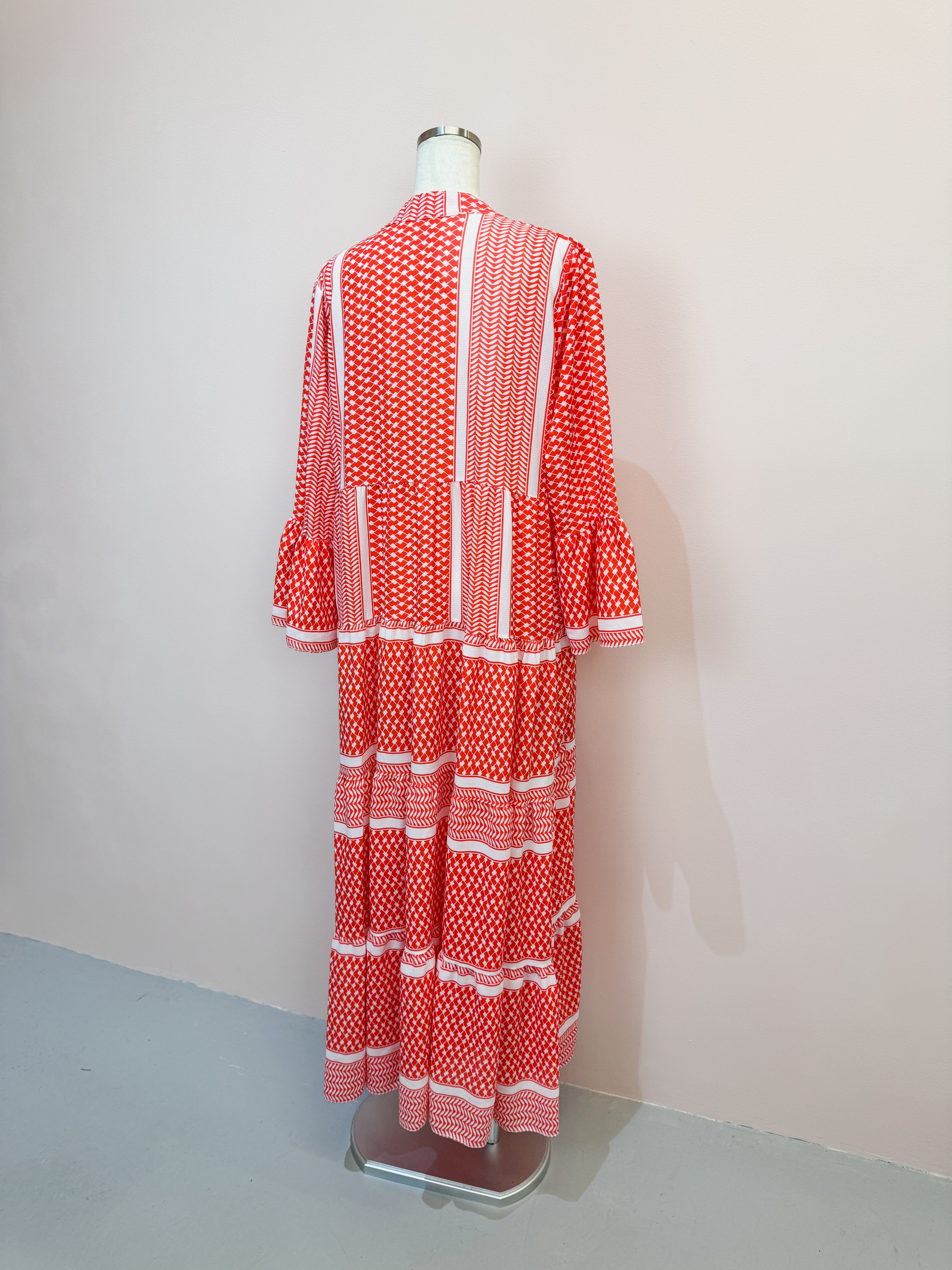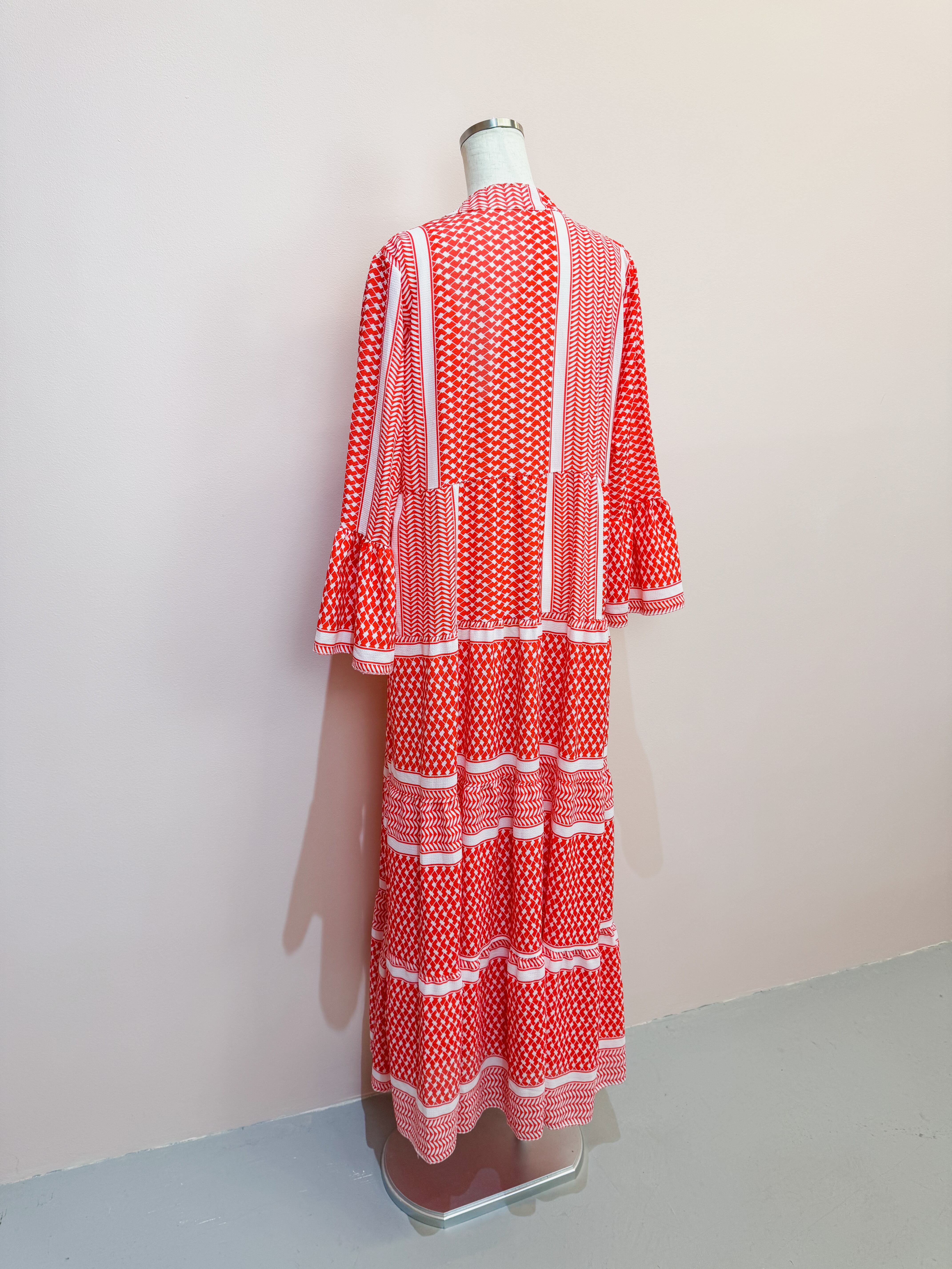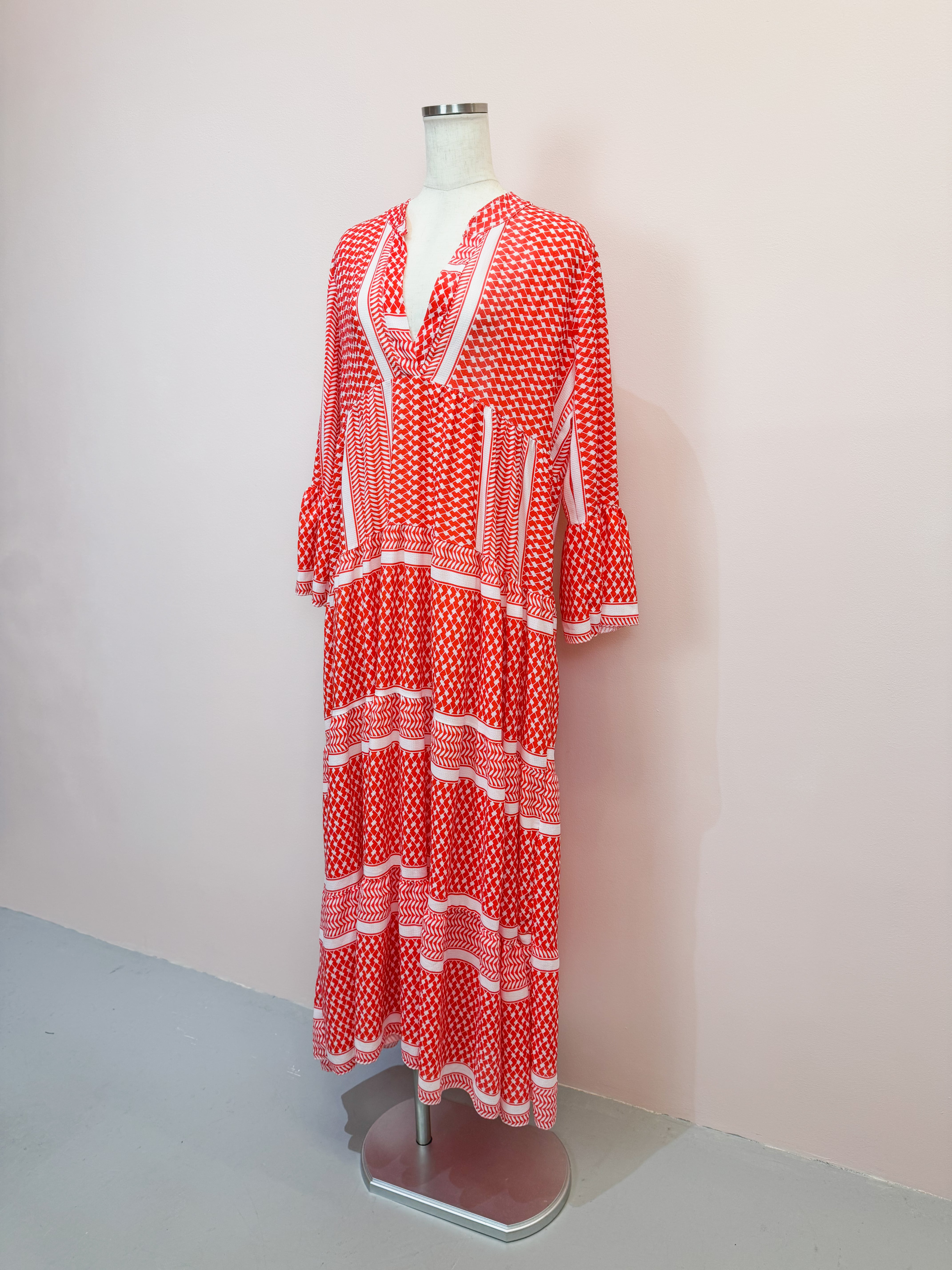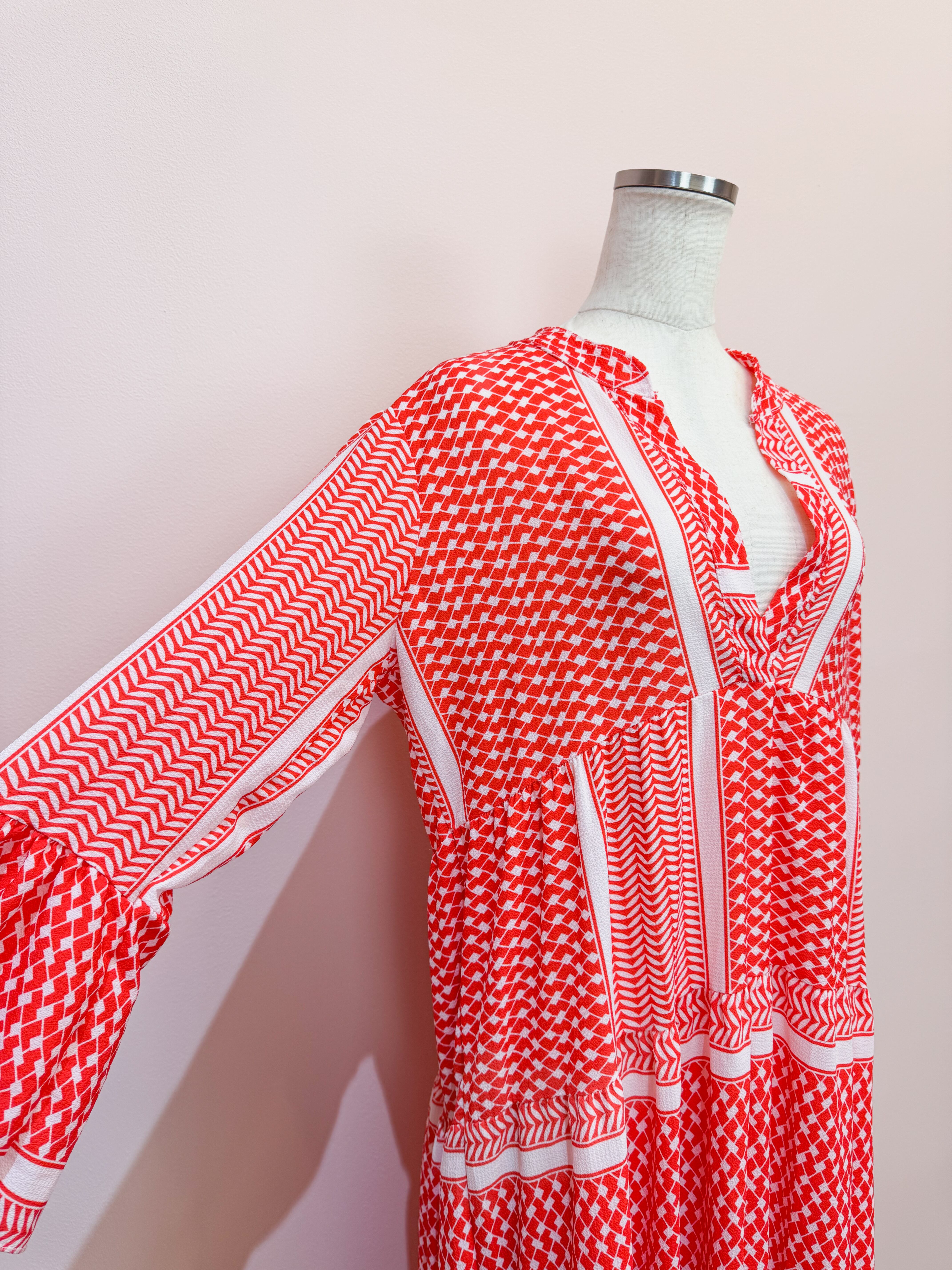 vintage red geometric panel long dress