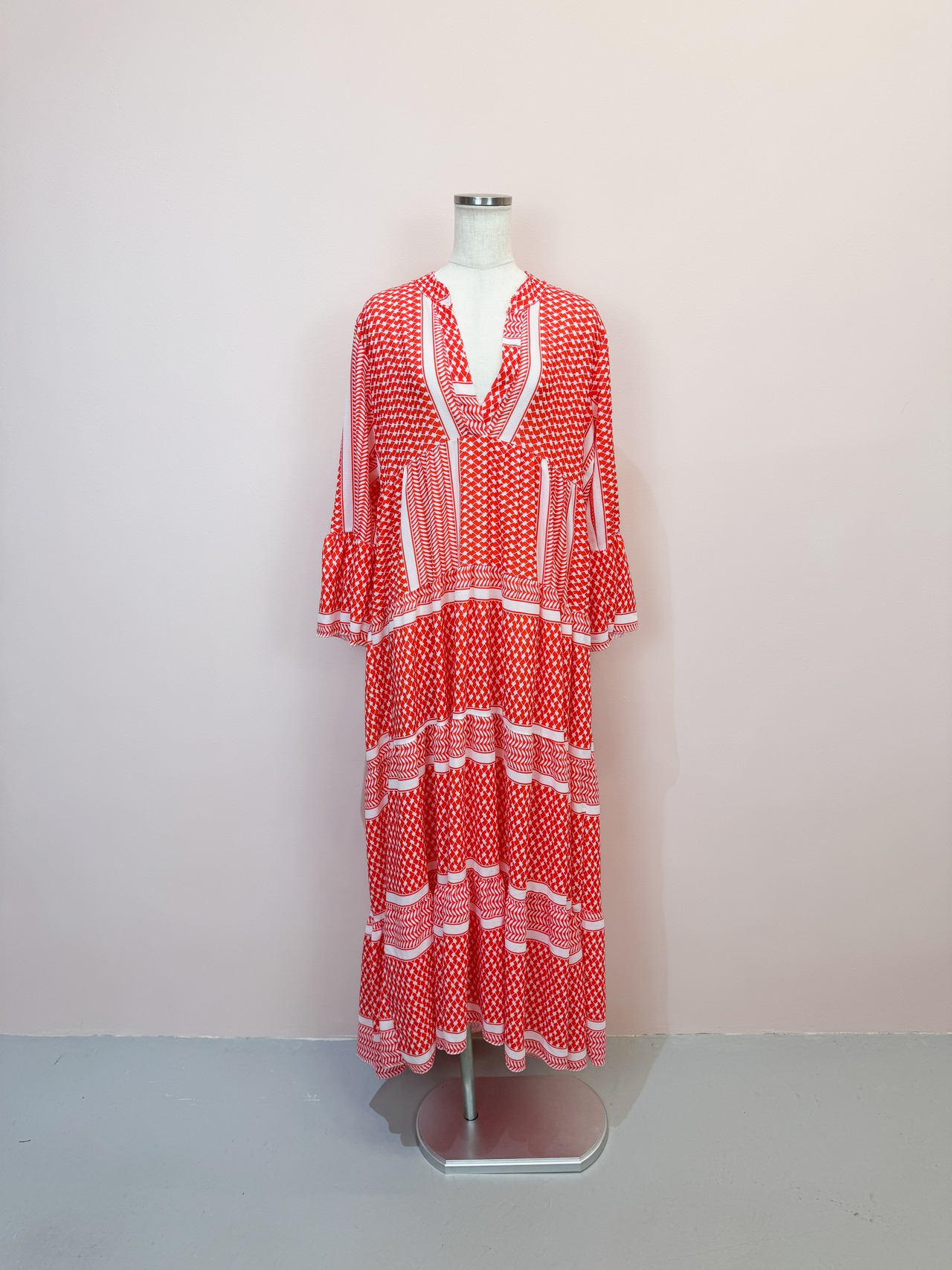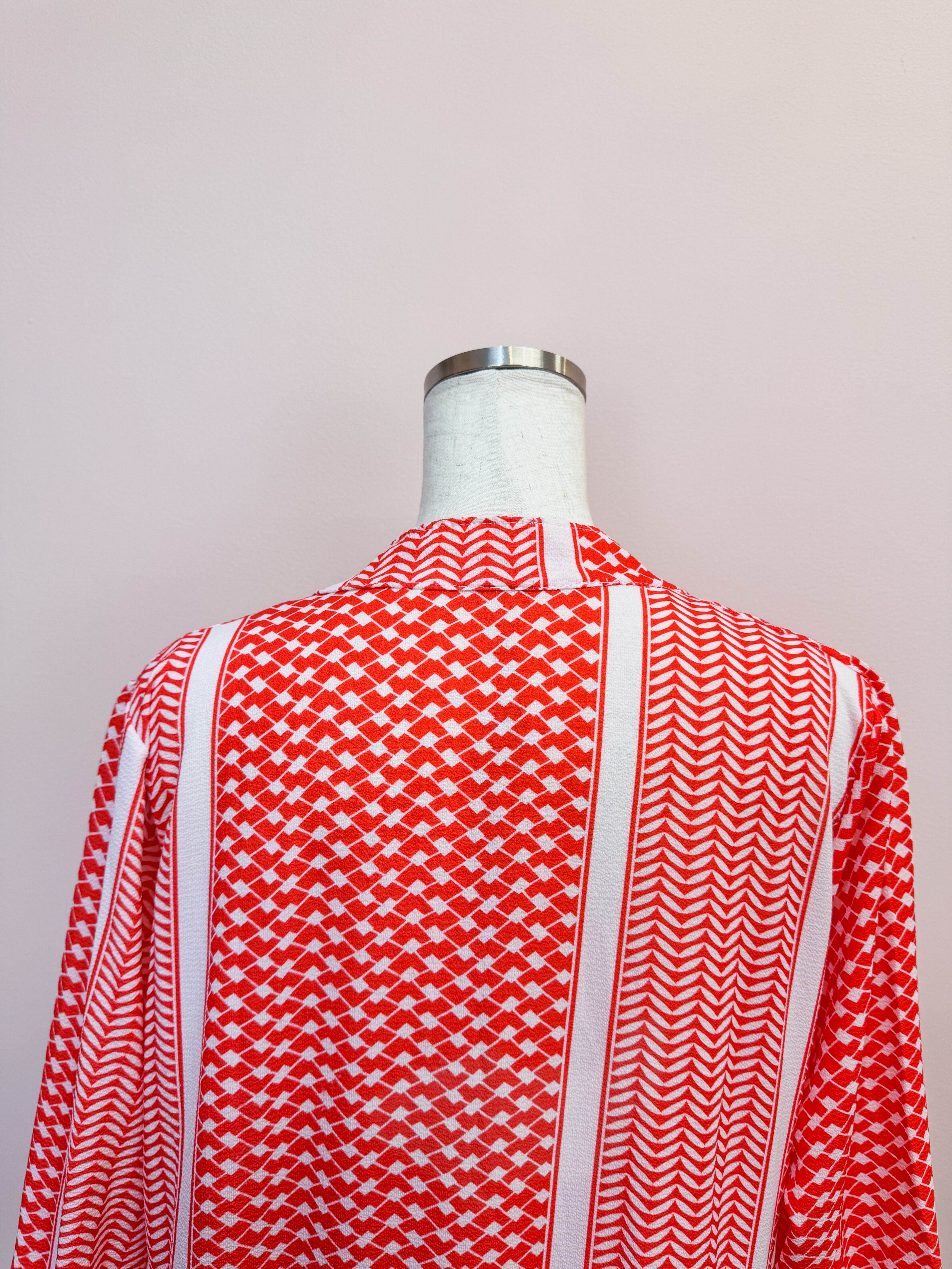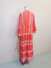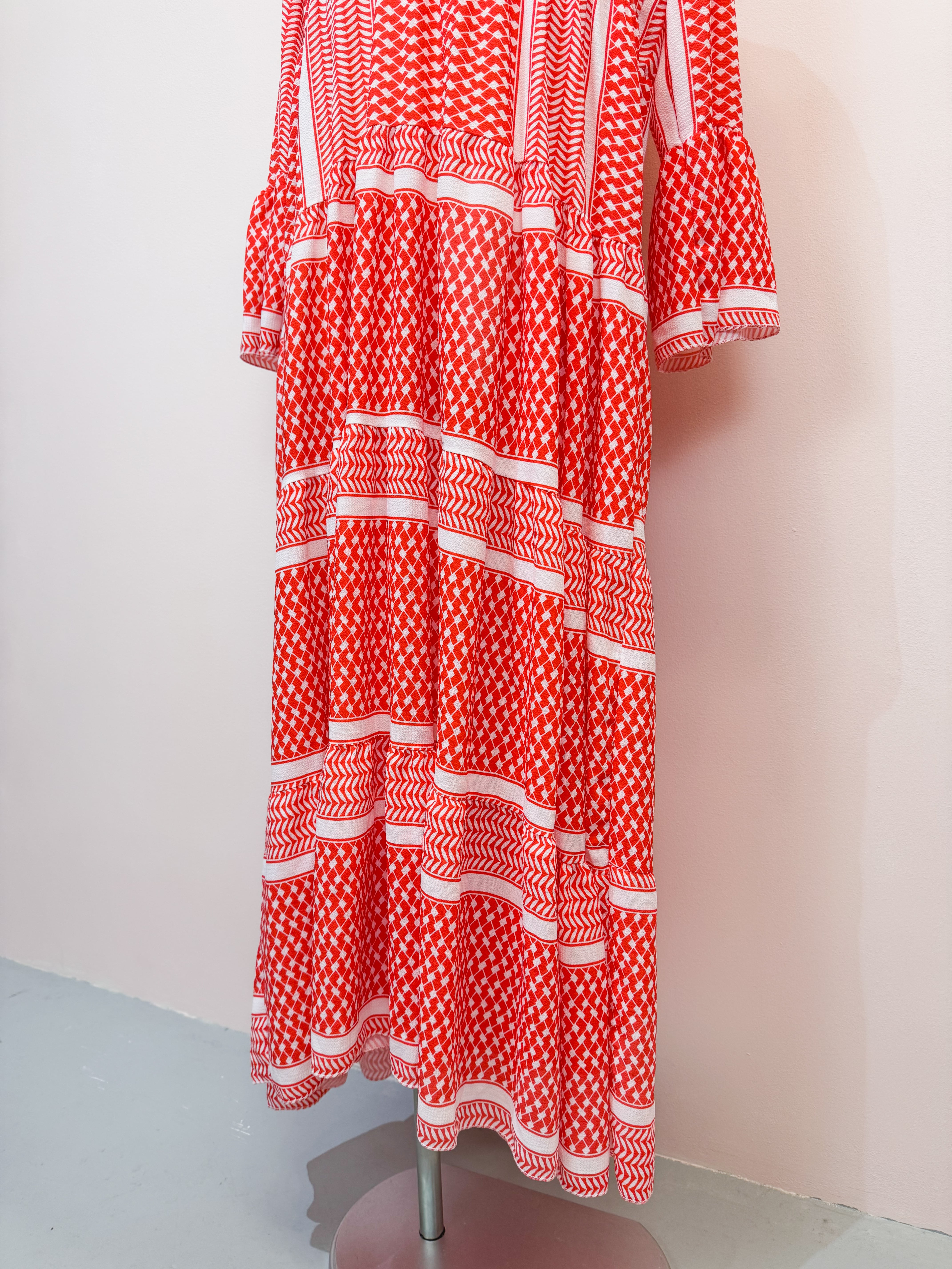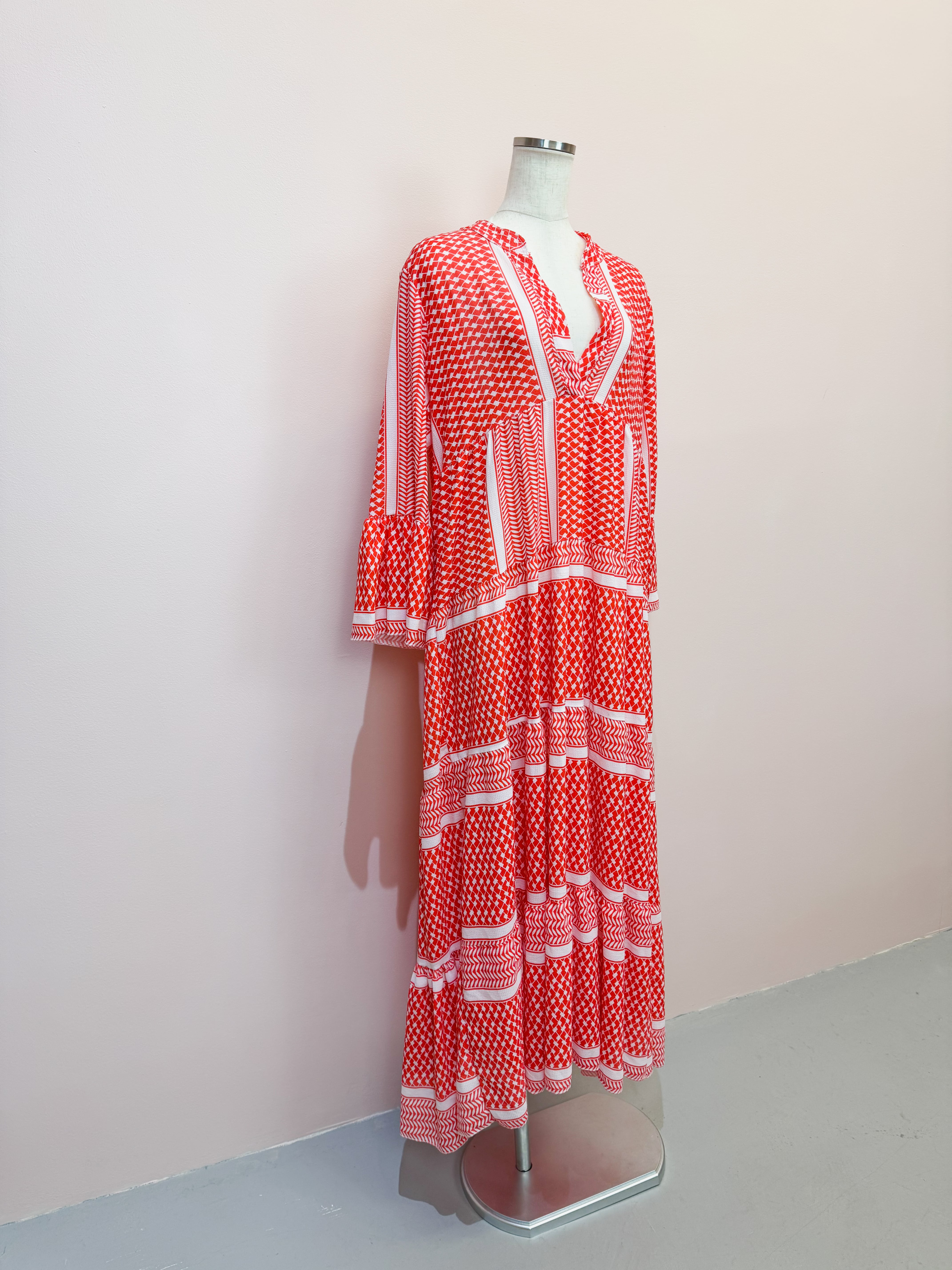 vintage red geometric panel long dress