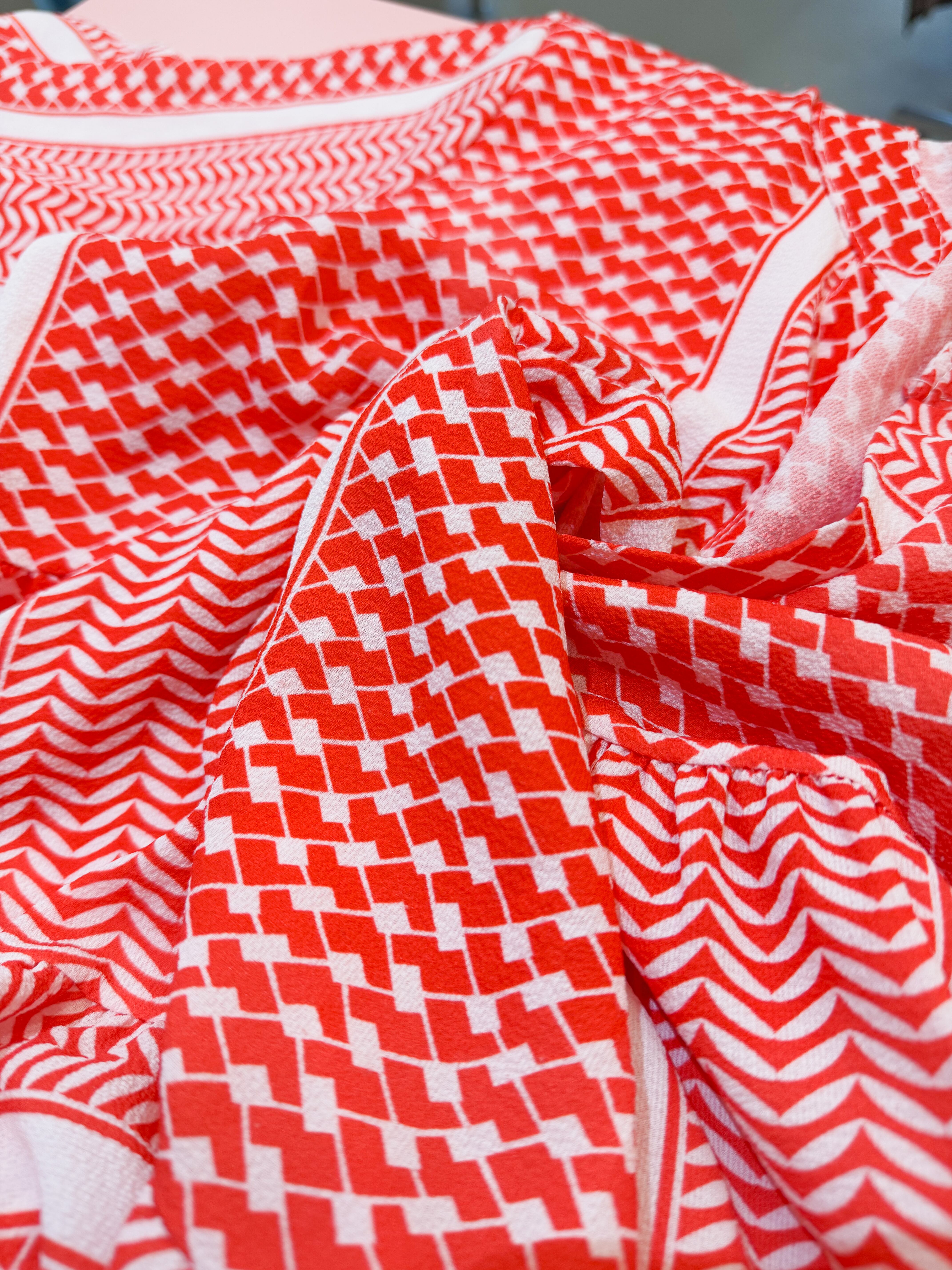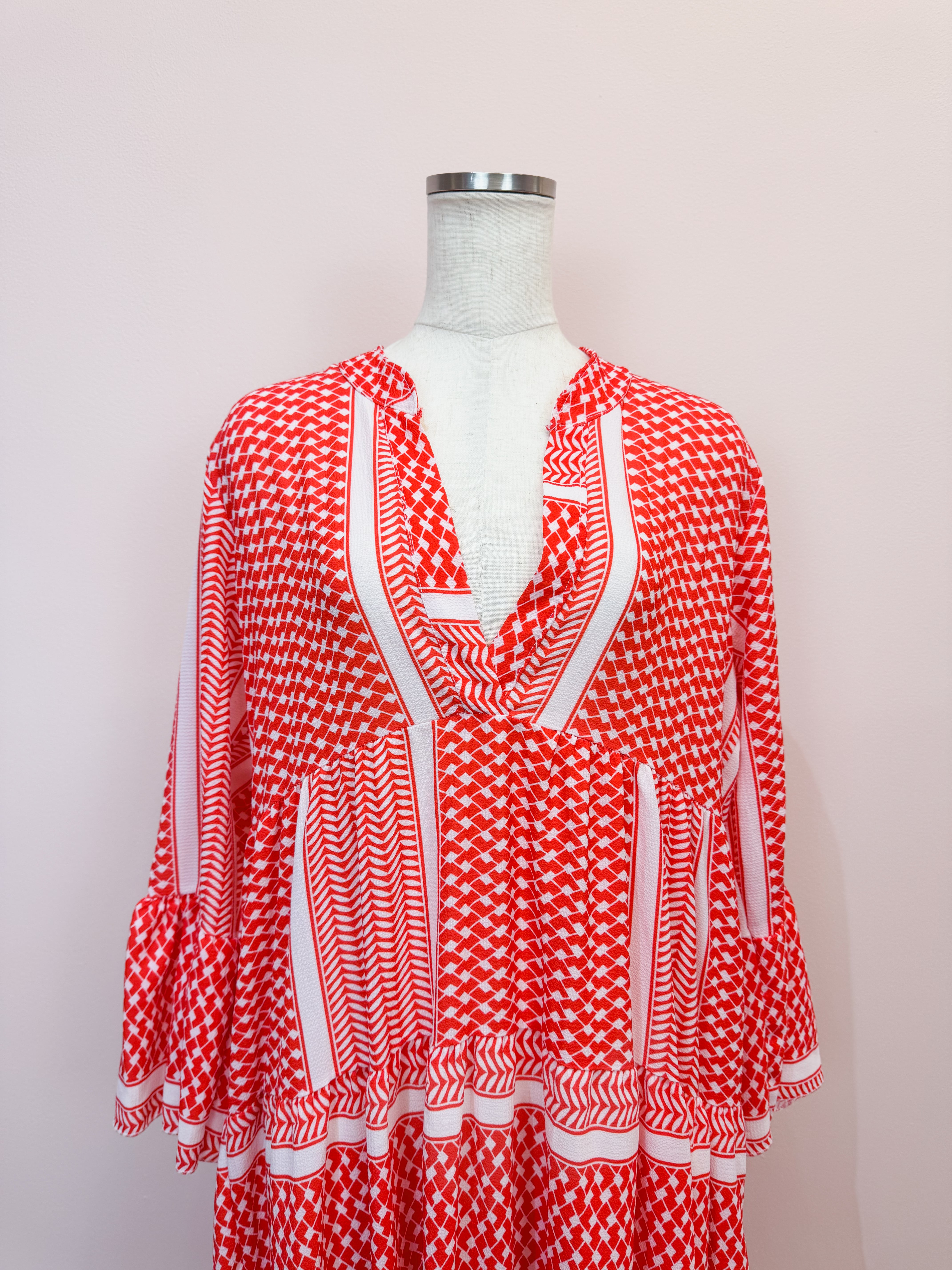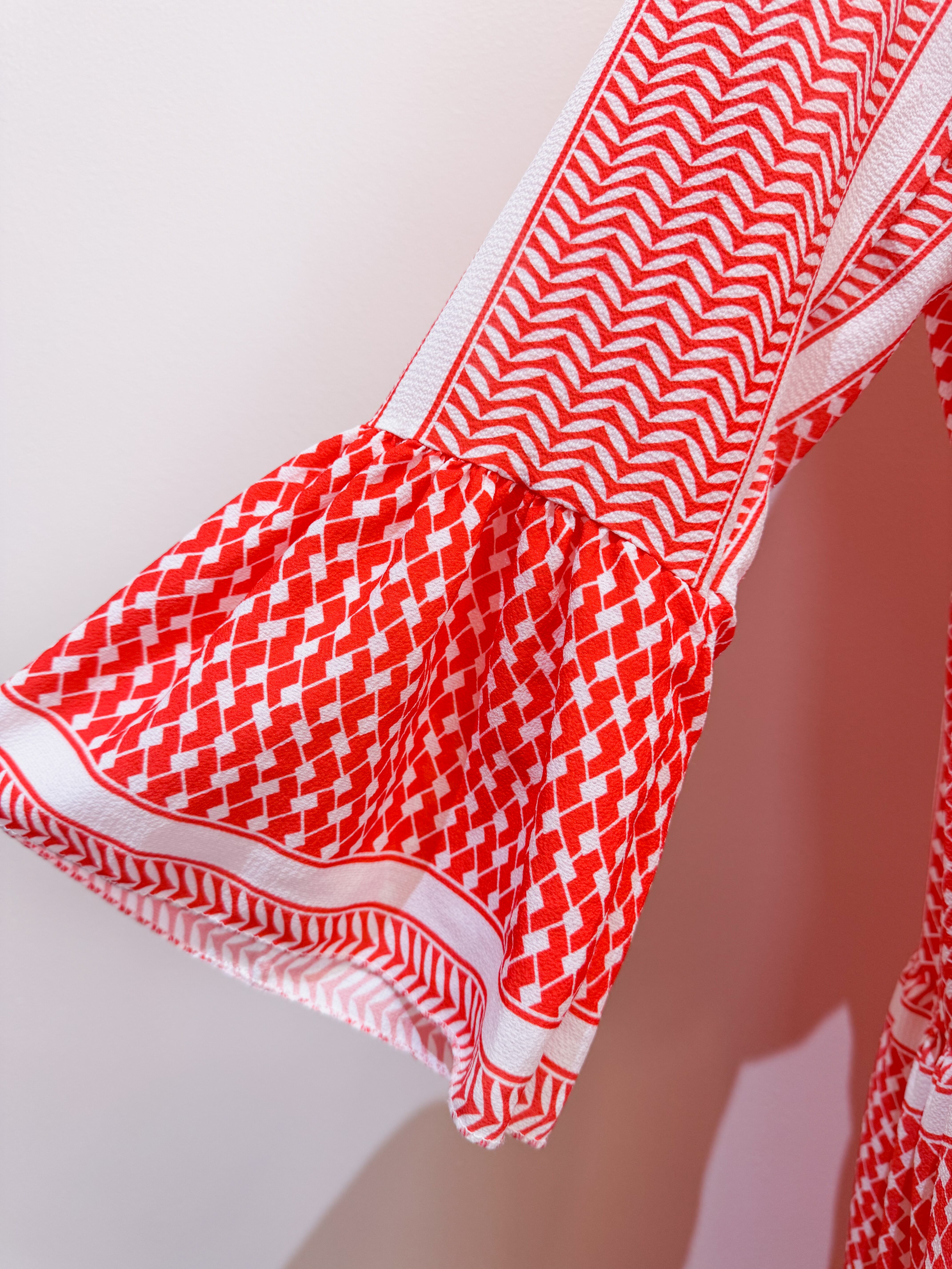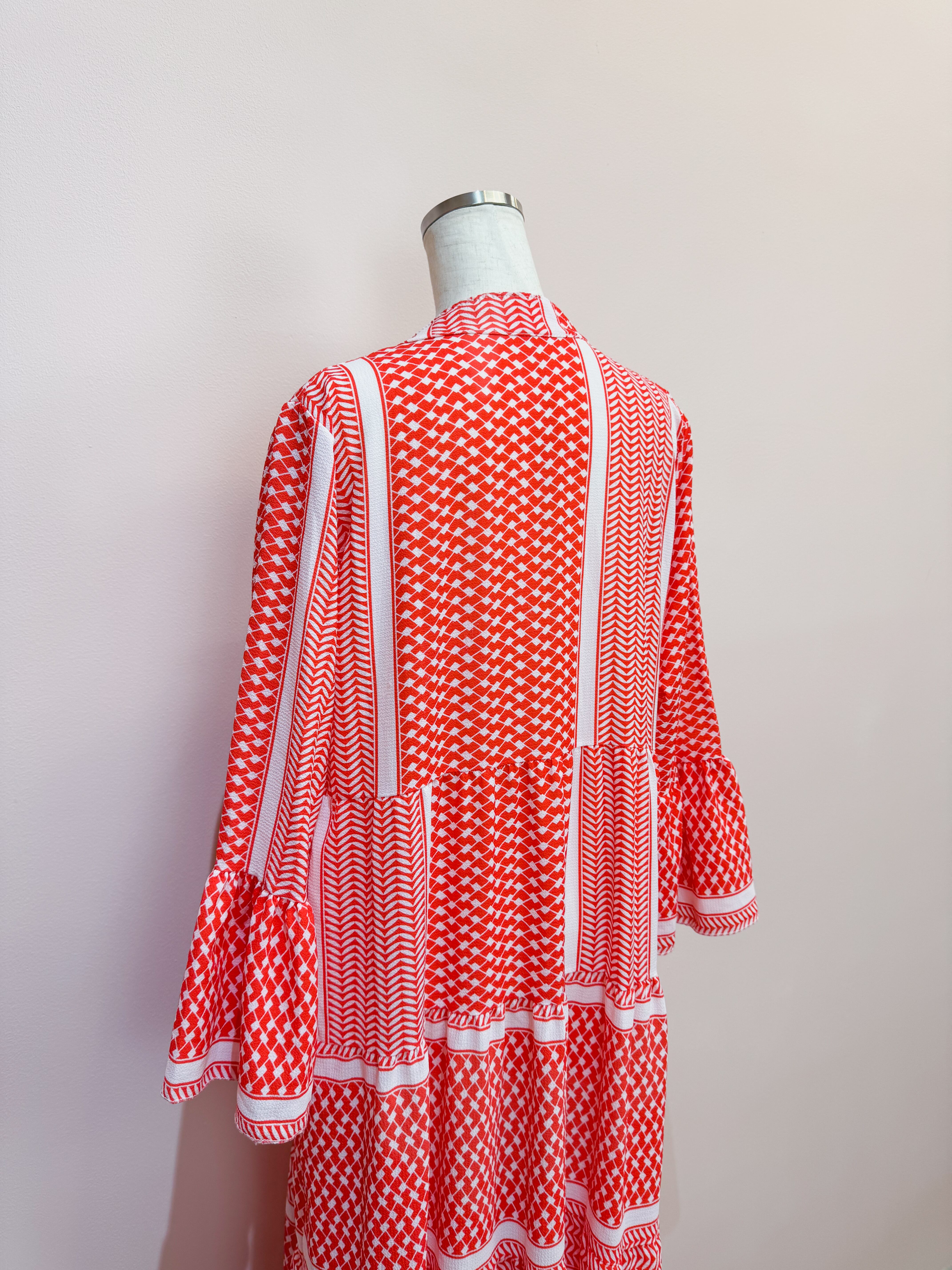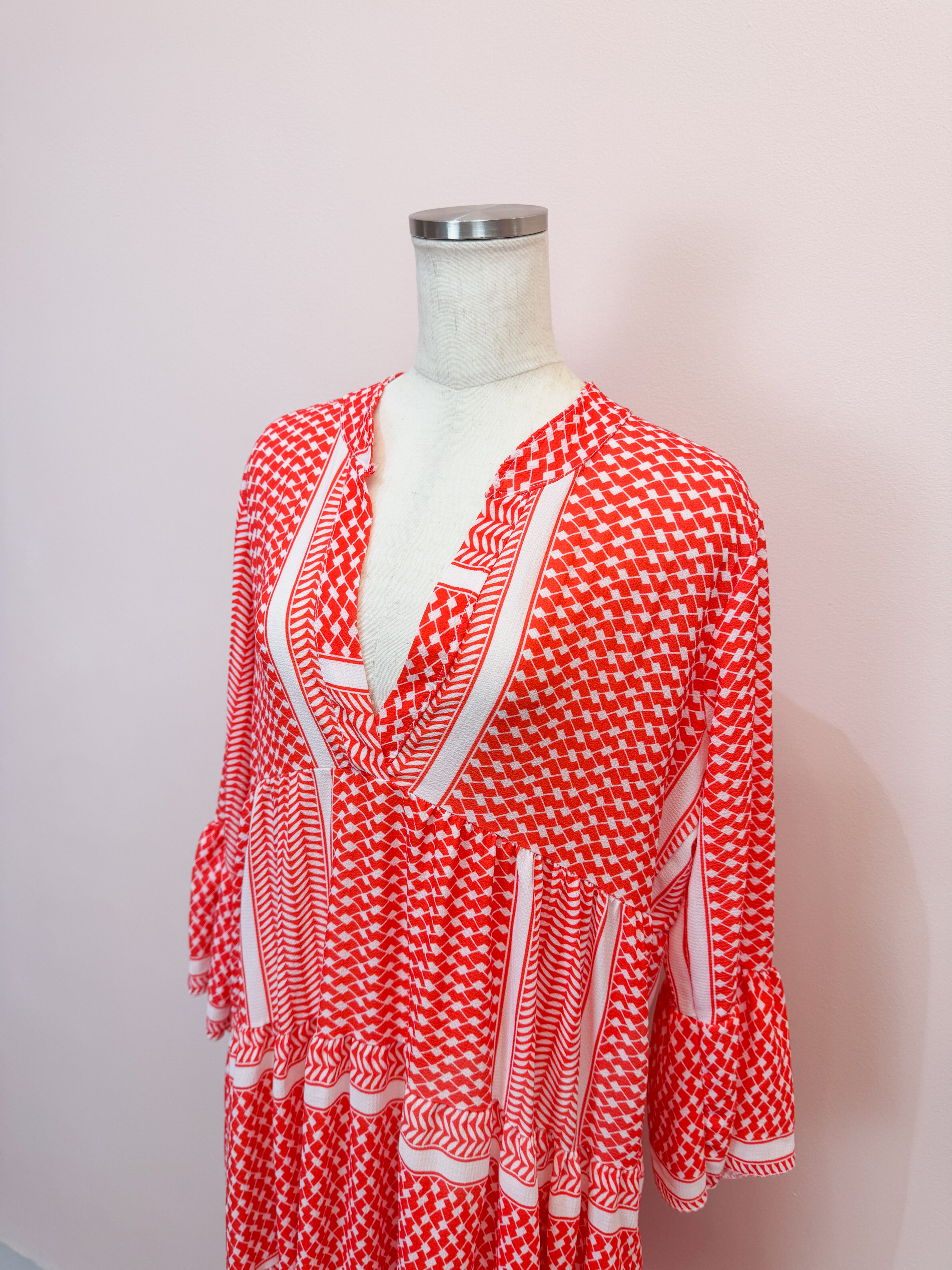 vintage red geometric panel long dress