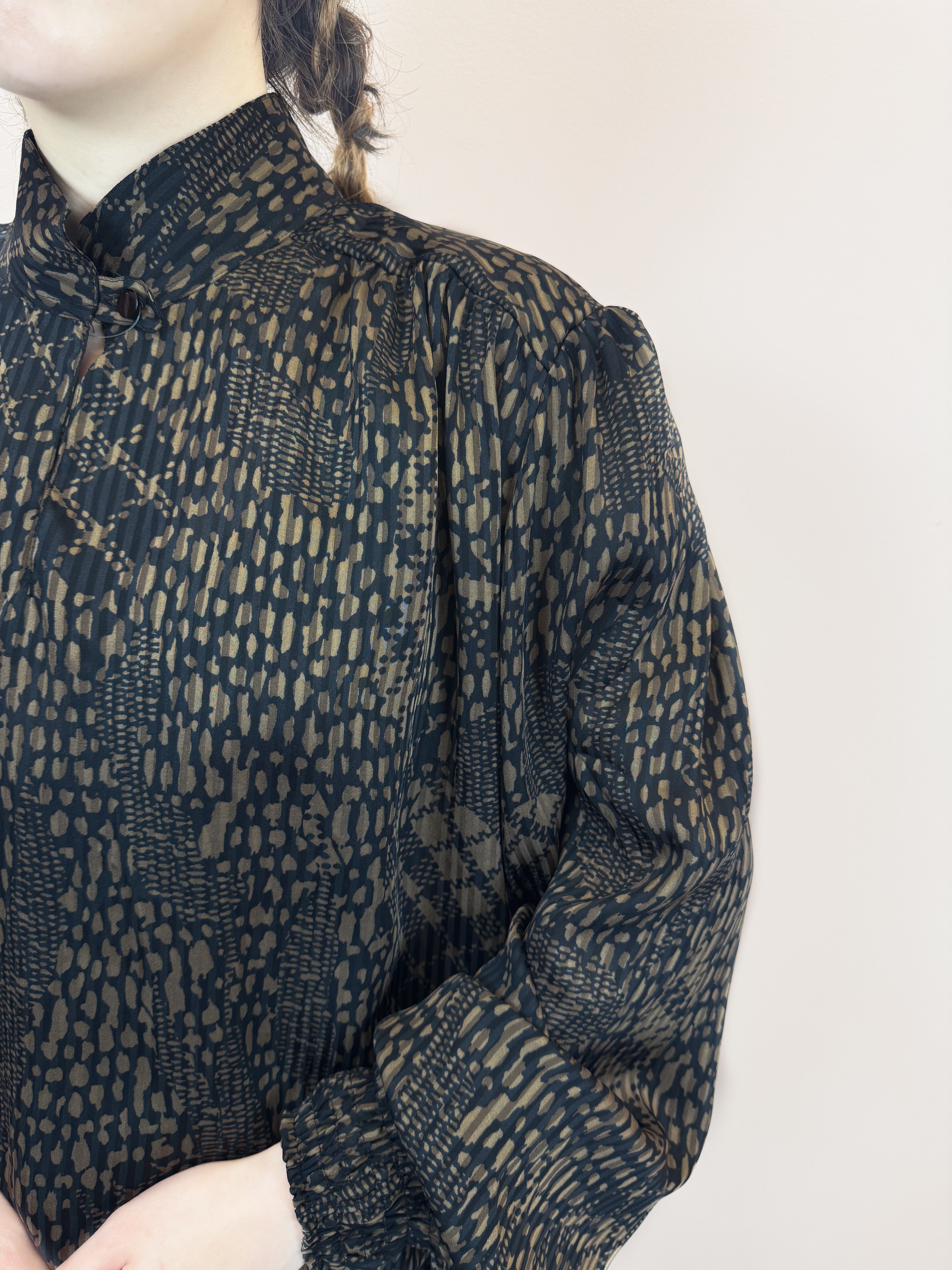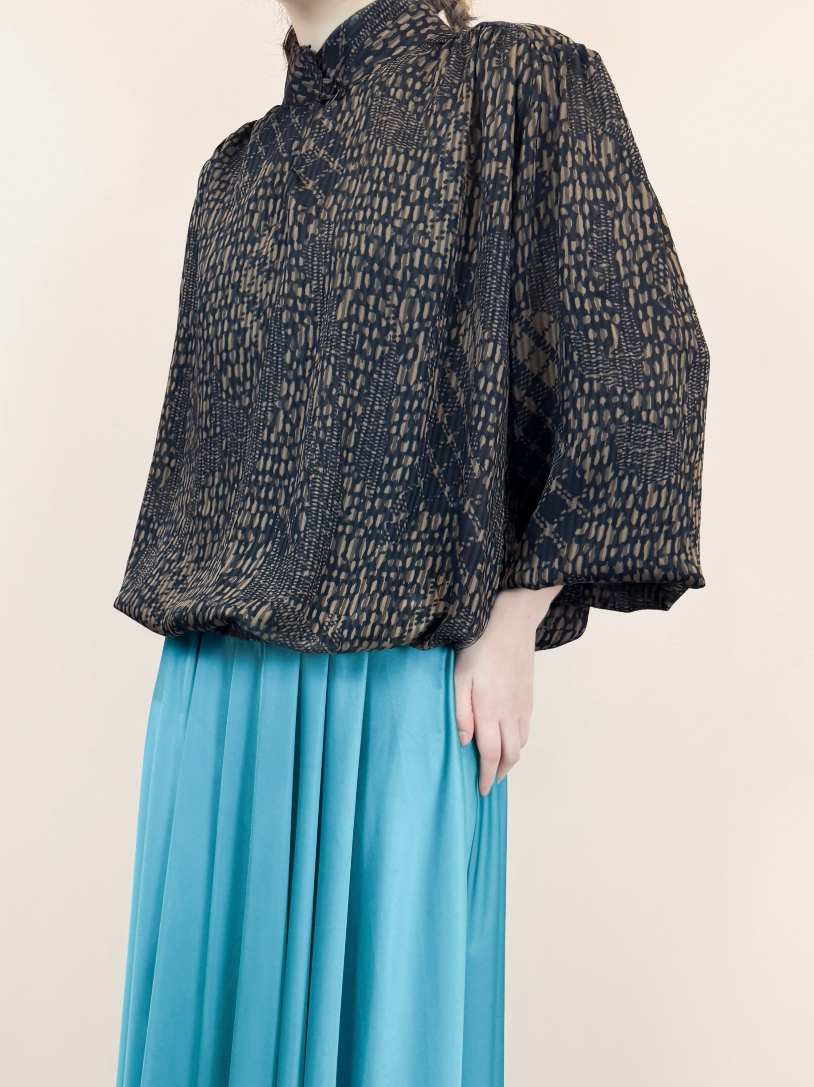 abstract print rib blouse