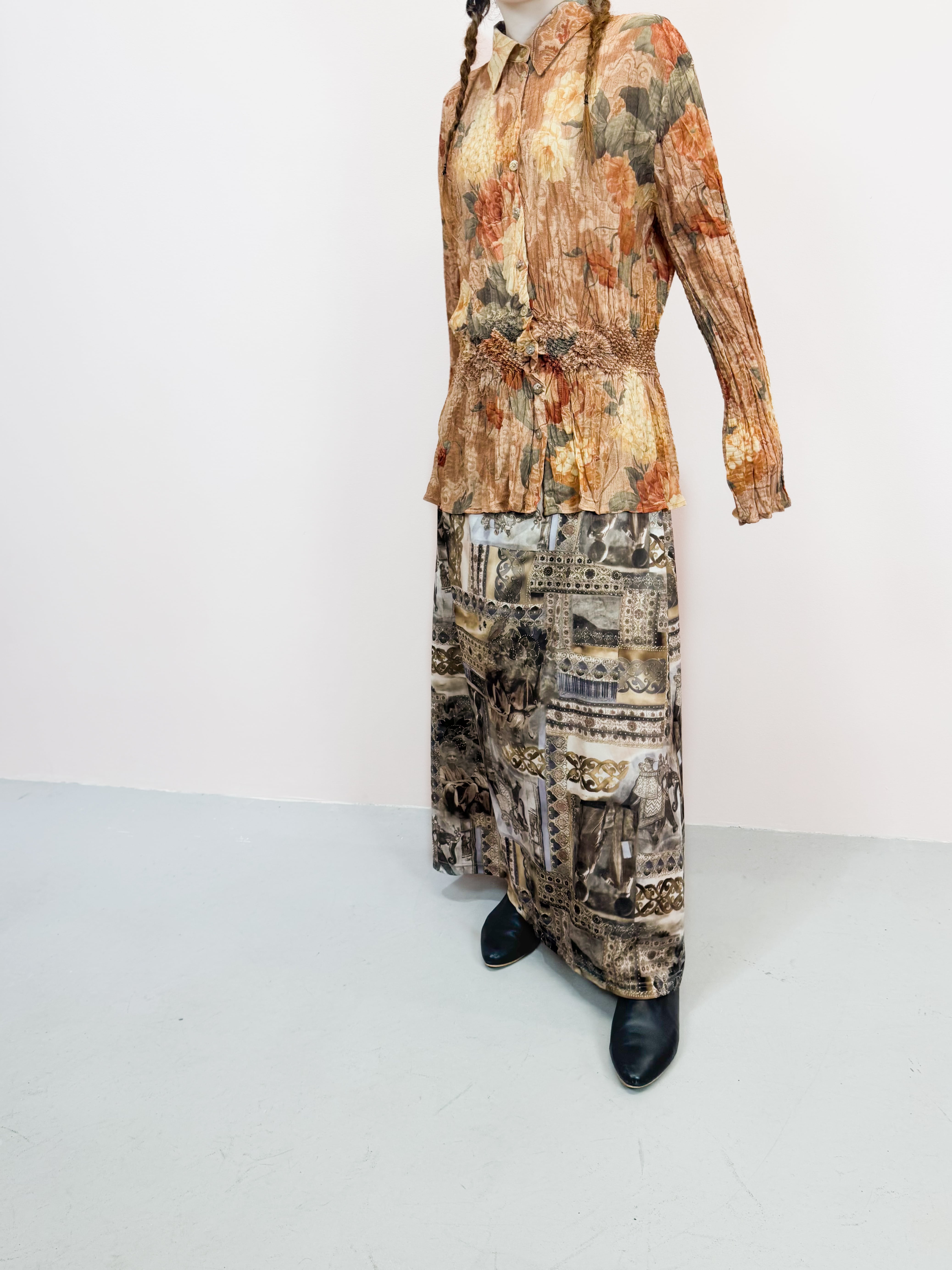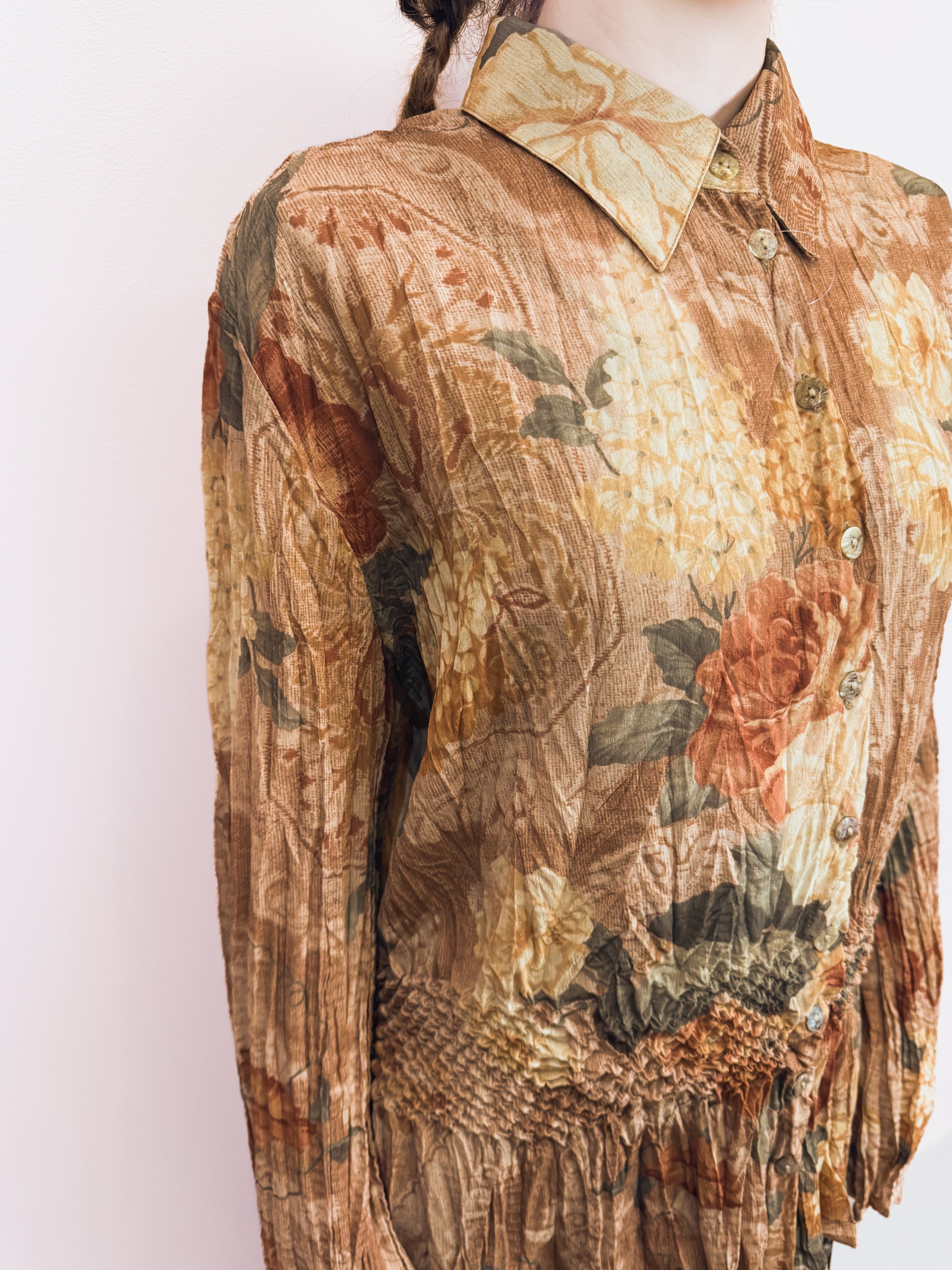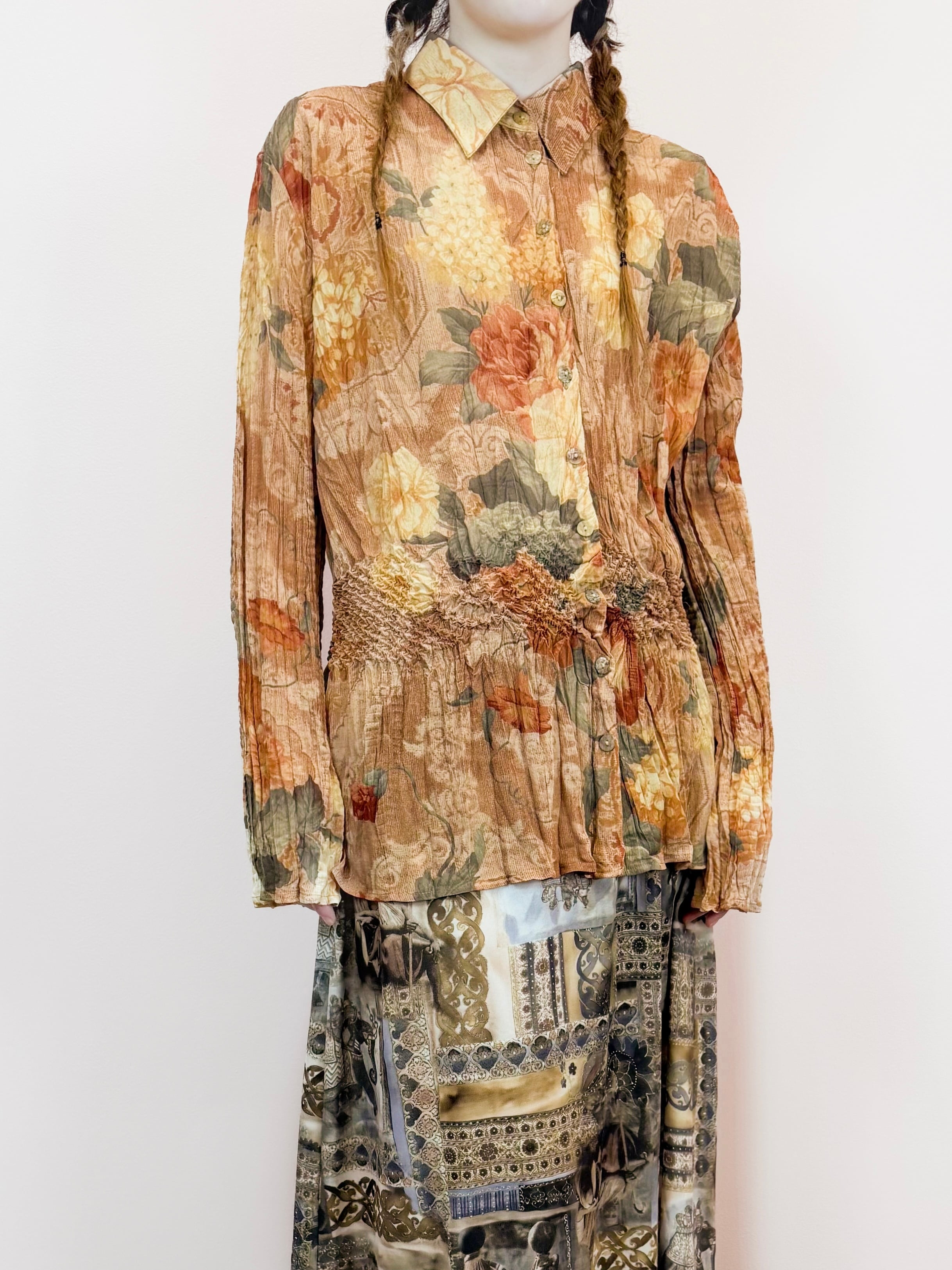 vintage floral pleats blouse