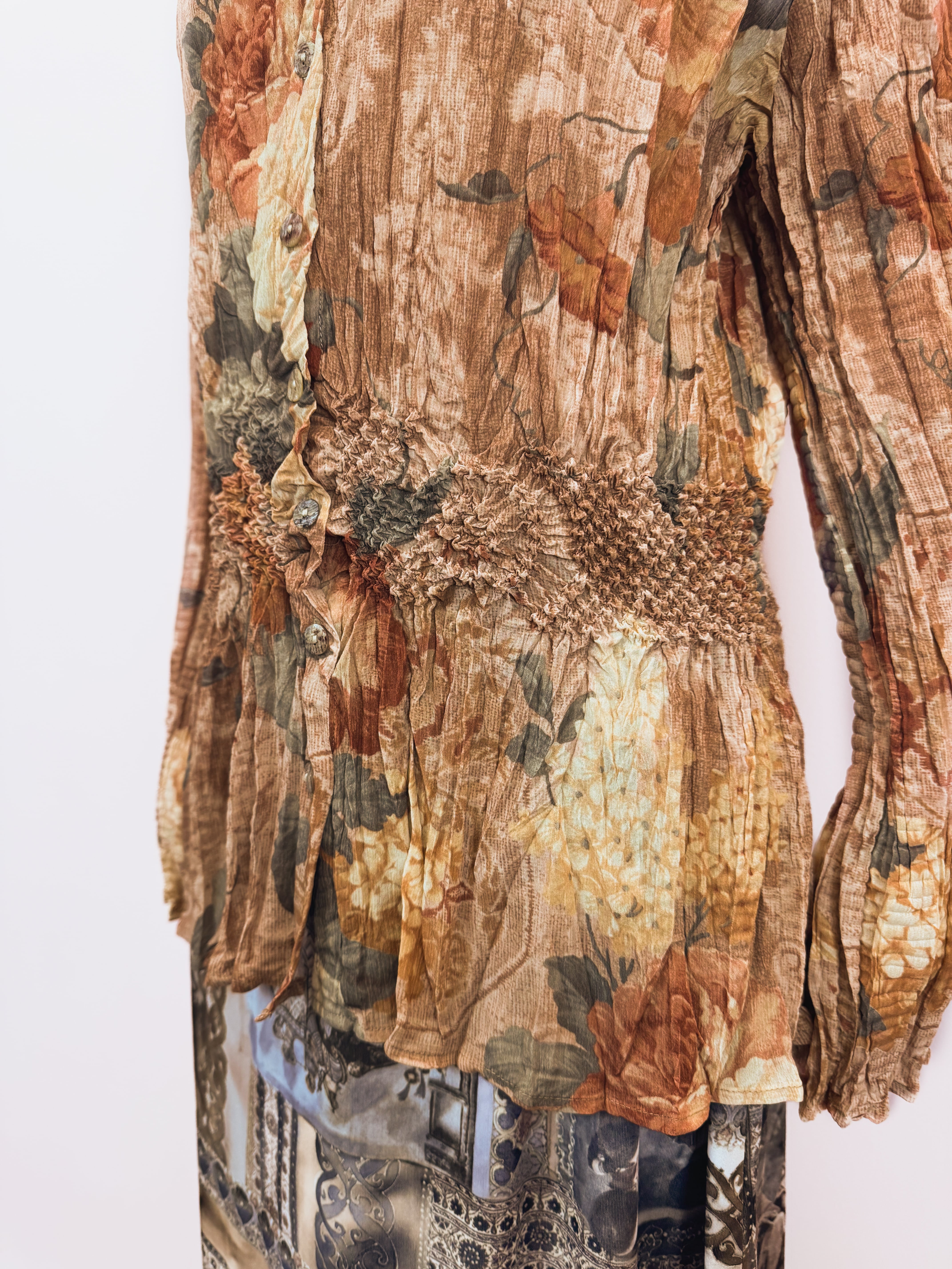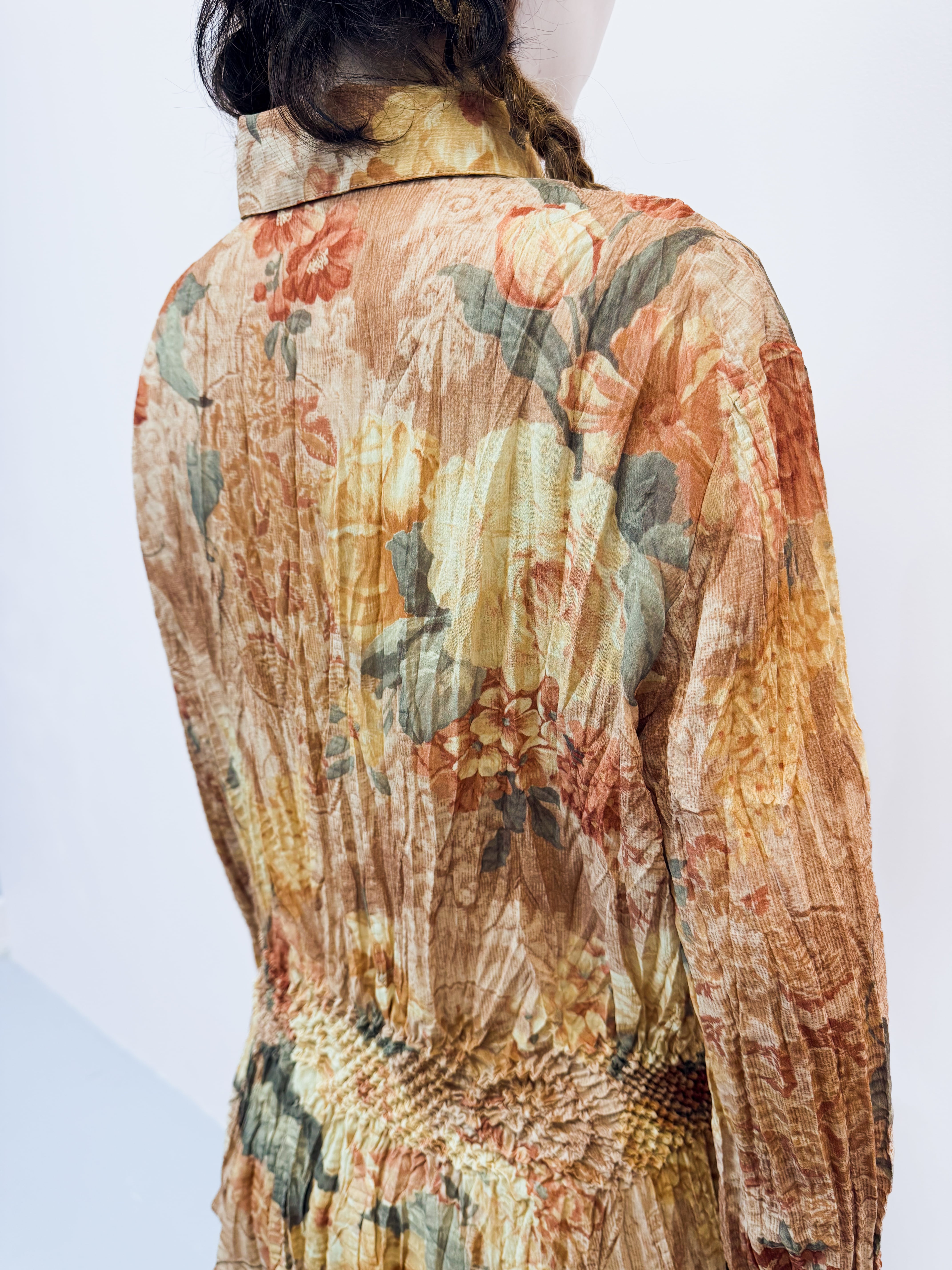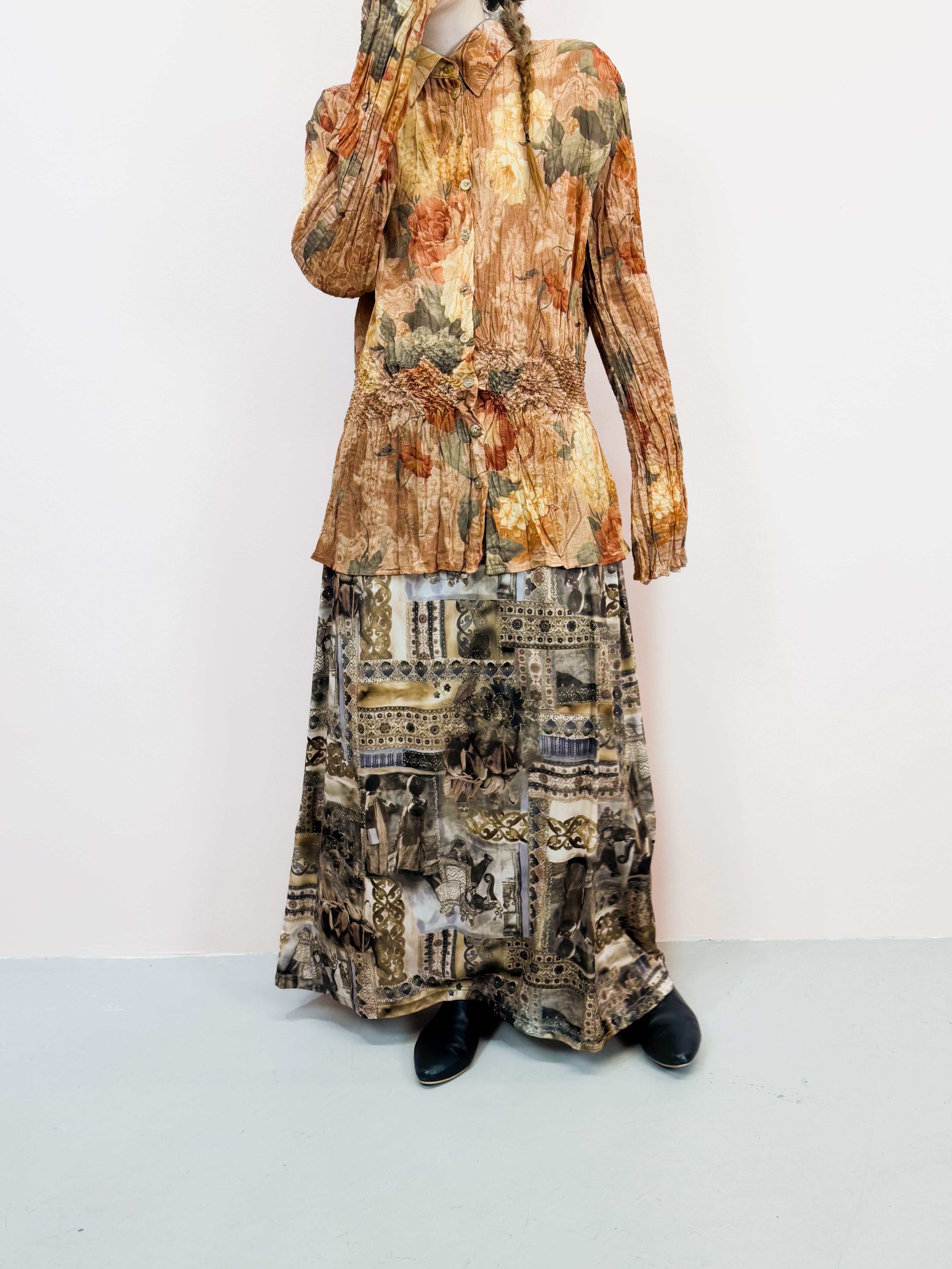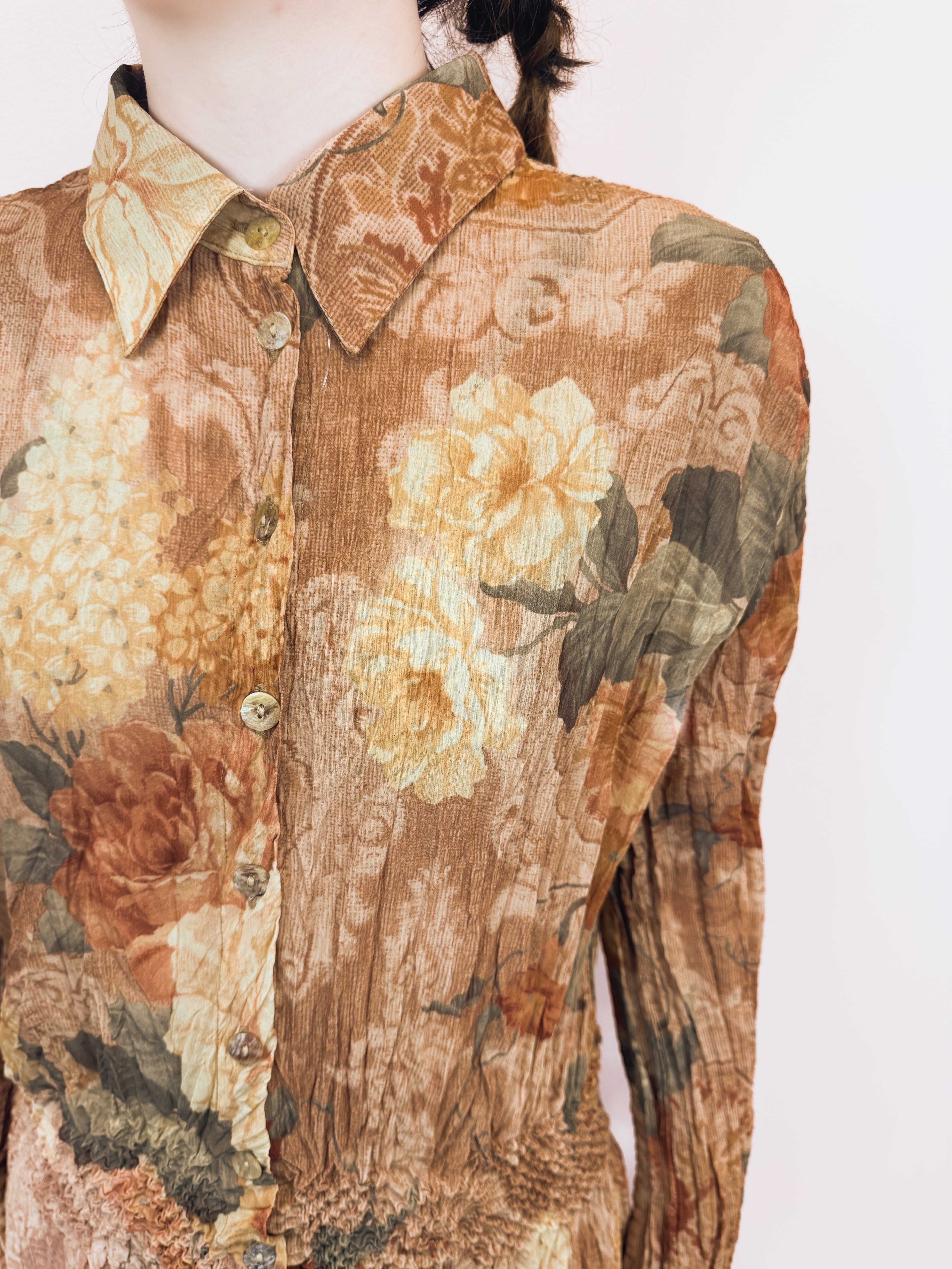 vintage floral pleats blouse