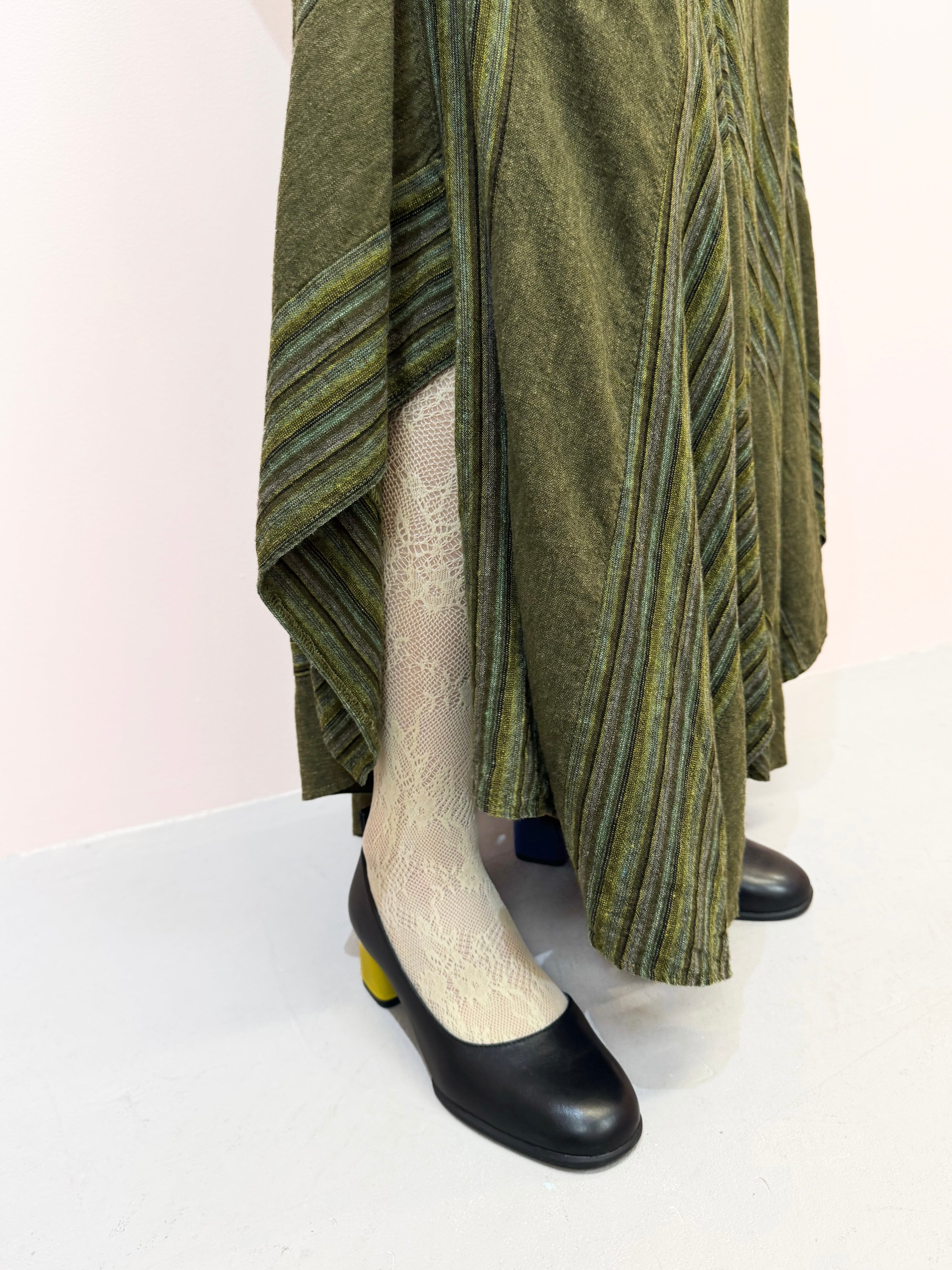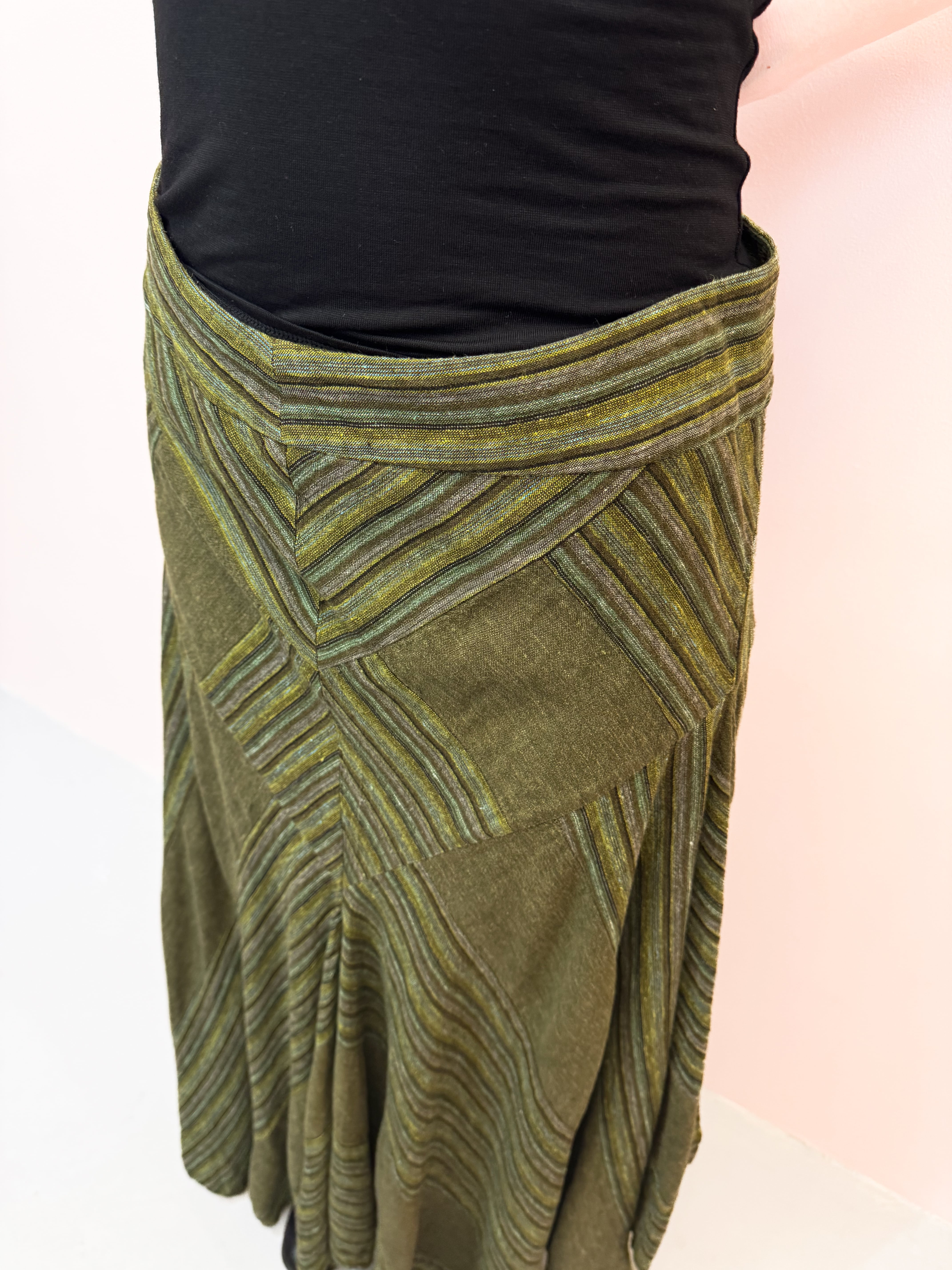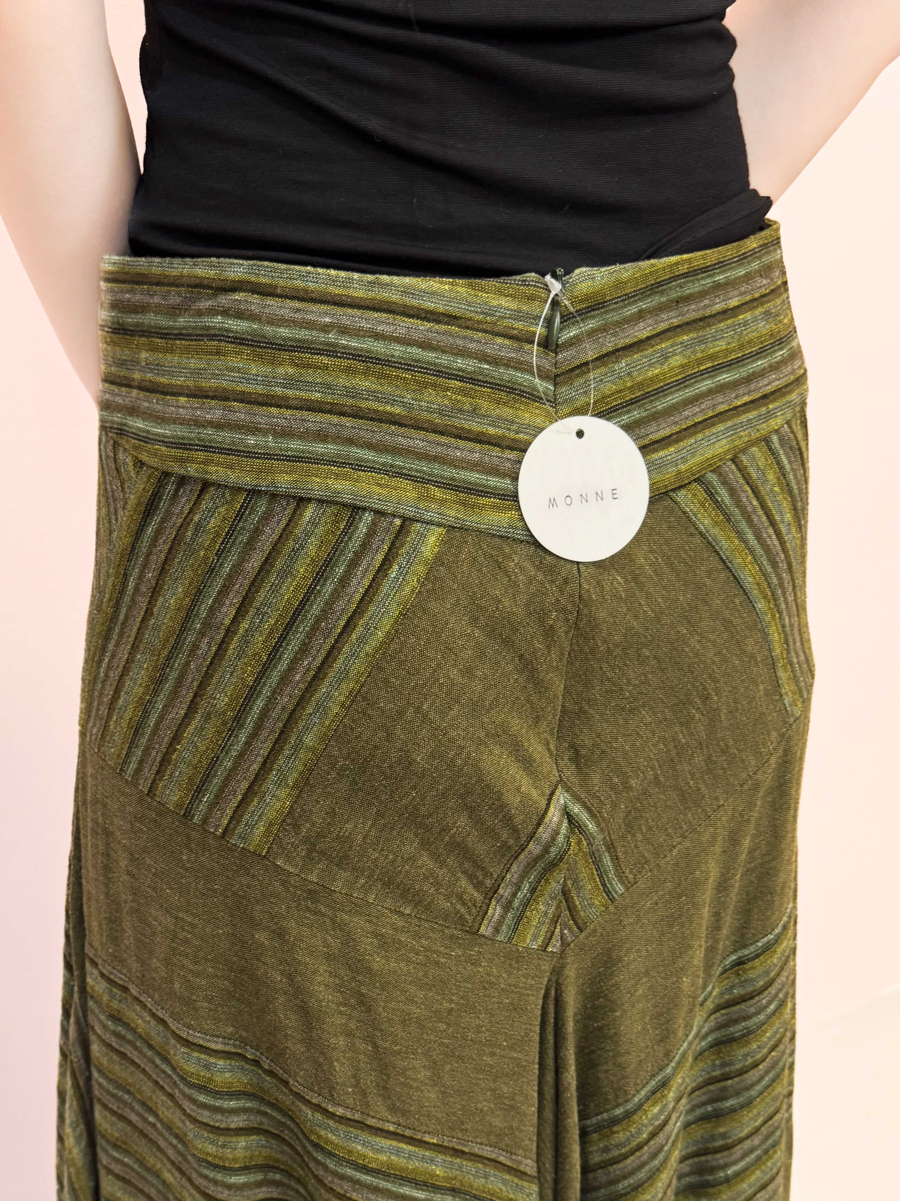vintage olive panel linen skirt