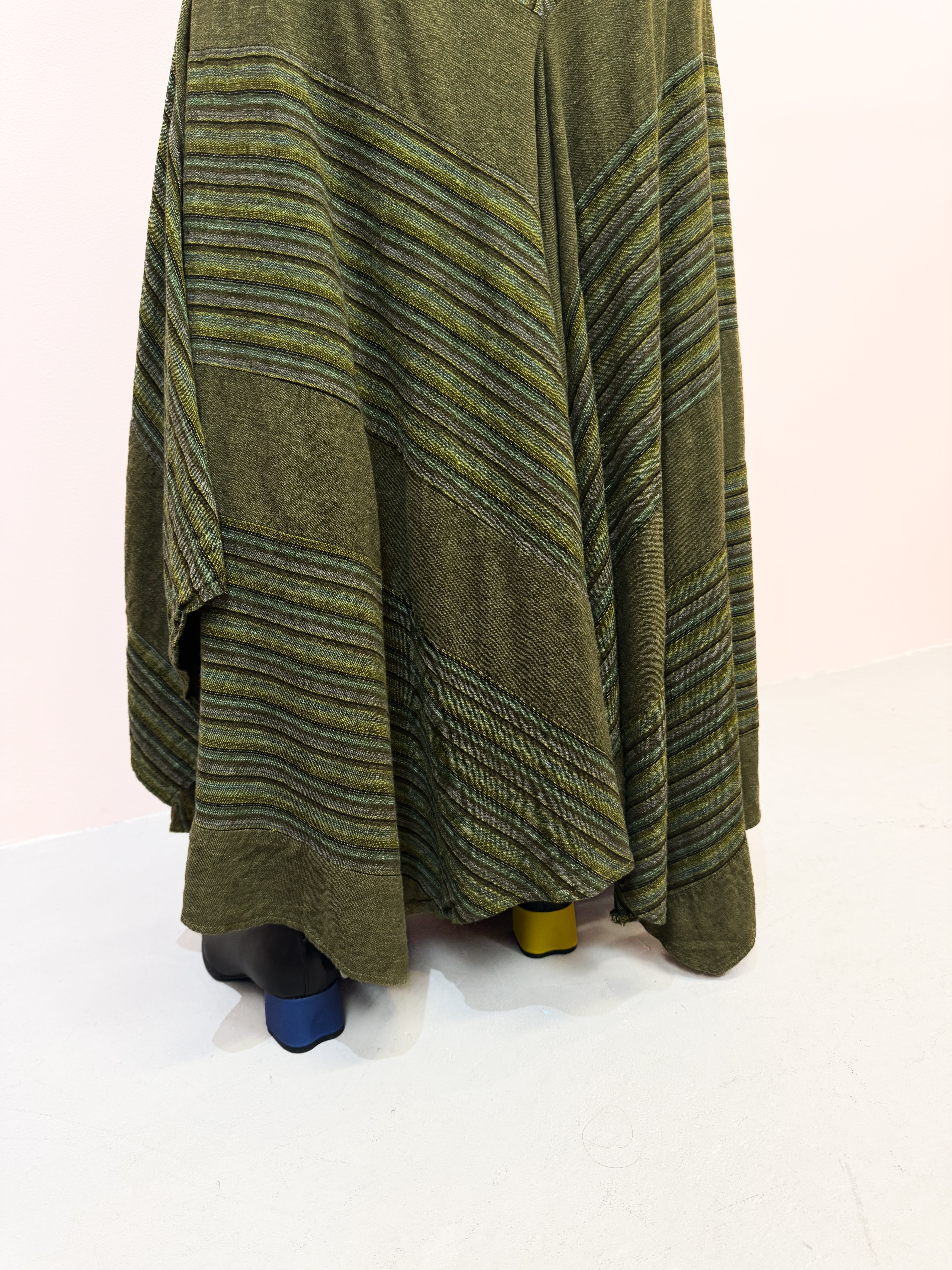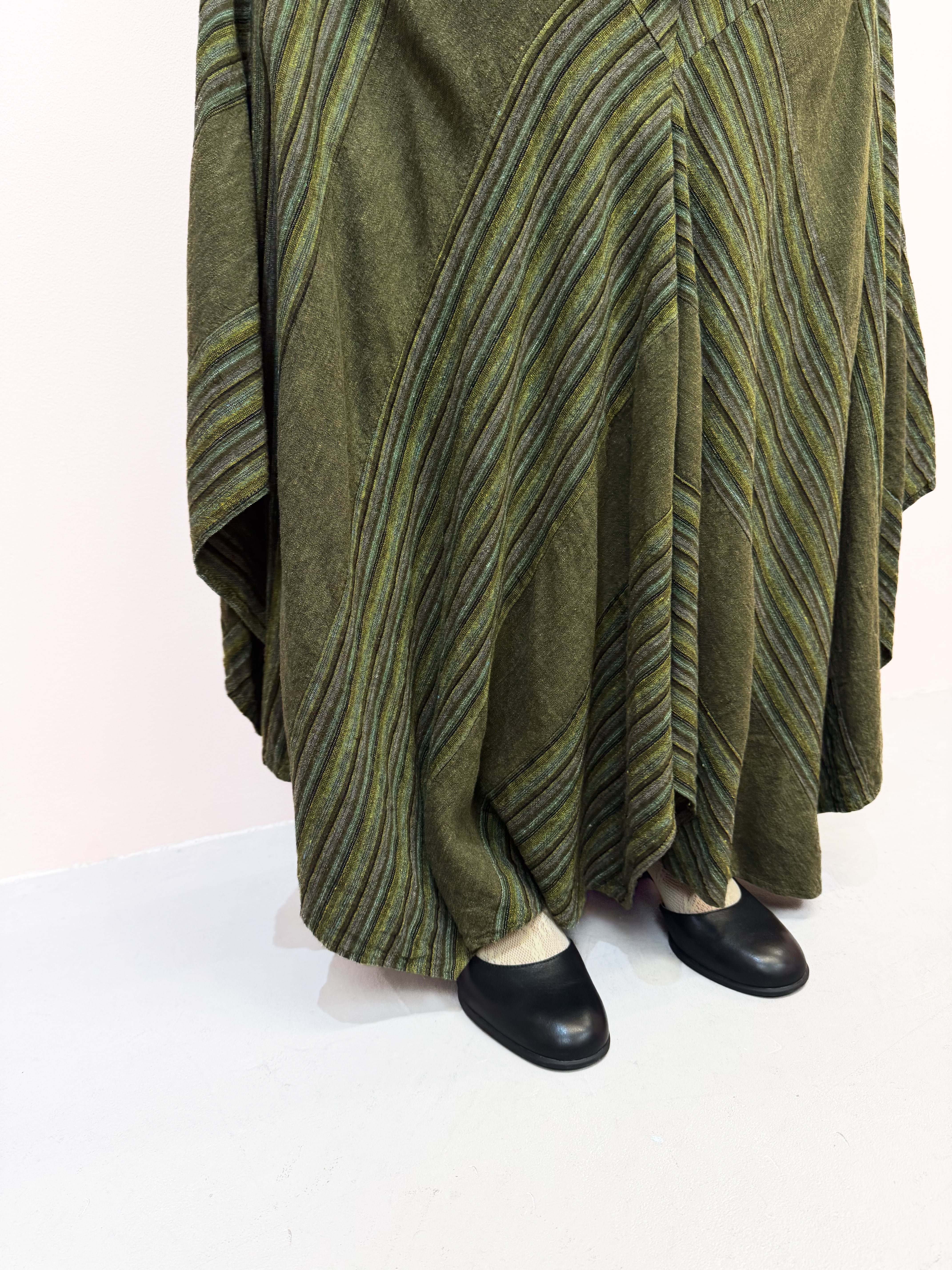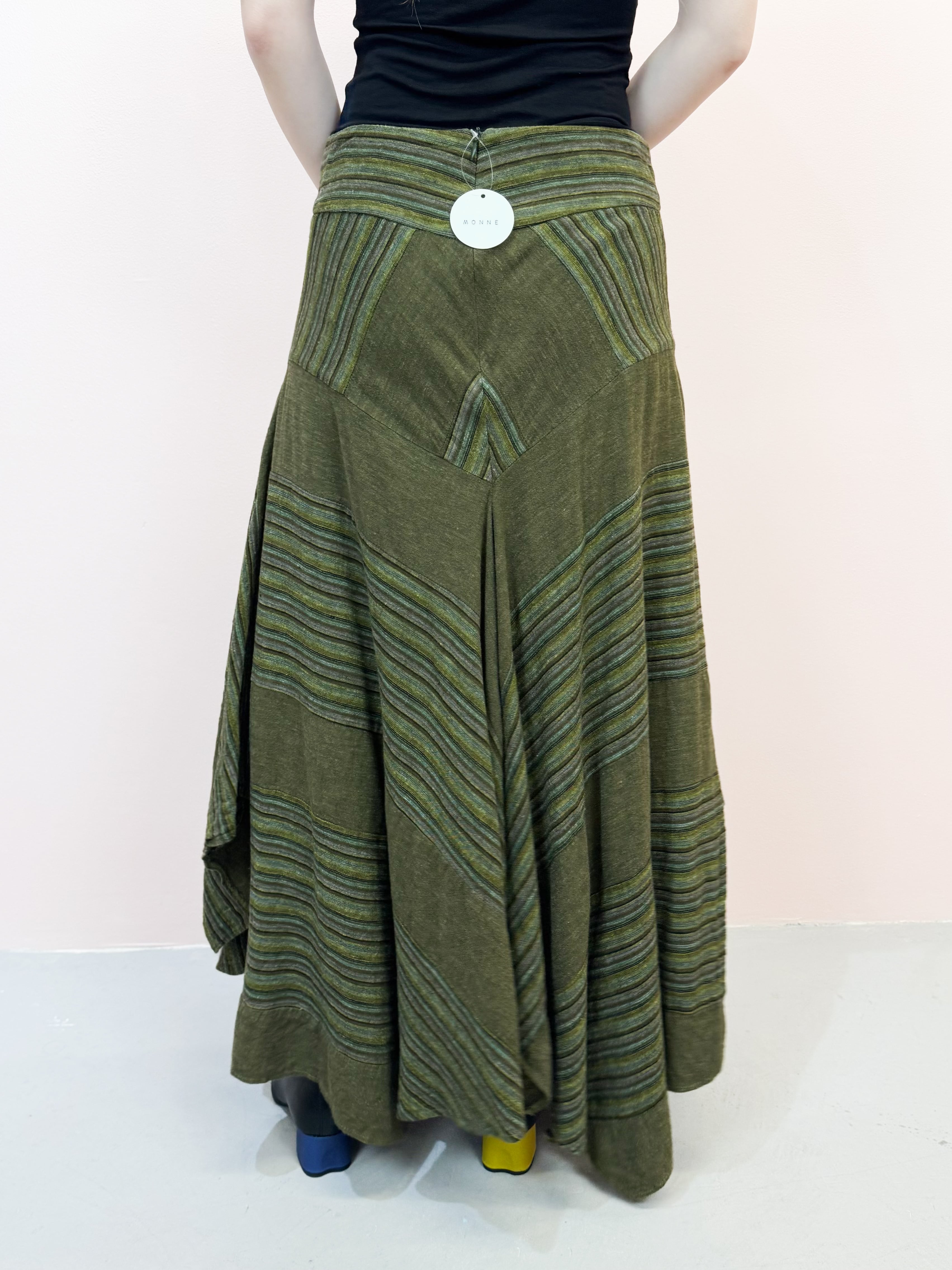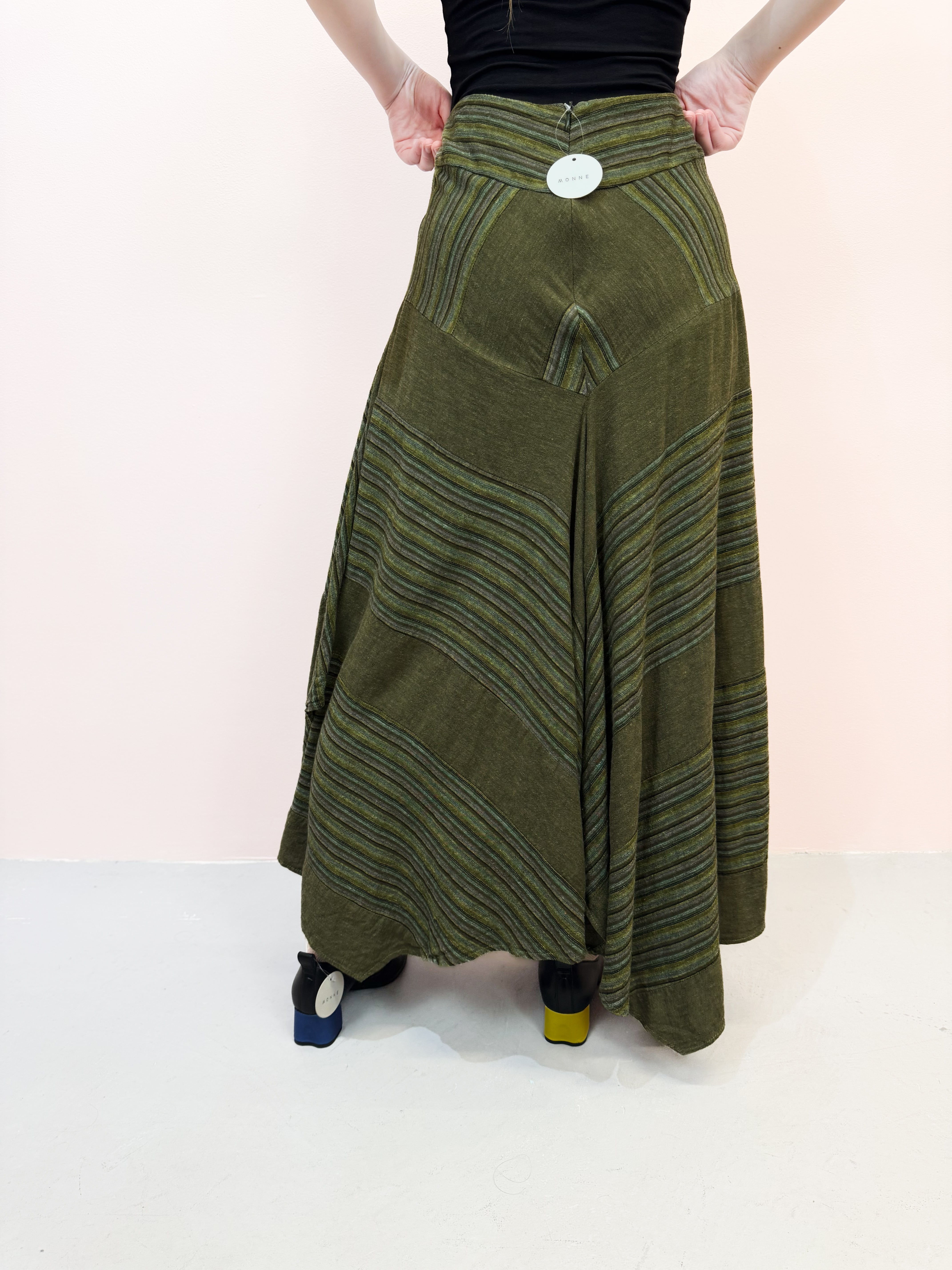 vintage olive panel linen skirt